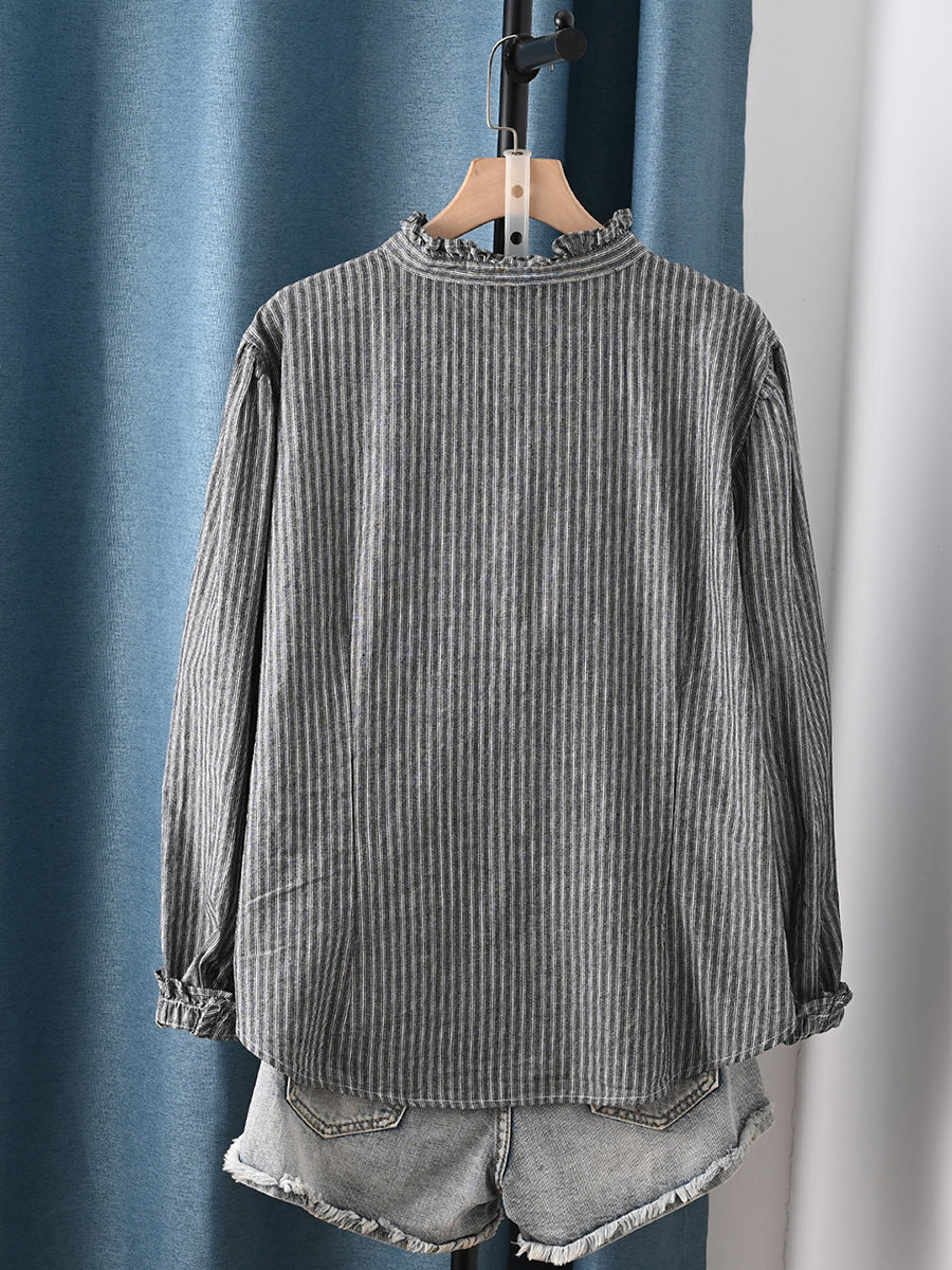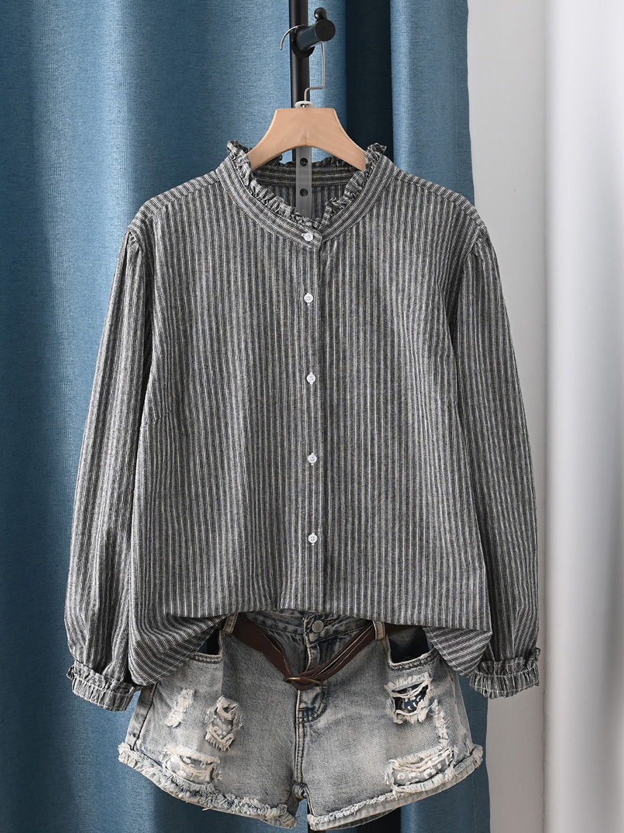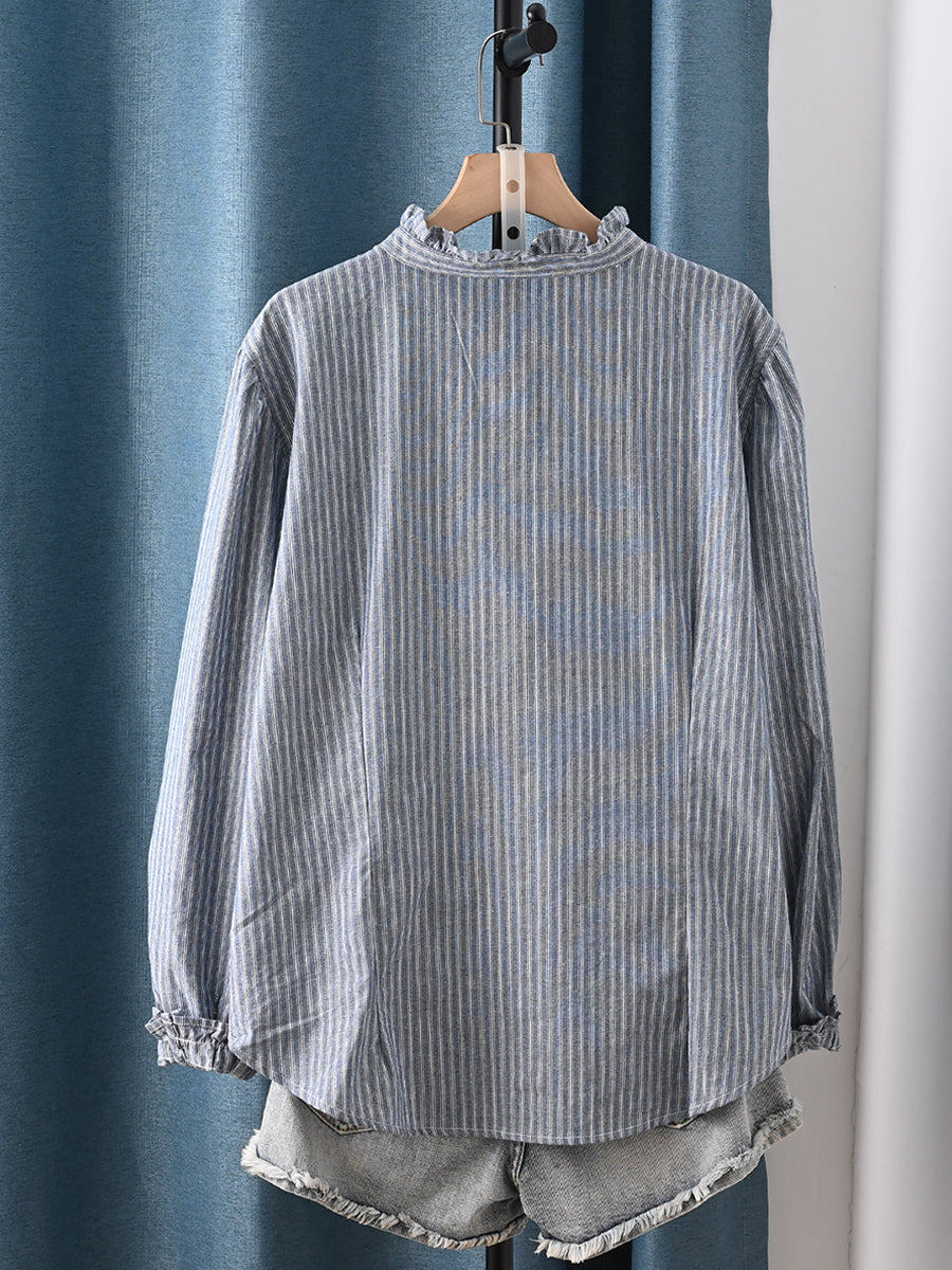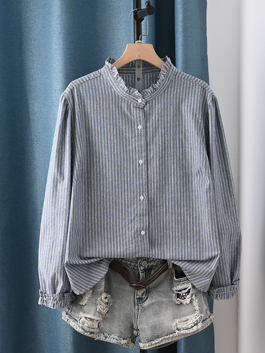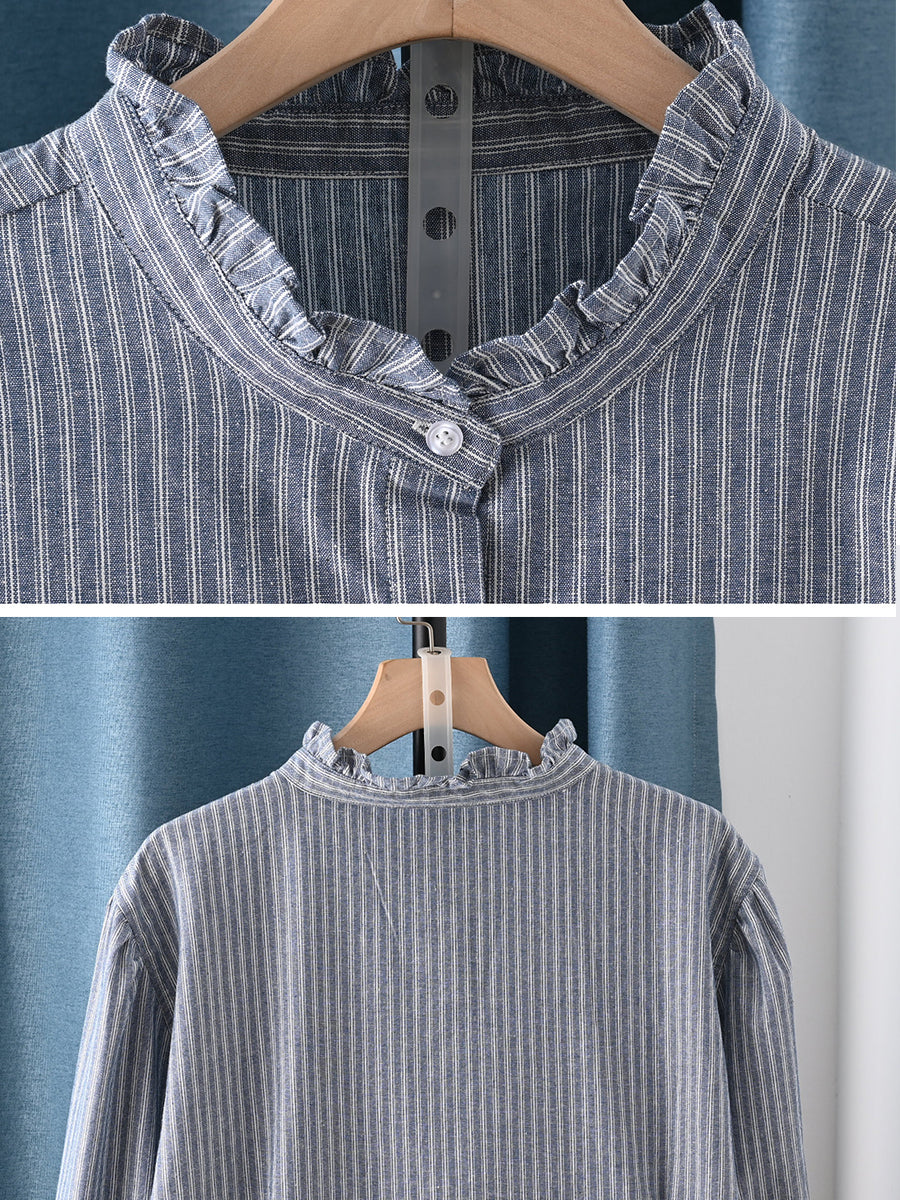 Women Spring Artsy Stripe 100%Cotton Shirt