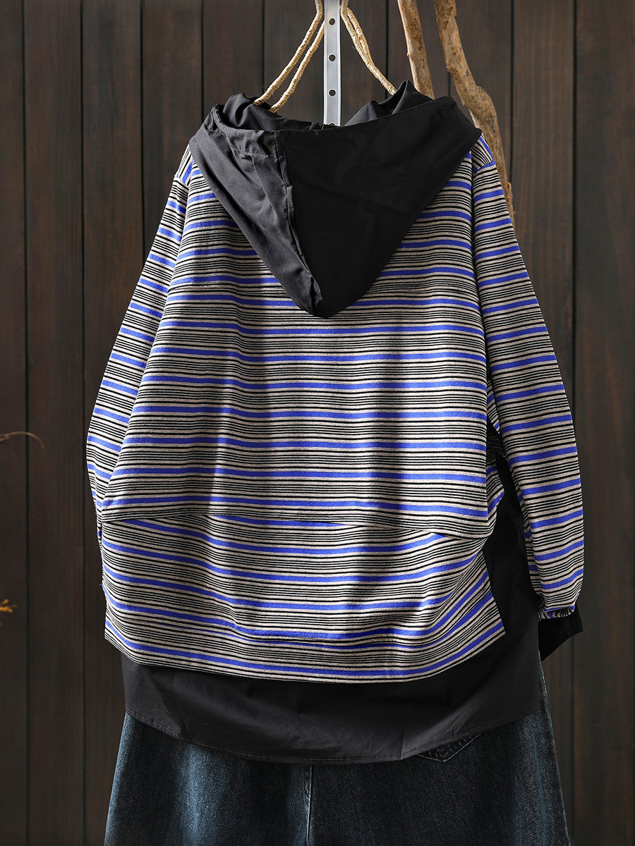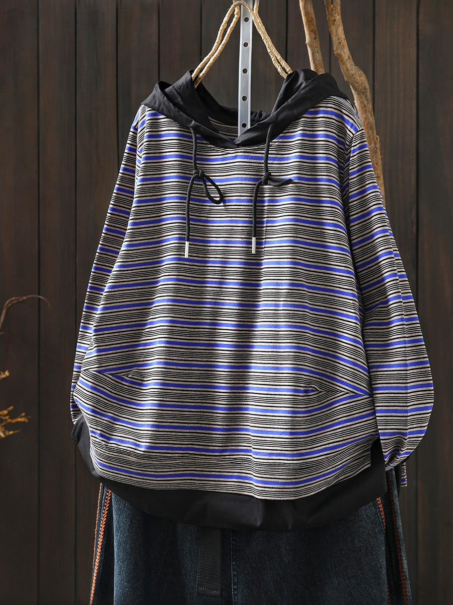 Women Spring Artsy Stripe Spliced Cotton Hoodie
