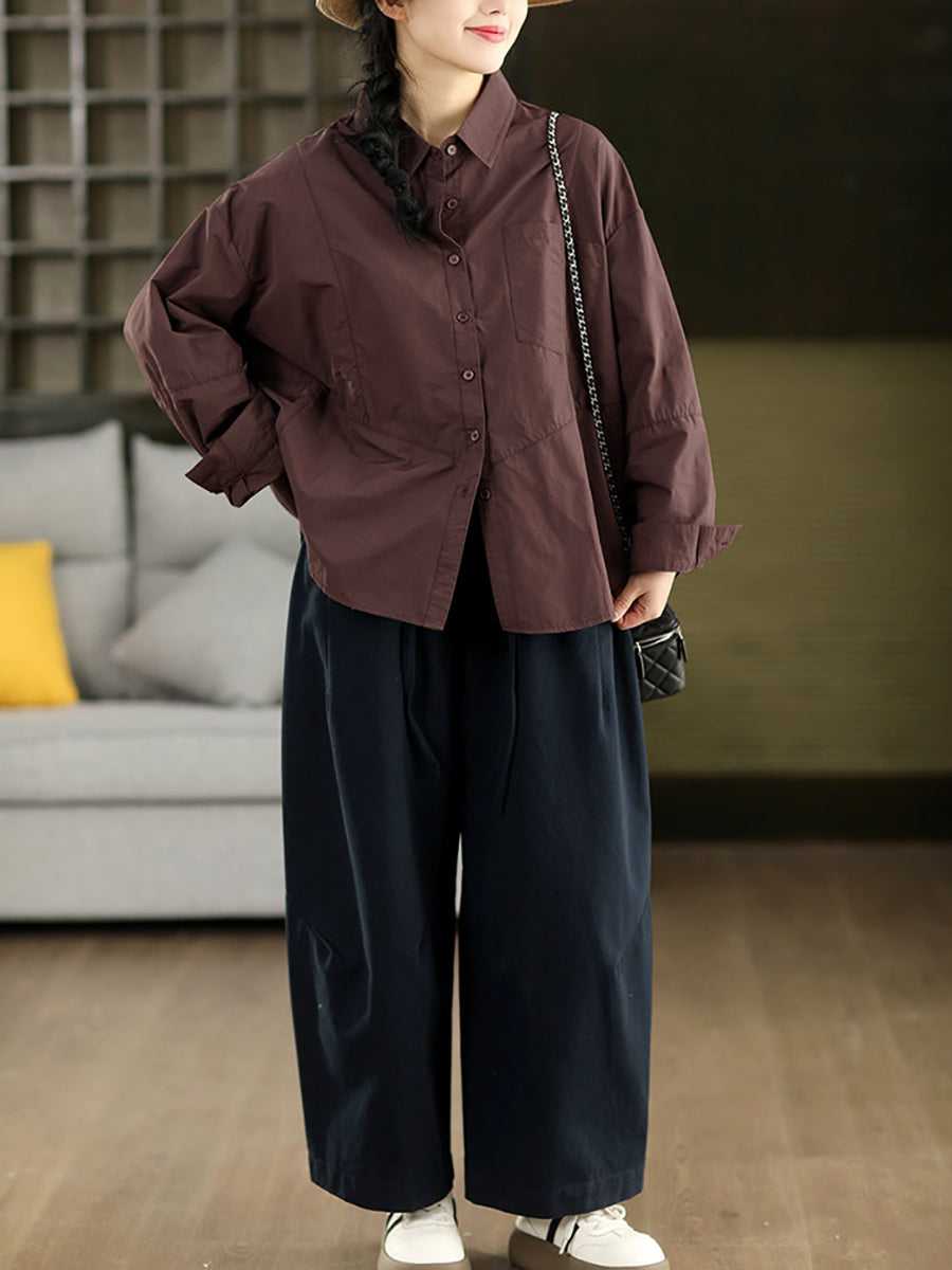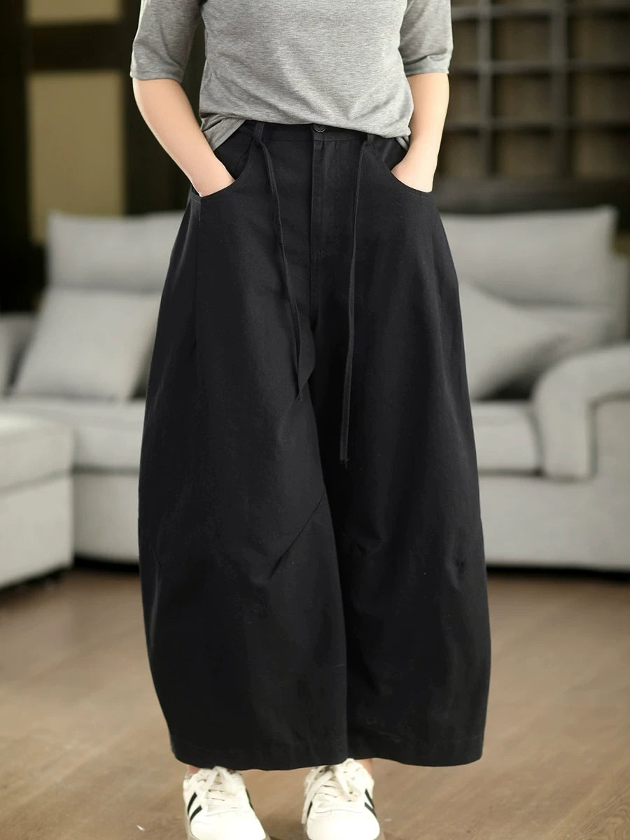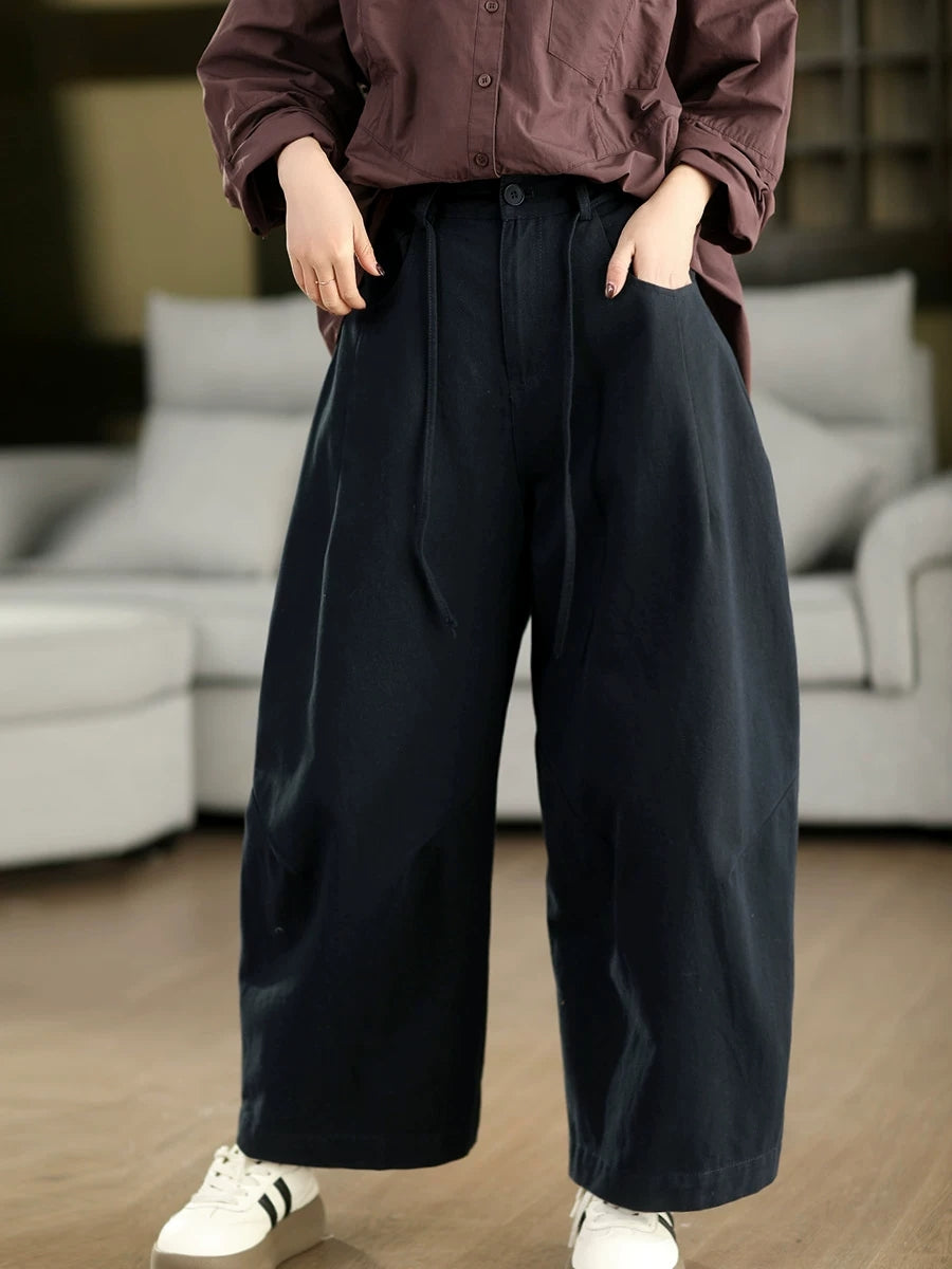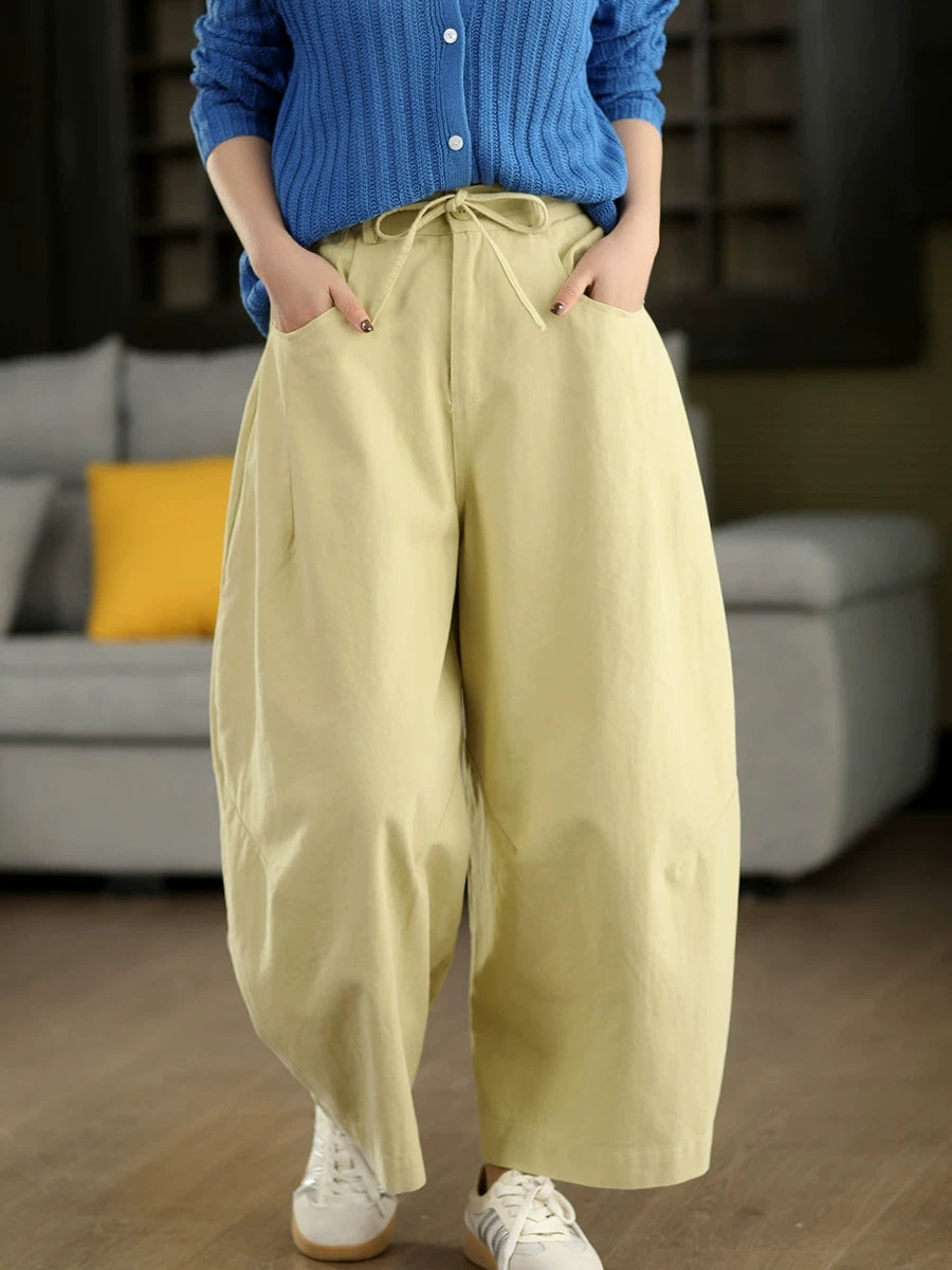 Women Spring Casual Pure Color 100%Cotton Wide-leg Pants