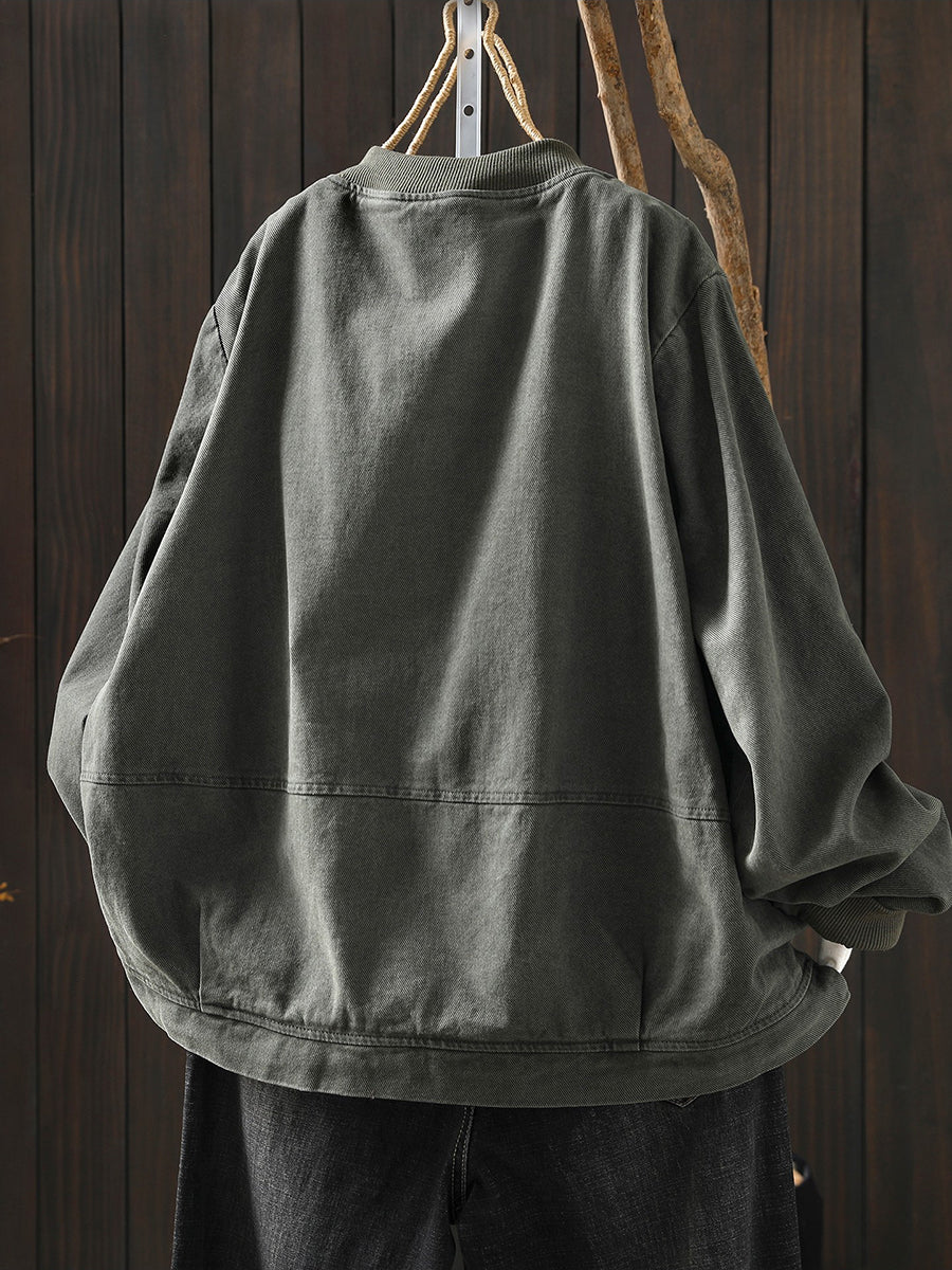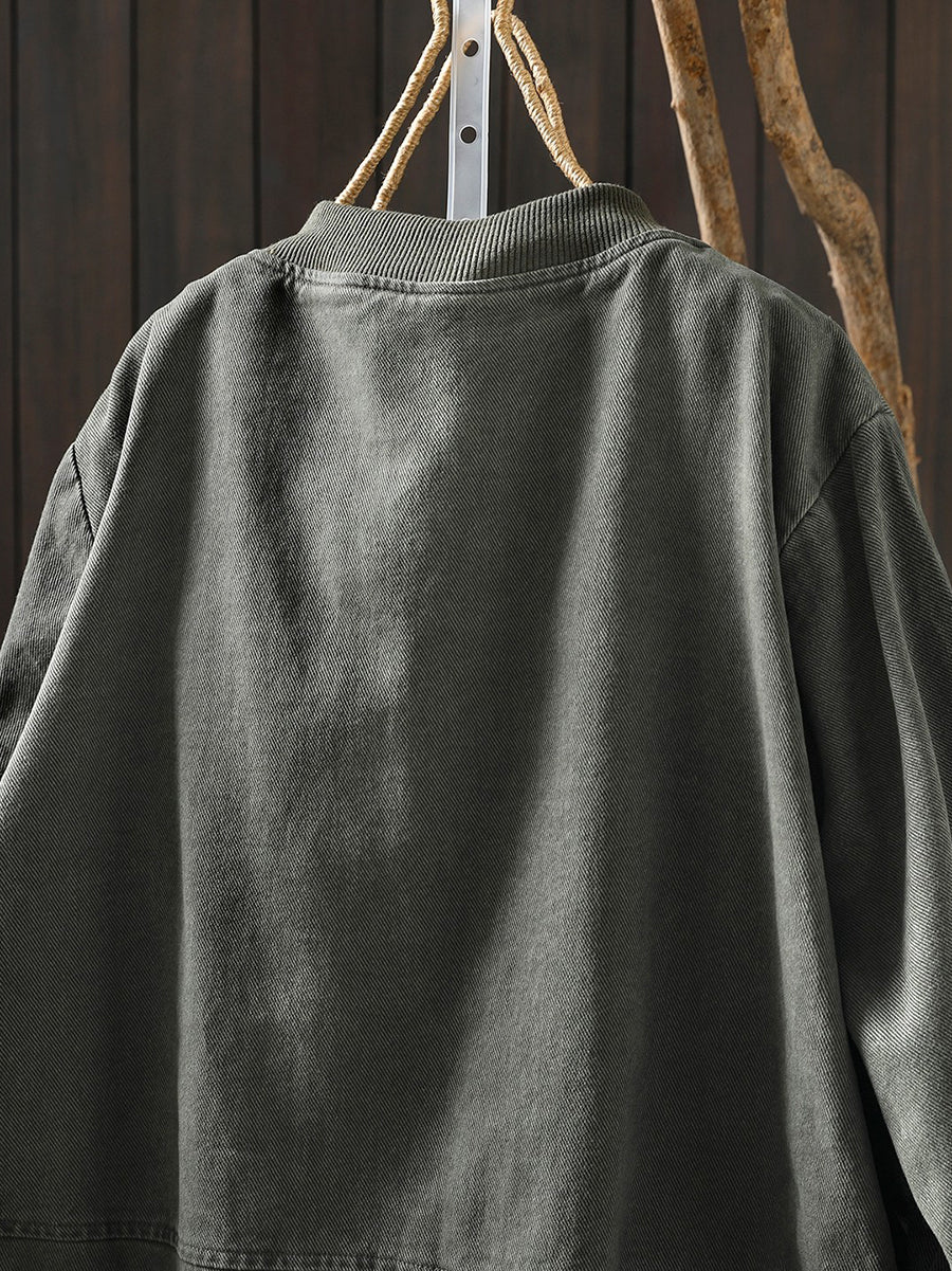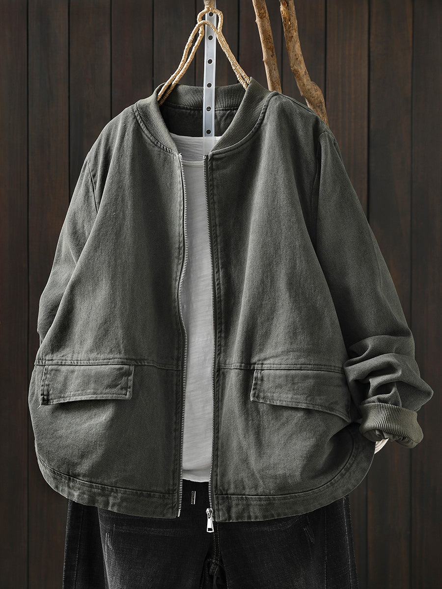 Women Spring Casual Pure Color Cotton Zipper Jacket