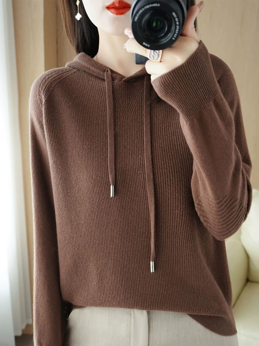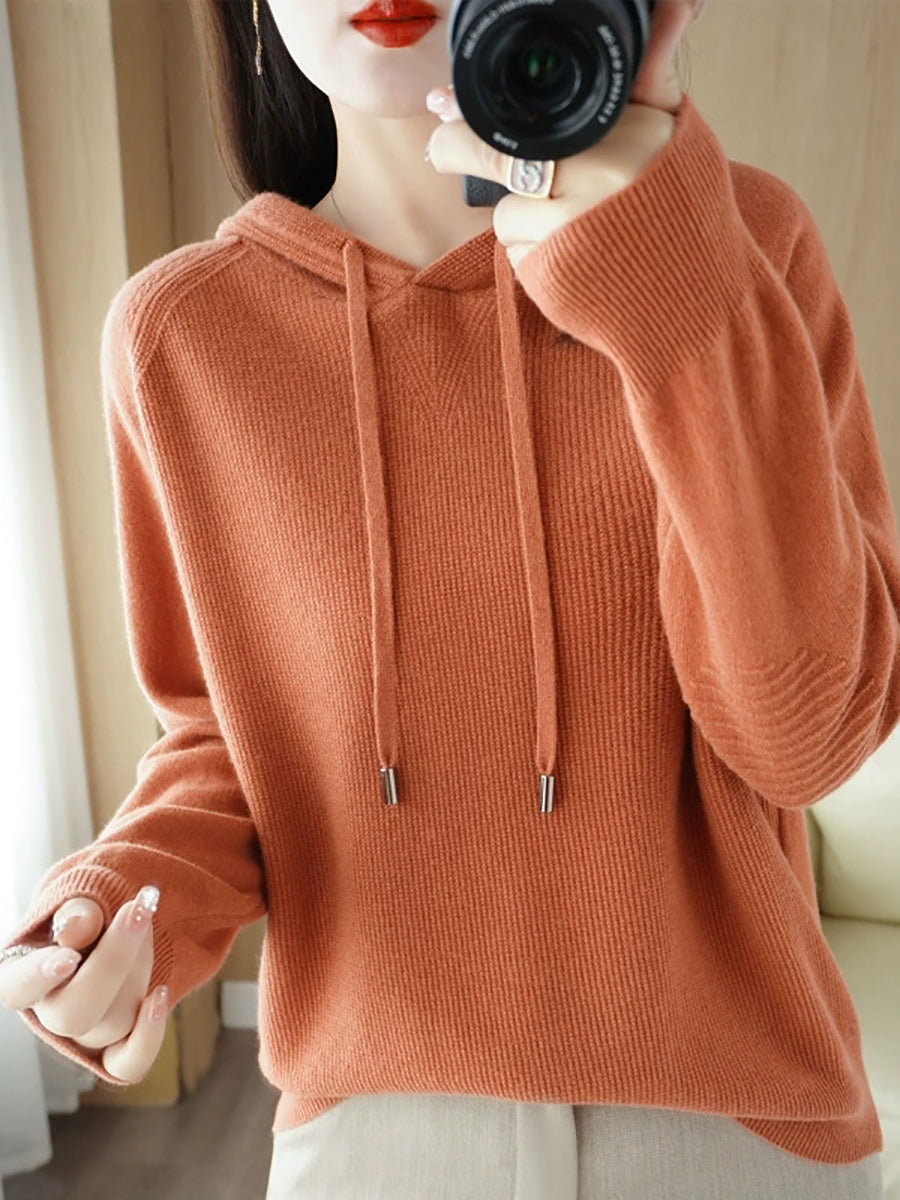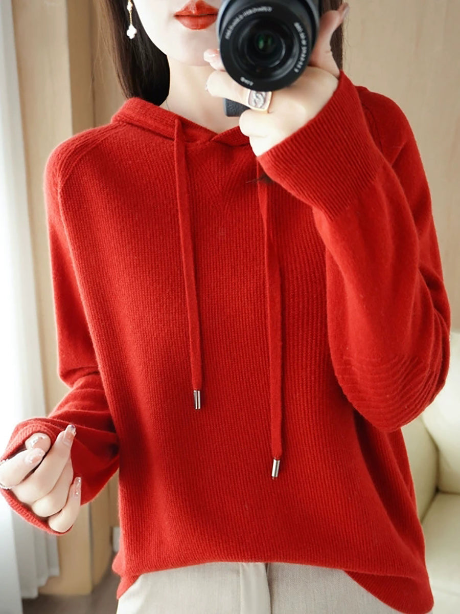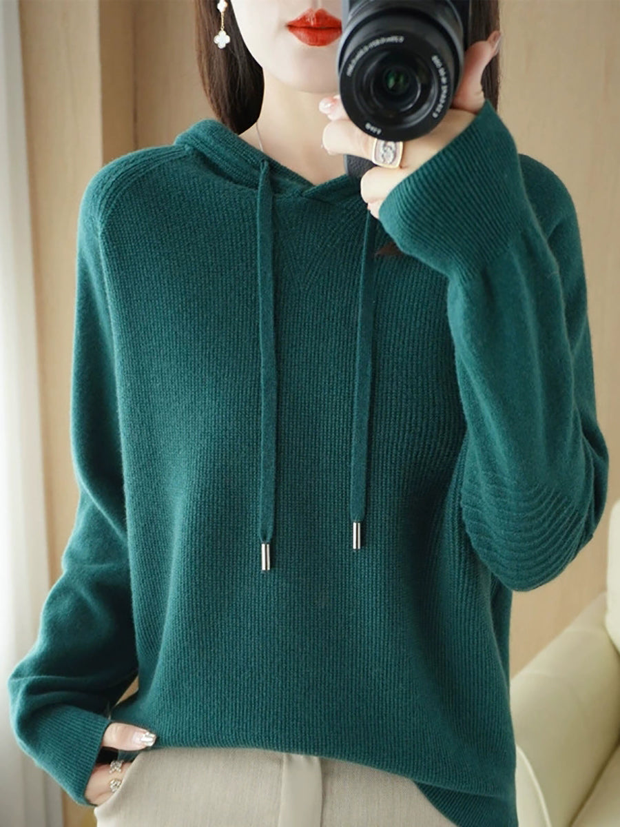 Women Spring Casual Pure Color Hooded Sweater