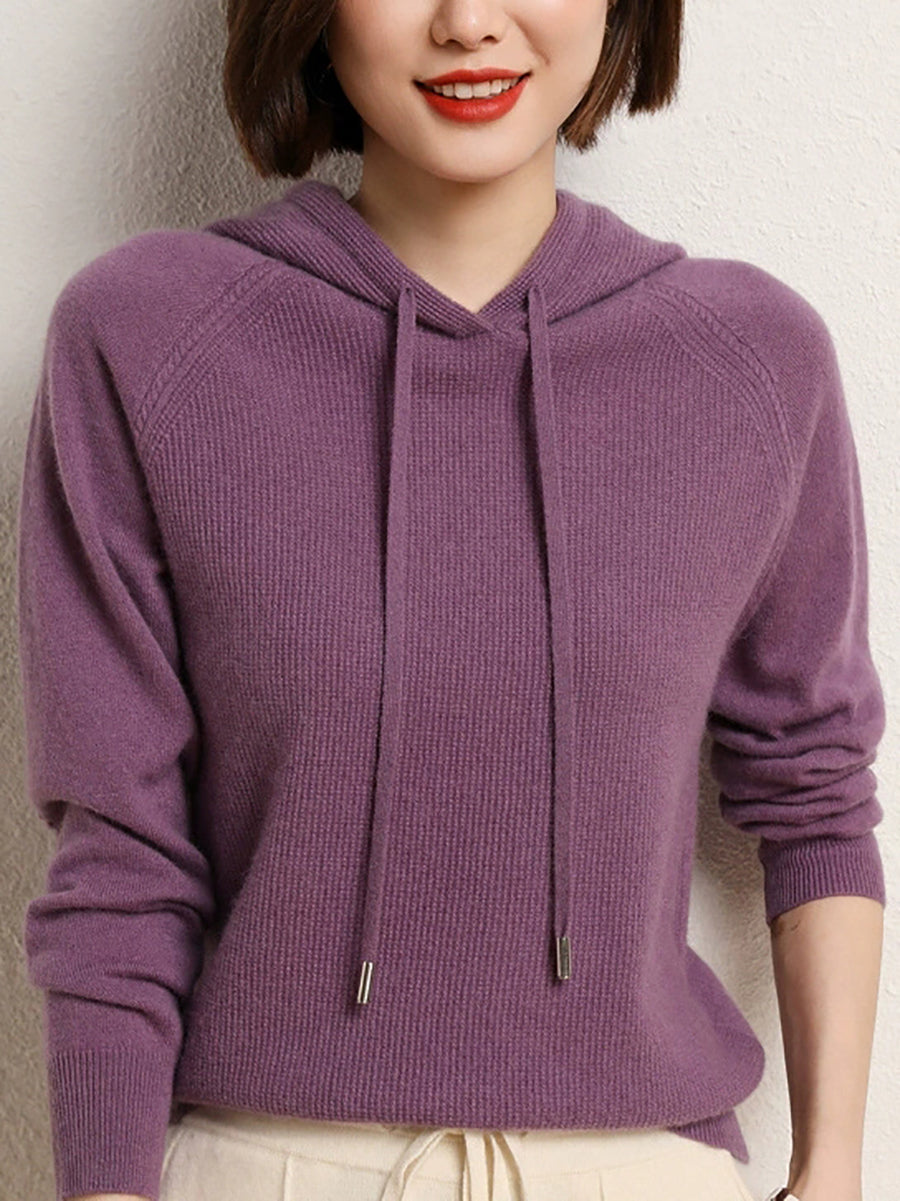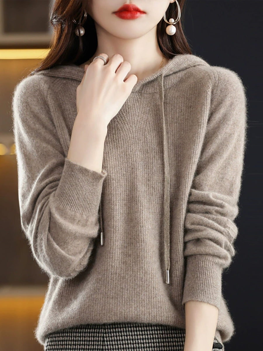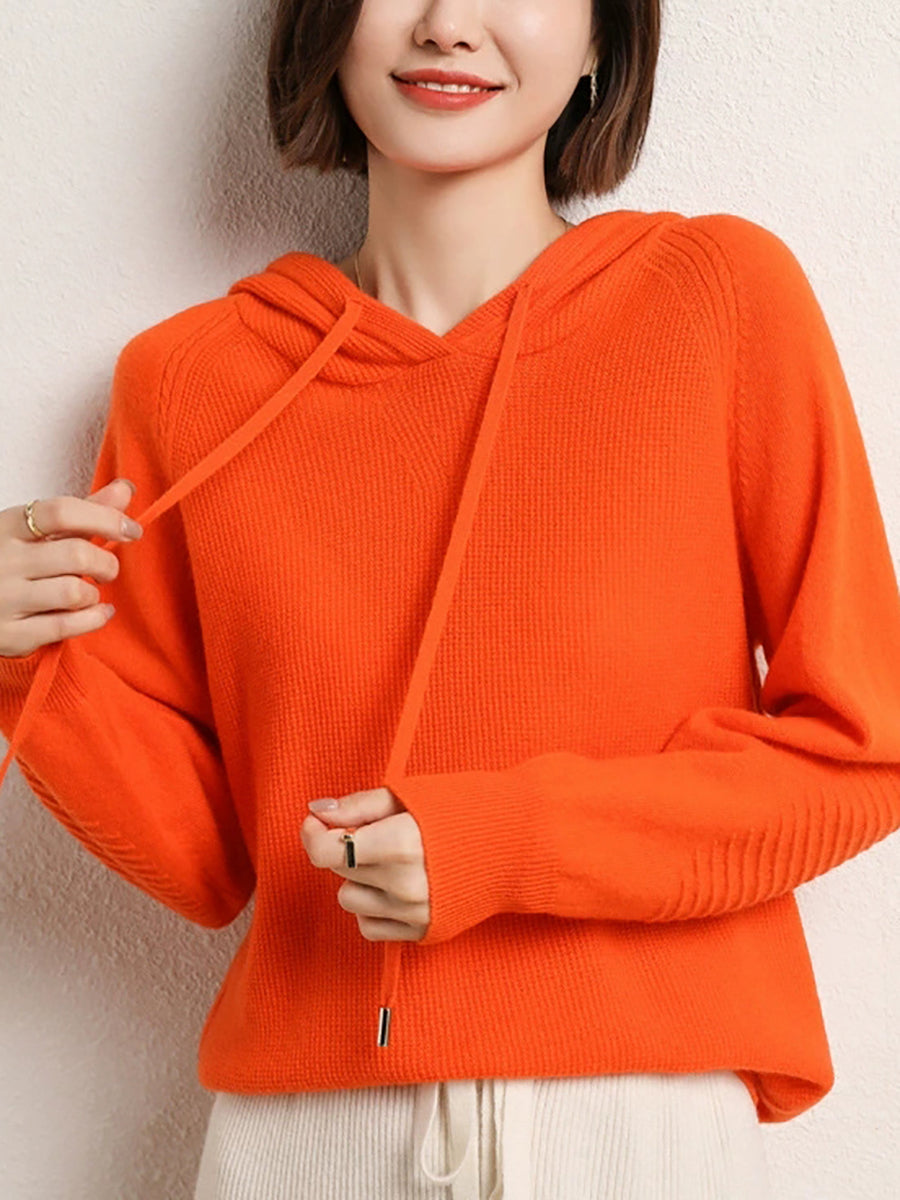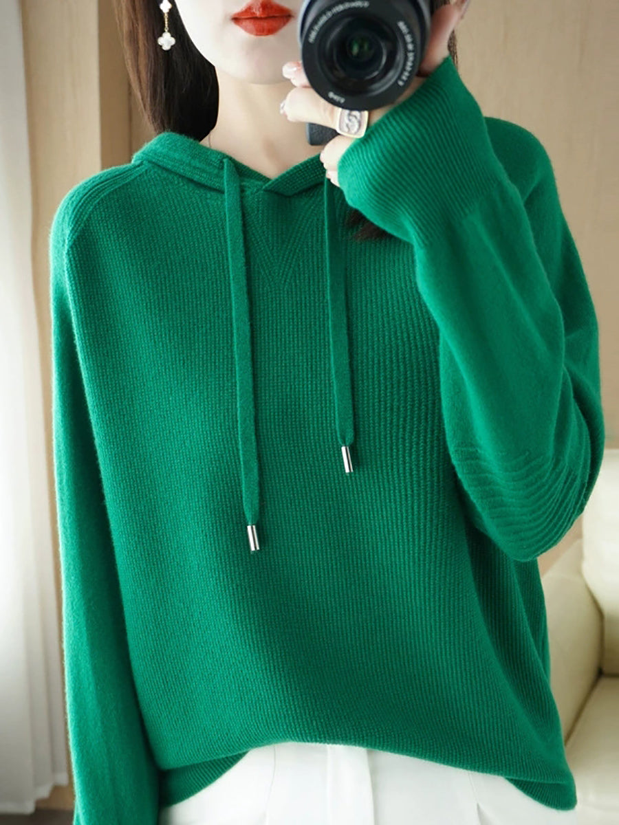 Women Spring Casual Pure Color Hooded Sweater