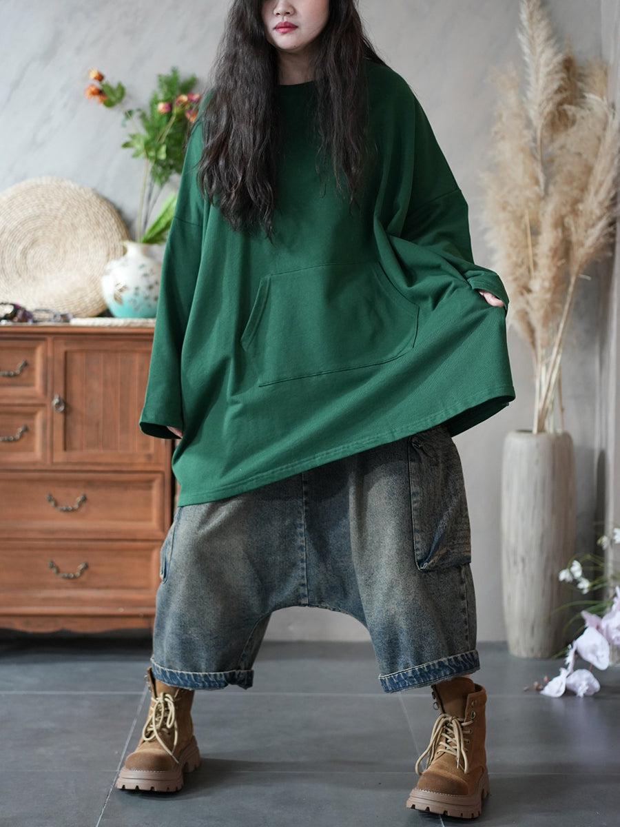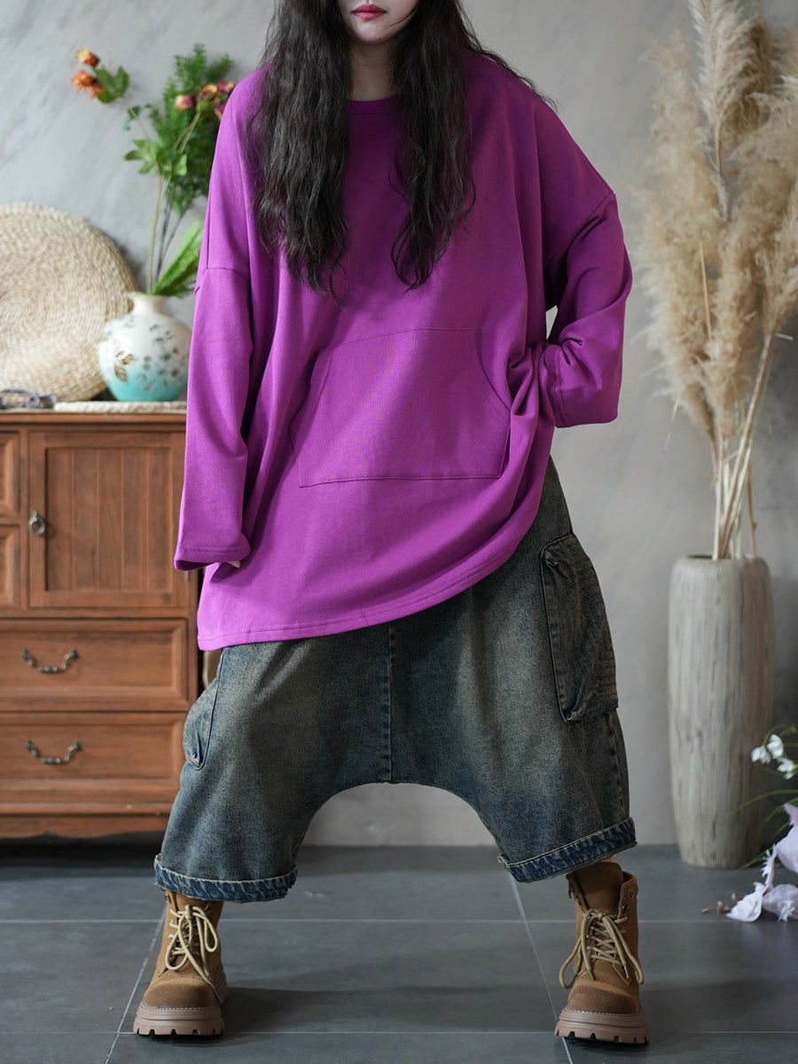 Women Spring Casual Pure Color O-Neck Blouse