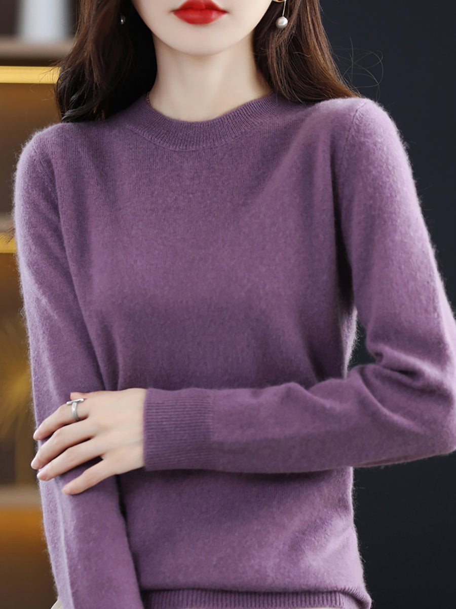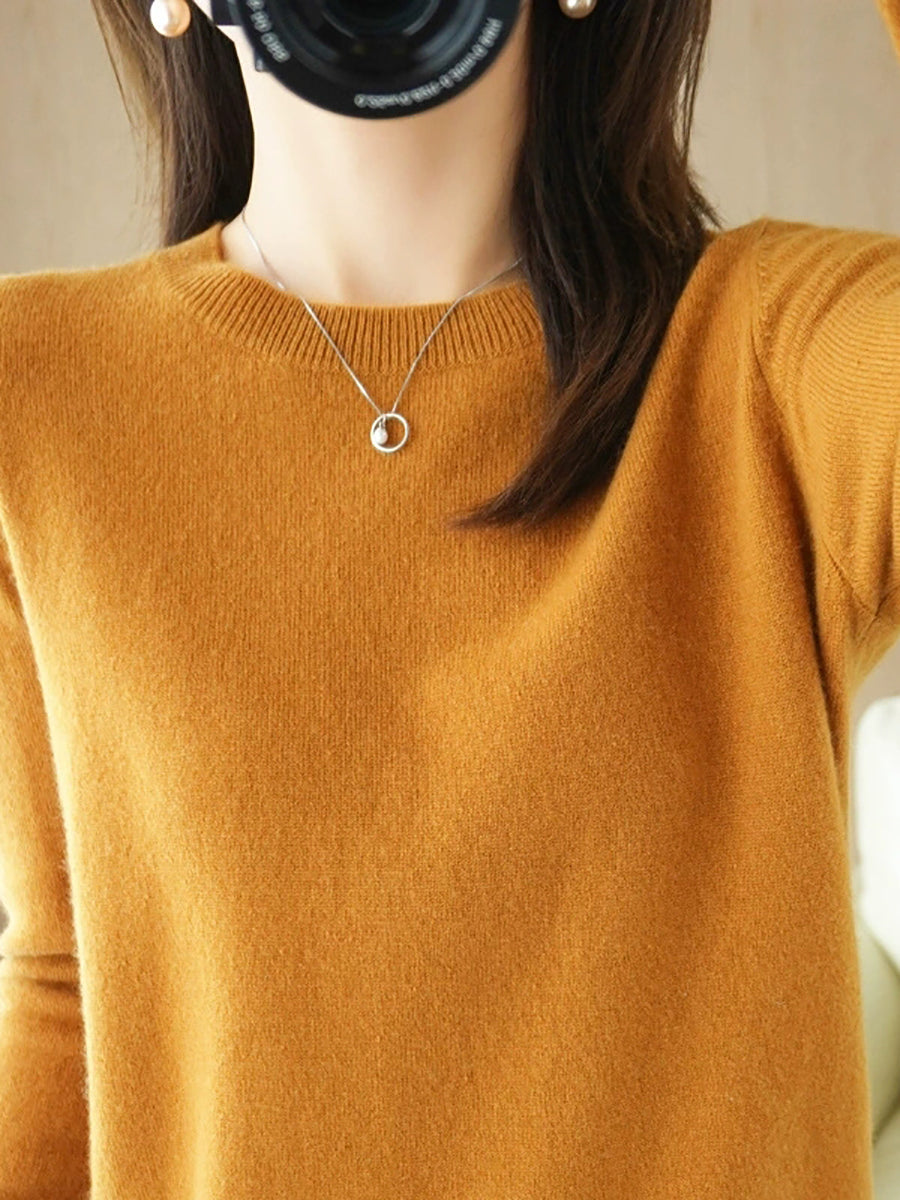 Women Spring Casual Pure Color O-Neck Sweater
