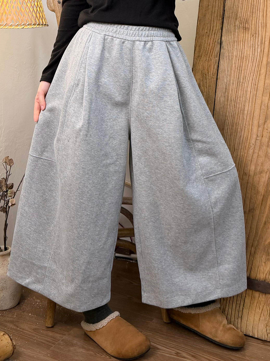 Women Spring Casual Pure Color Wide-leg Pants
