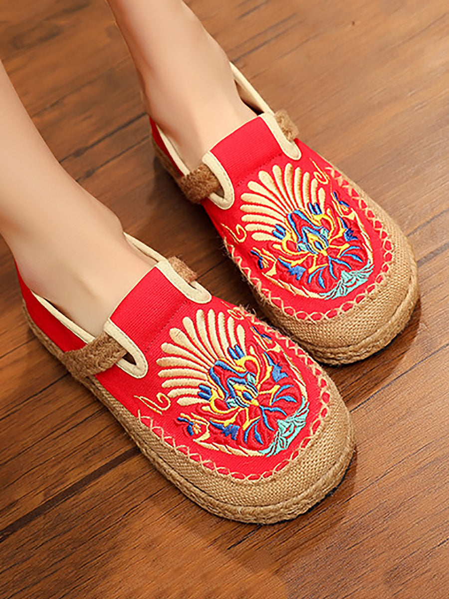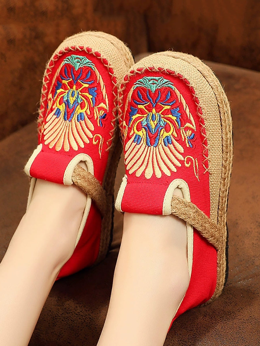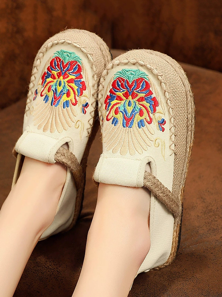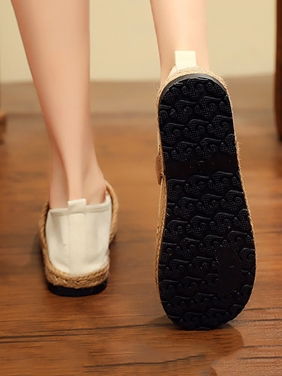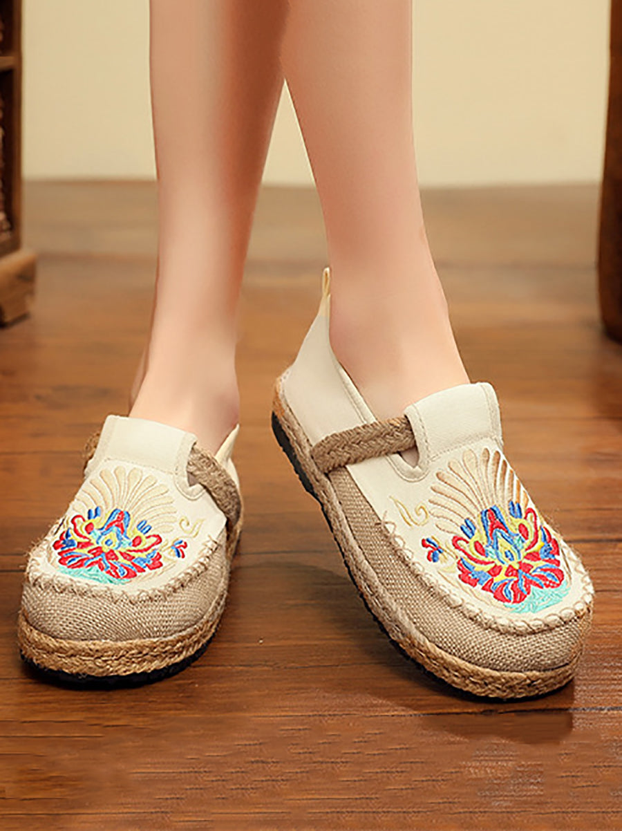 Women Spring Embroidery Linen Canvas Shoes