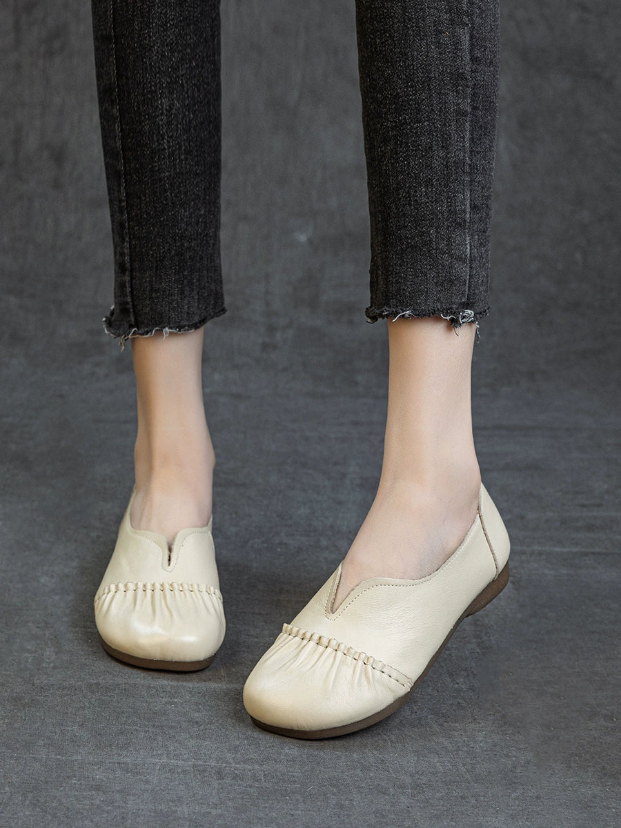 Women Spring Genuine Leather Spliced Low Heel Shoes