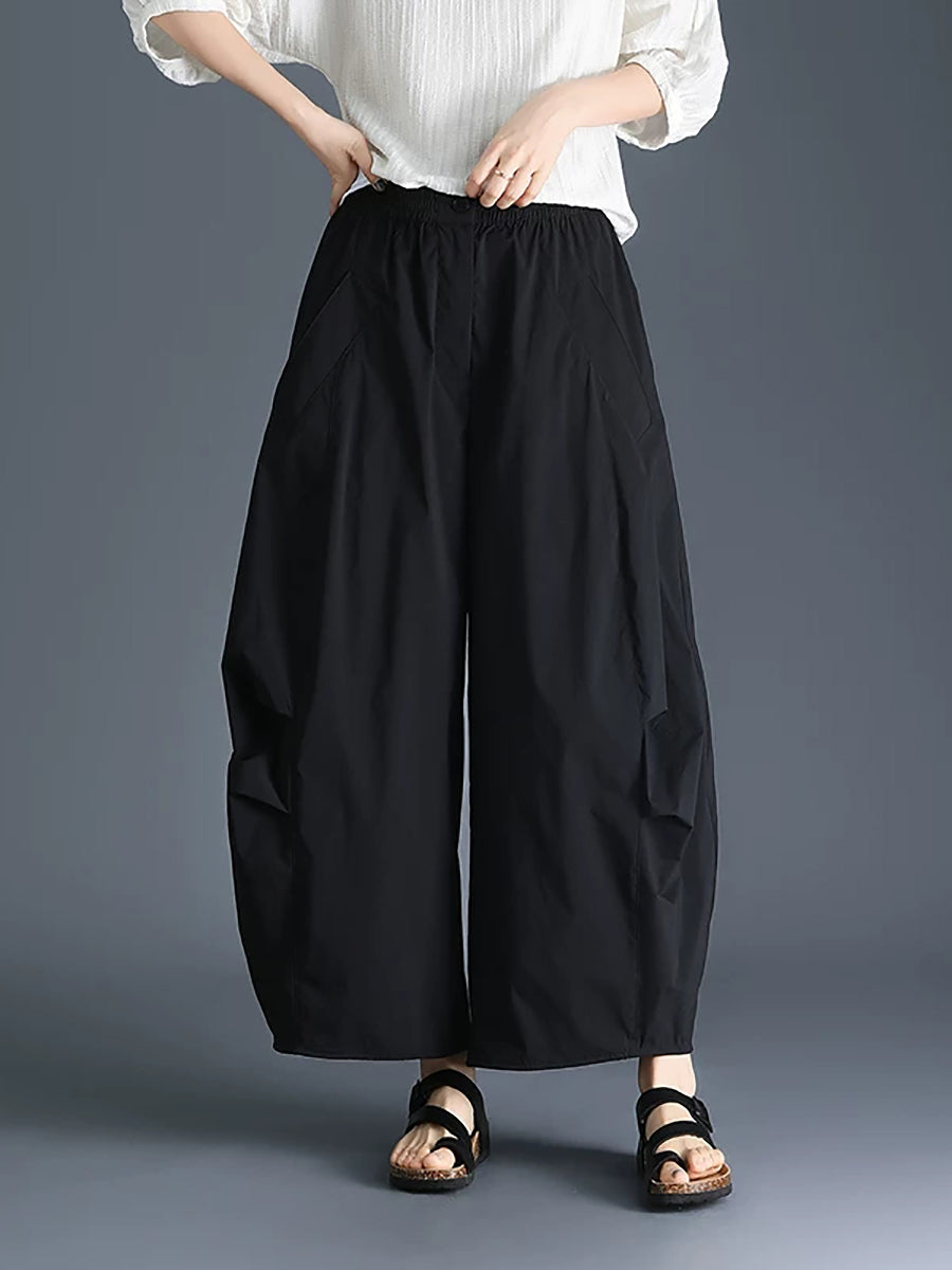 Plus Size Women Spring Pure Color Cotton Wide-leg Pants