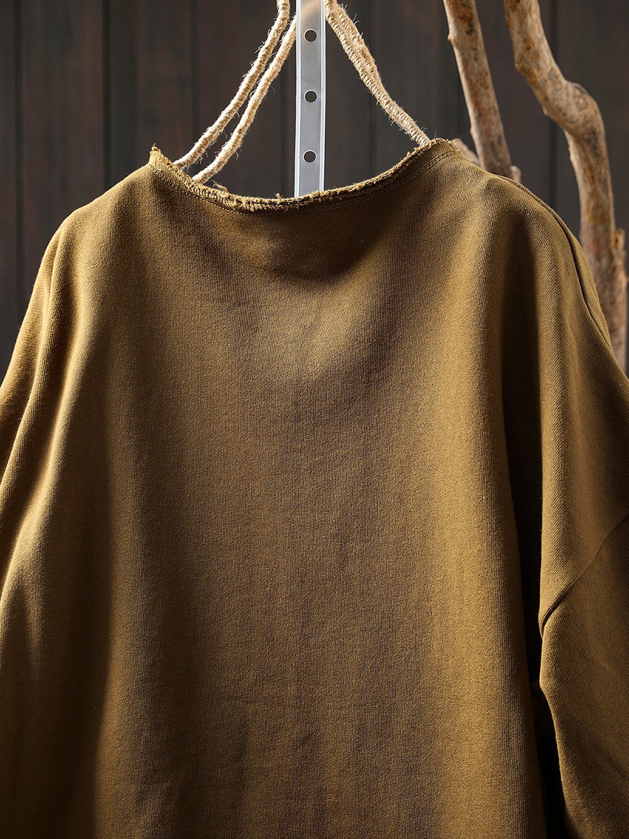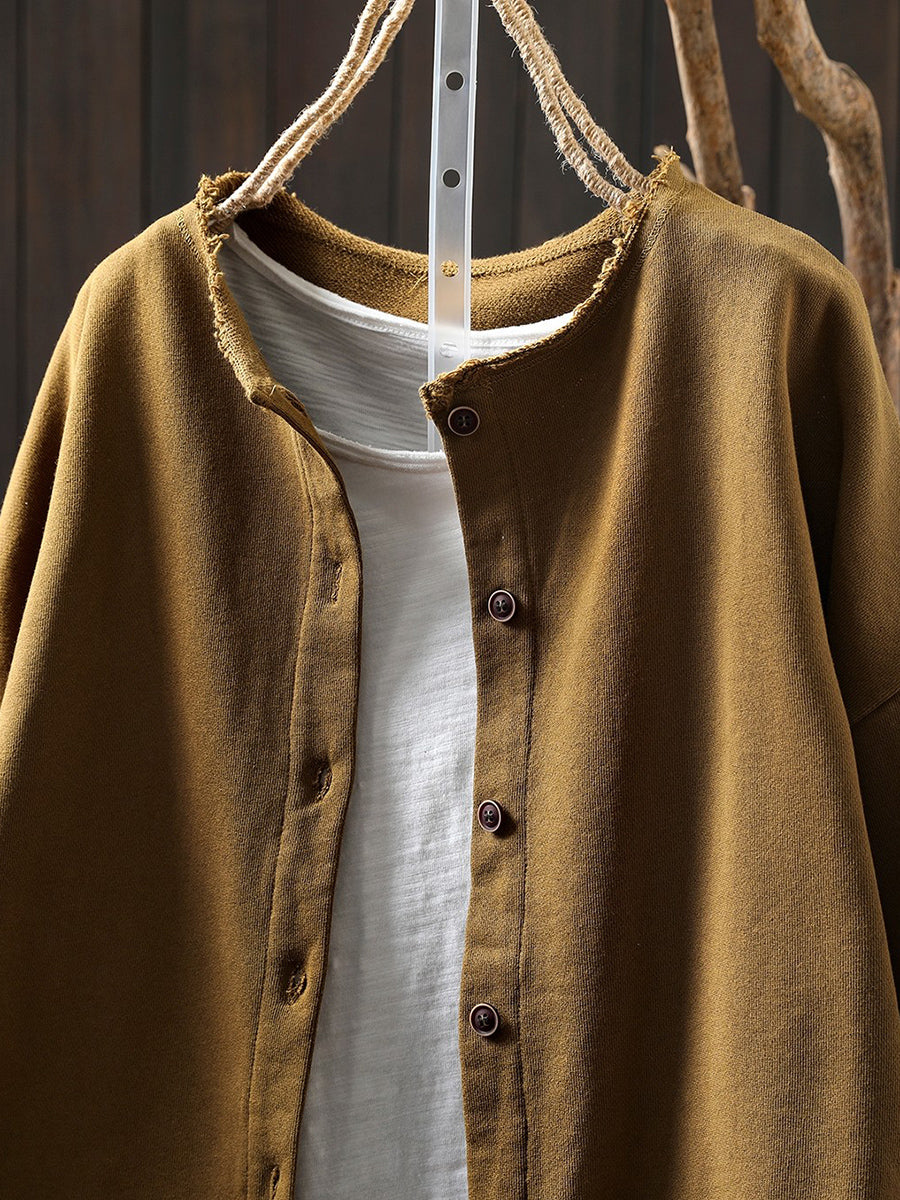 Women Spring Pure Color O-Neck Cotton Coat