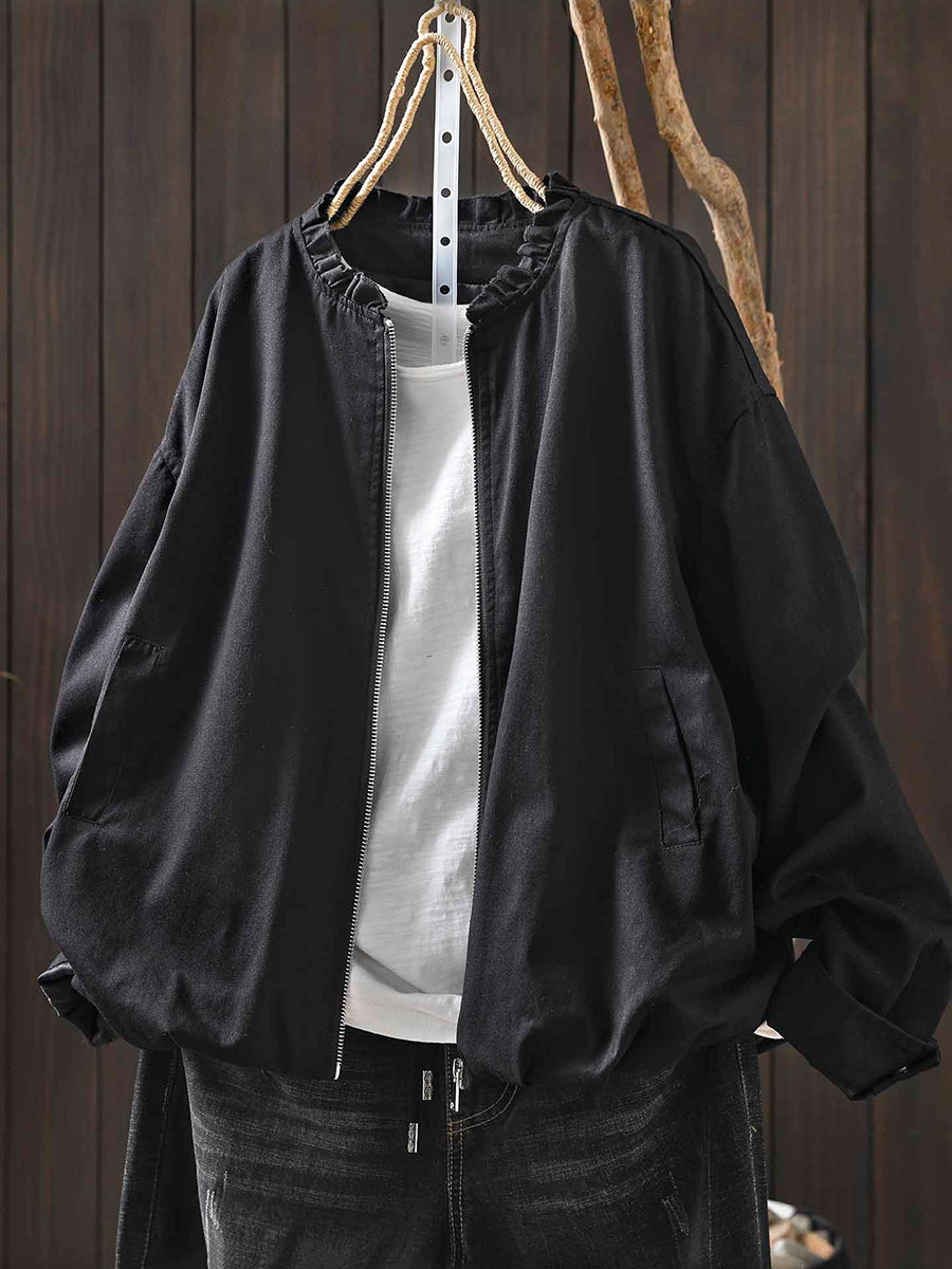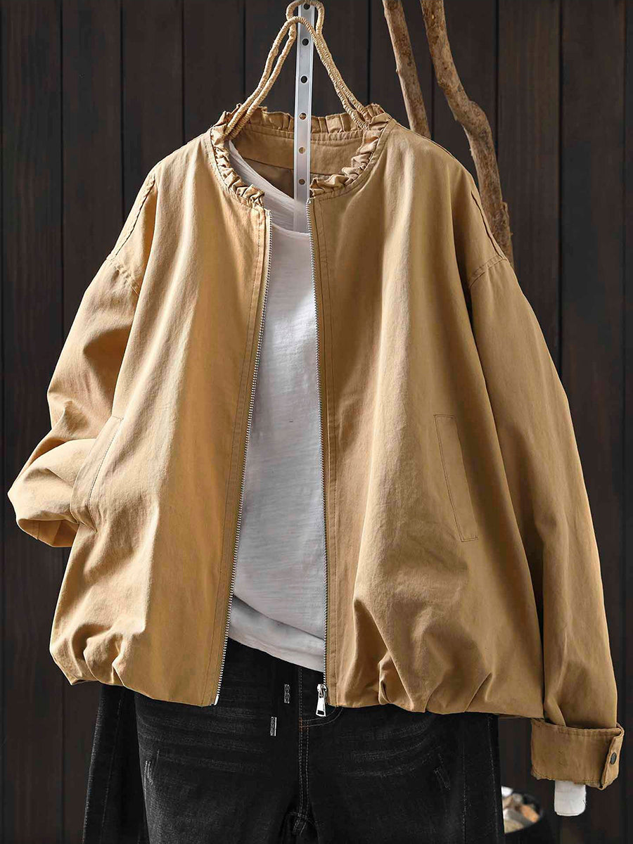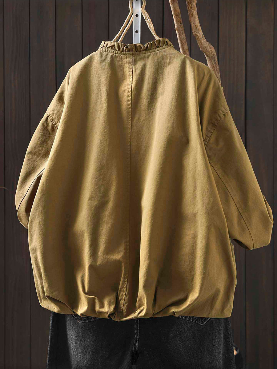 Women Spring Pure Color Stand Collar 100%Cotton Coat