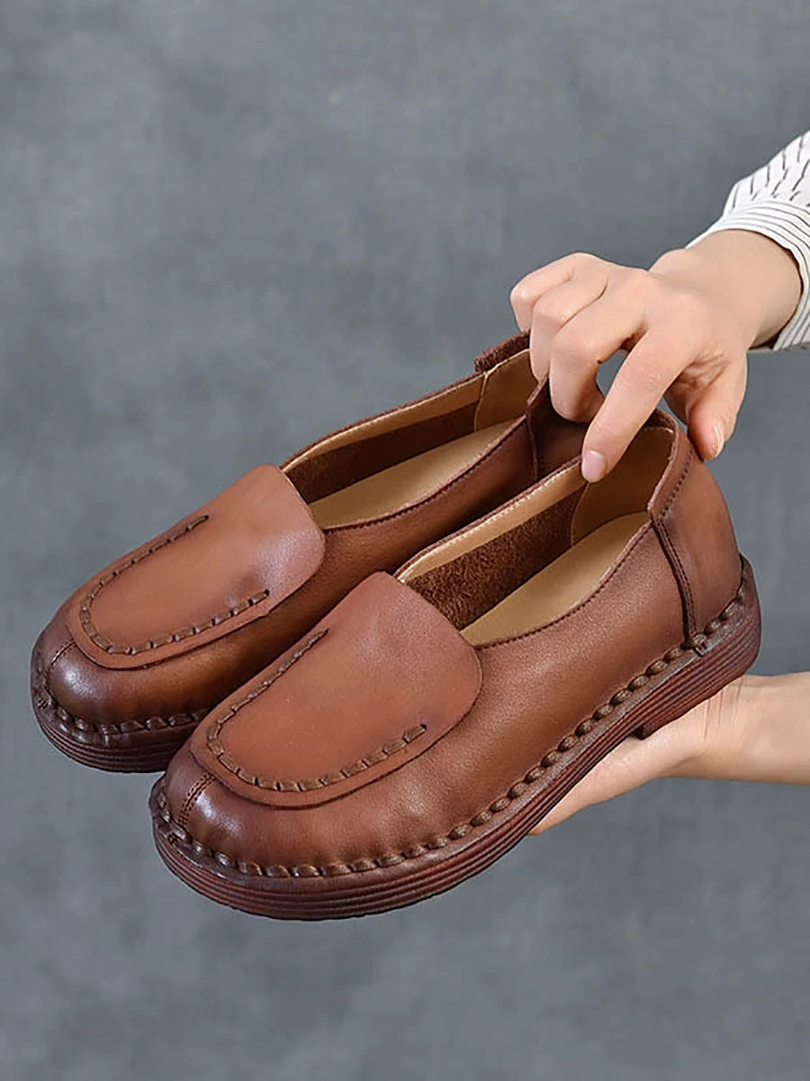 Women Spring Retro Genuine Leather Spliced Low Heel Shoes