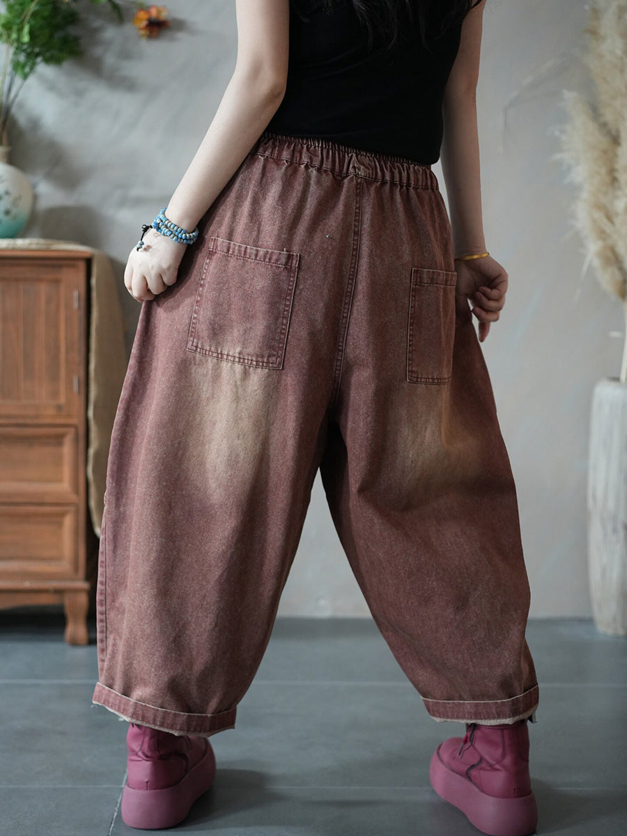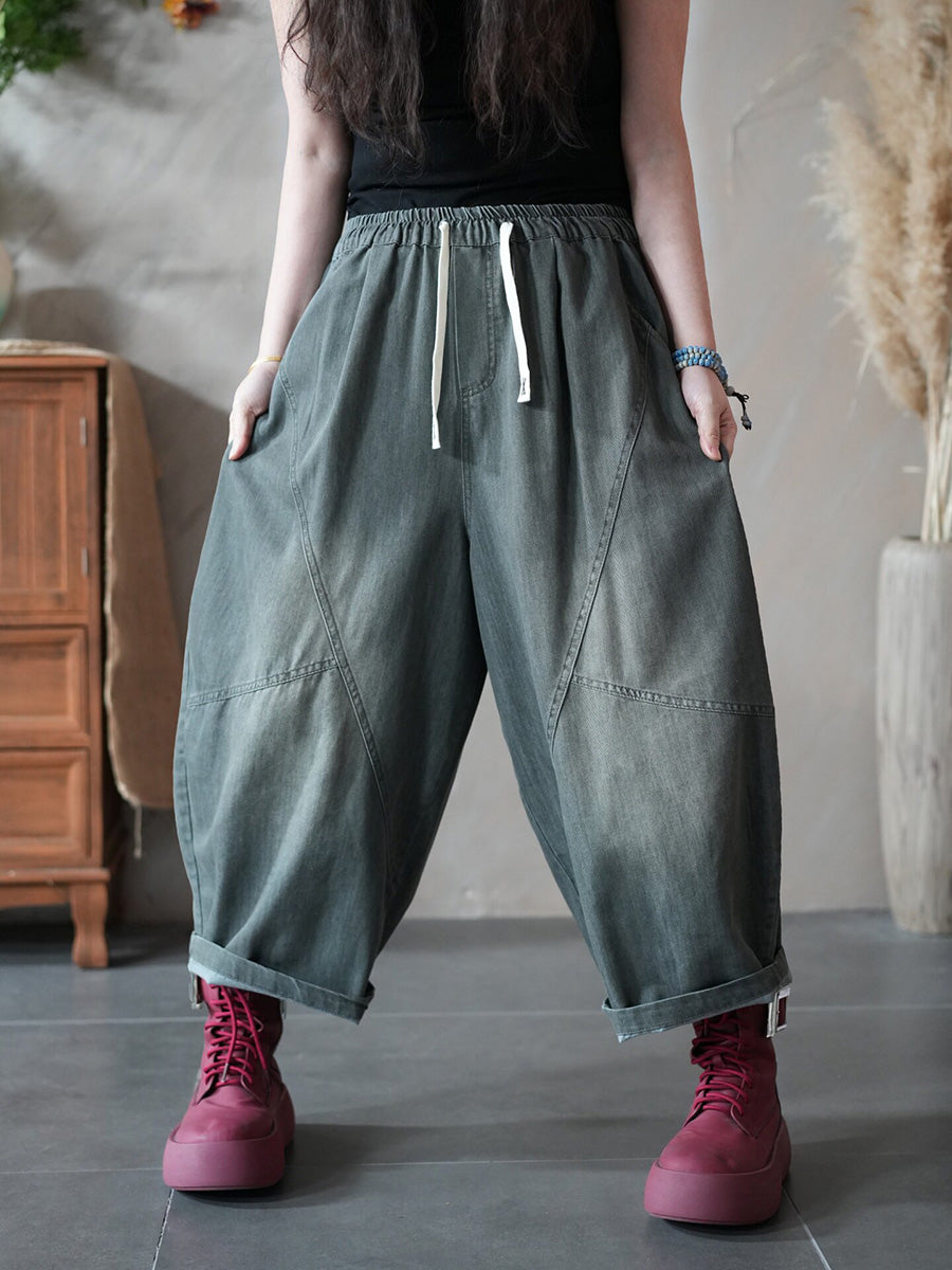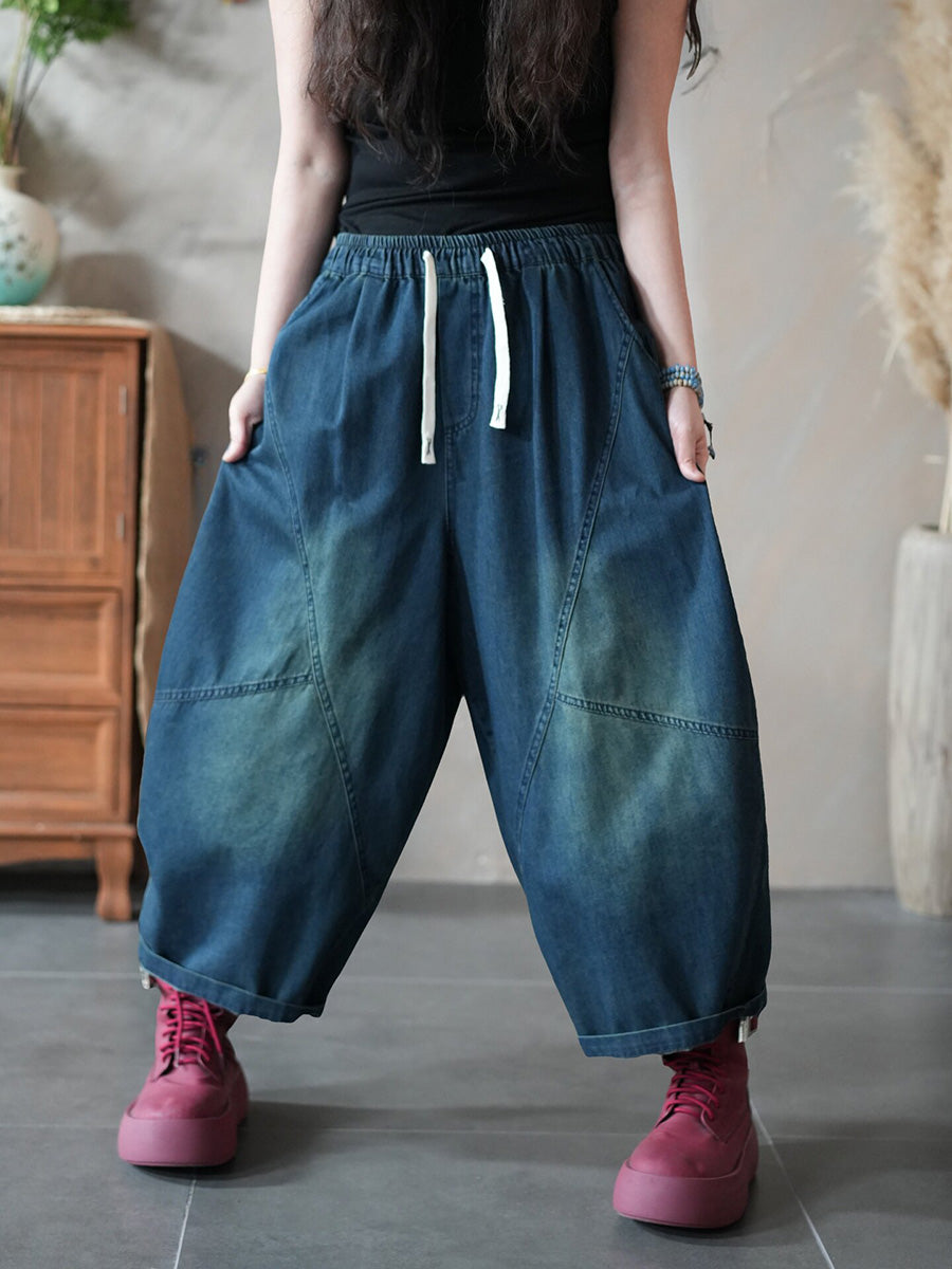 Women Spring Retro Pure Color Denim Harem Jeans