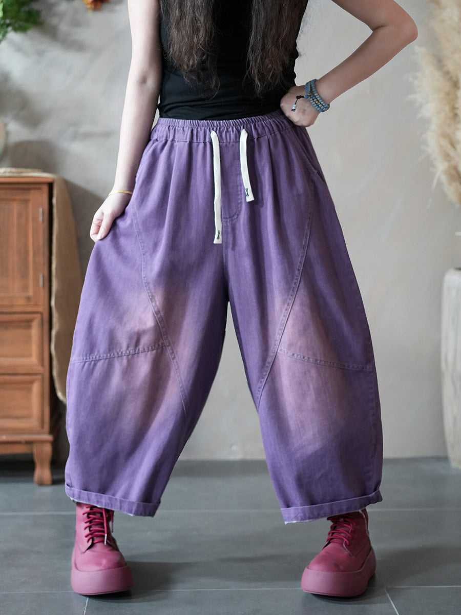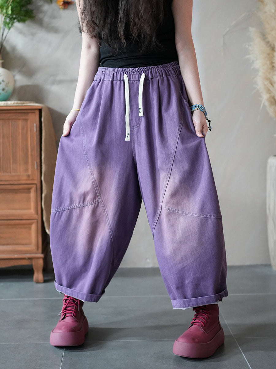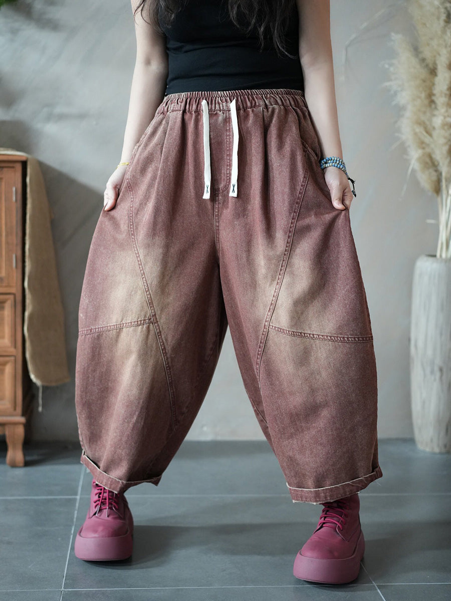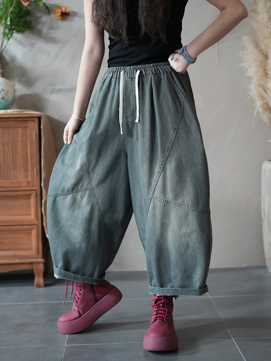Women Spring Retro Pure Color Denim Harem Jeans