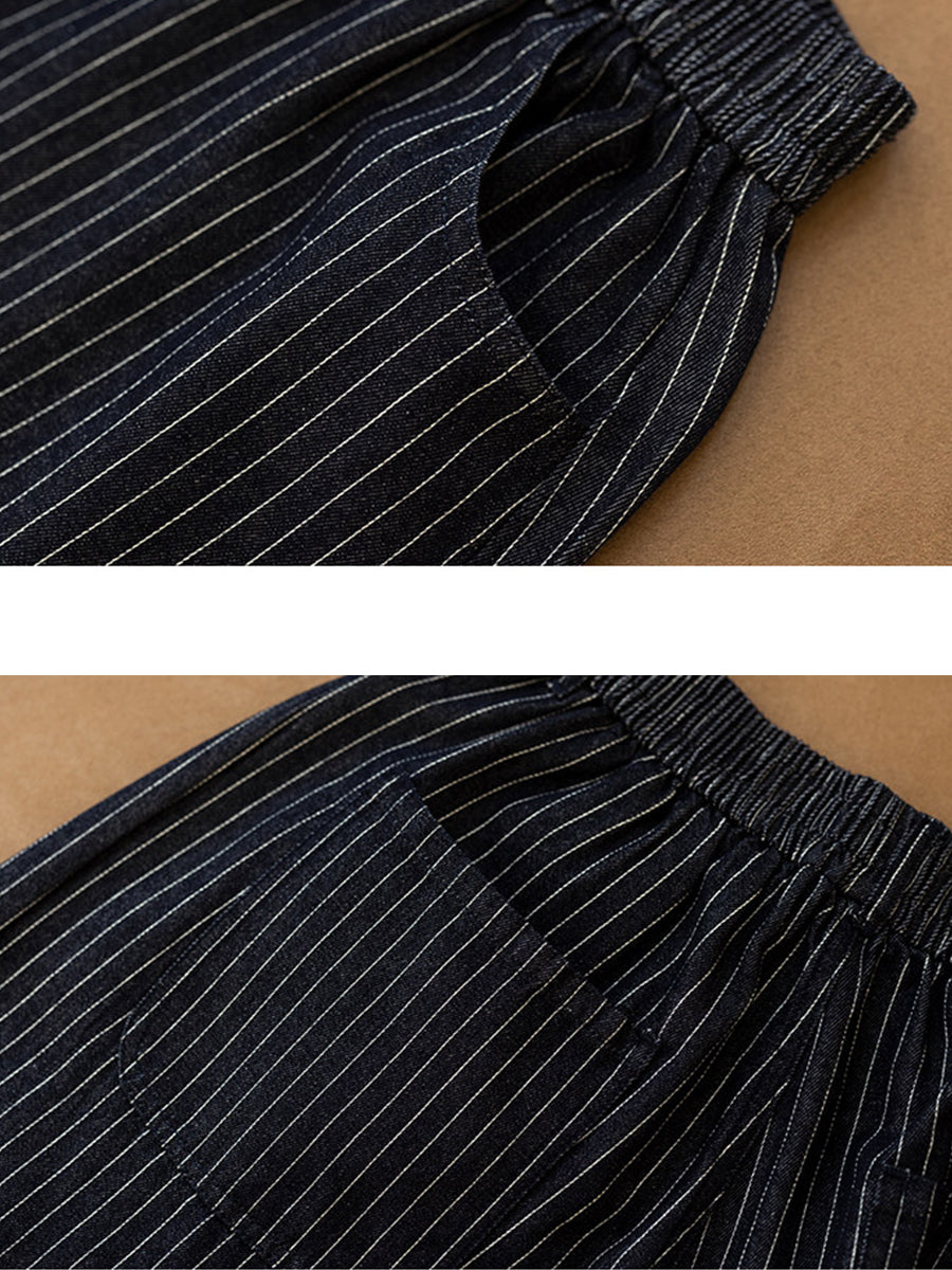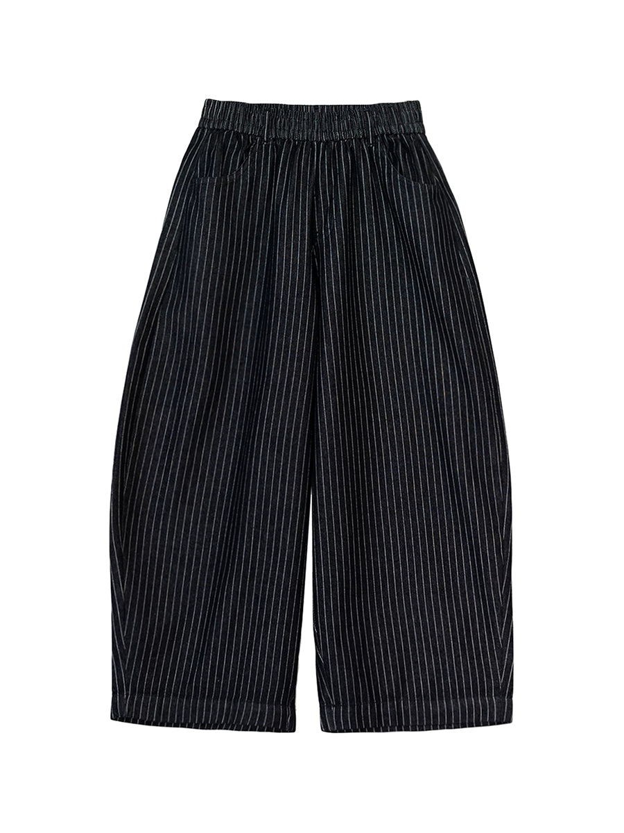 Women Spring Vintage Cotton Stripe Wide-leg Pants