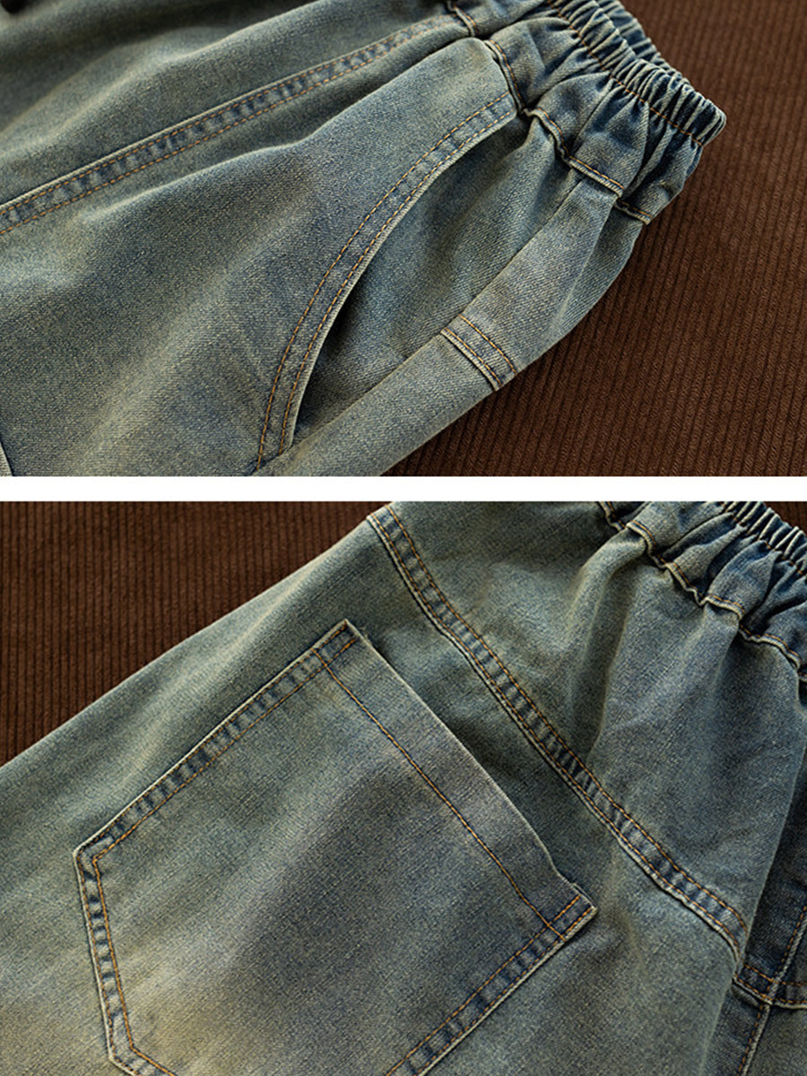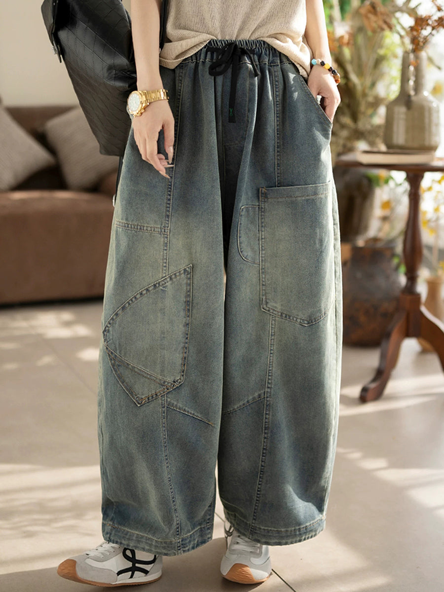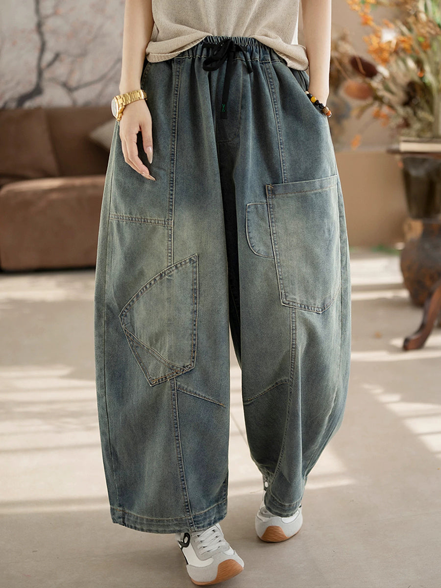 Women Spring Vintage Denim Spliced Harem Pants