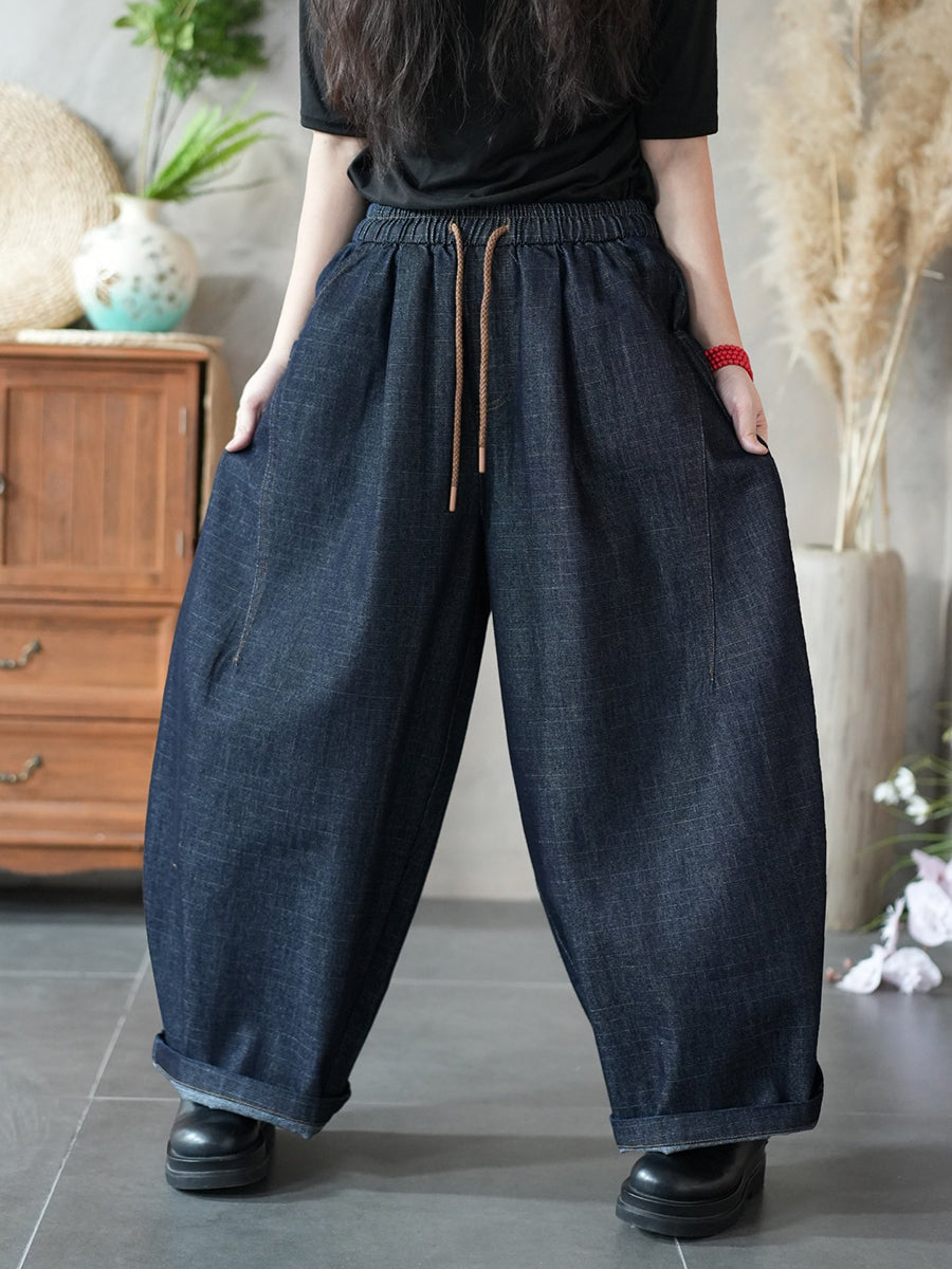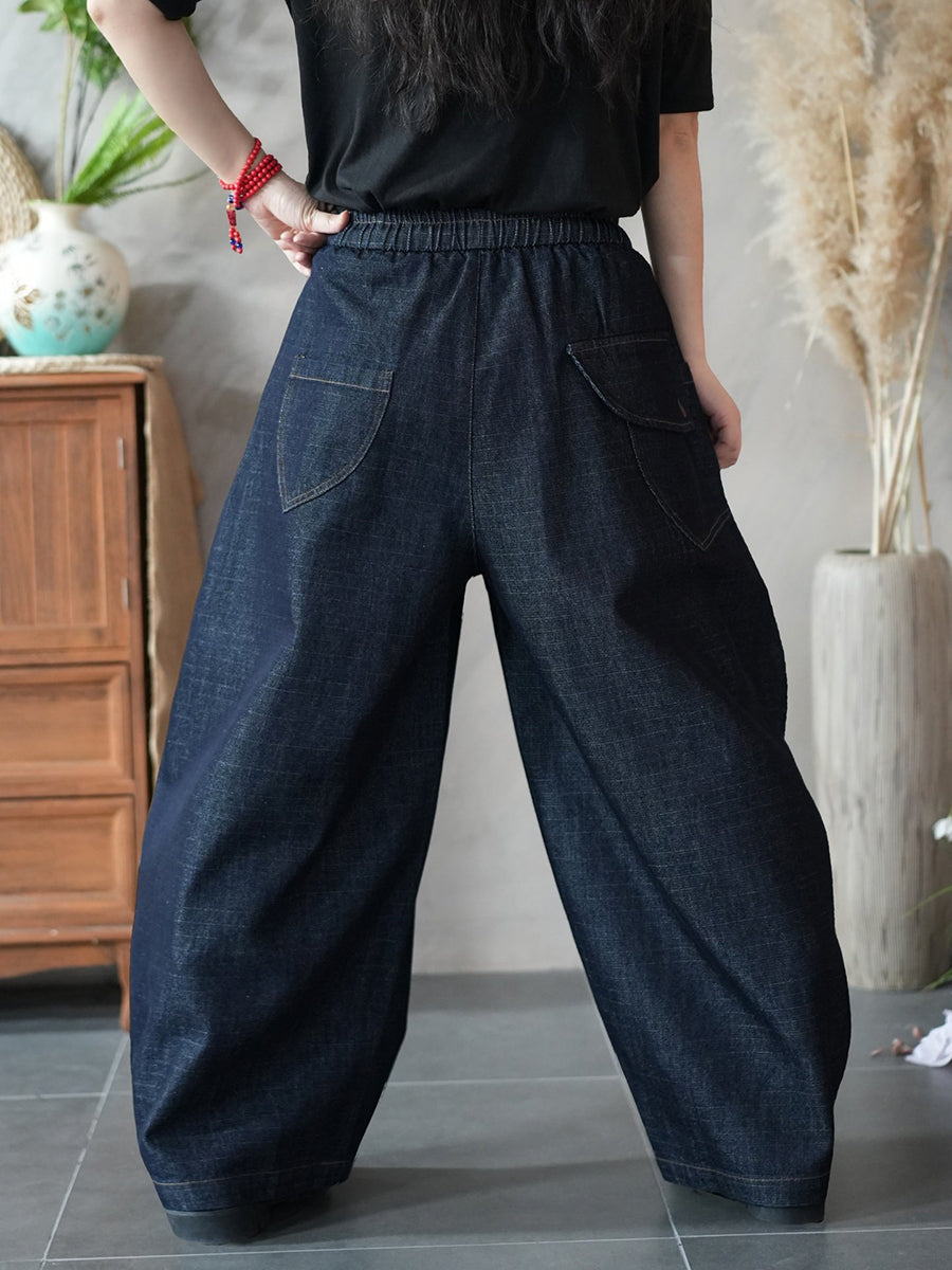 Women Spring Vintage Denim Wide-leg Pants