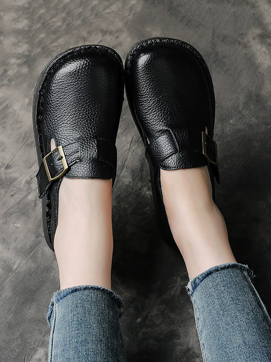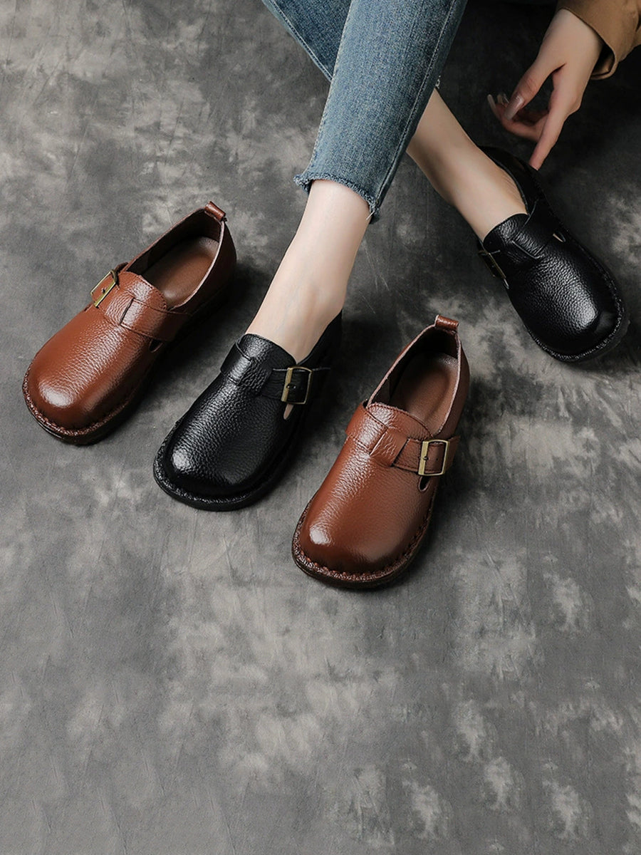 Women Spring Vintage Genuine Leather Flat Shoes