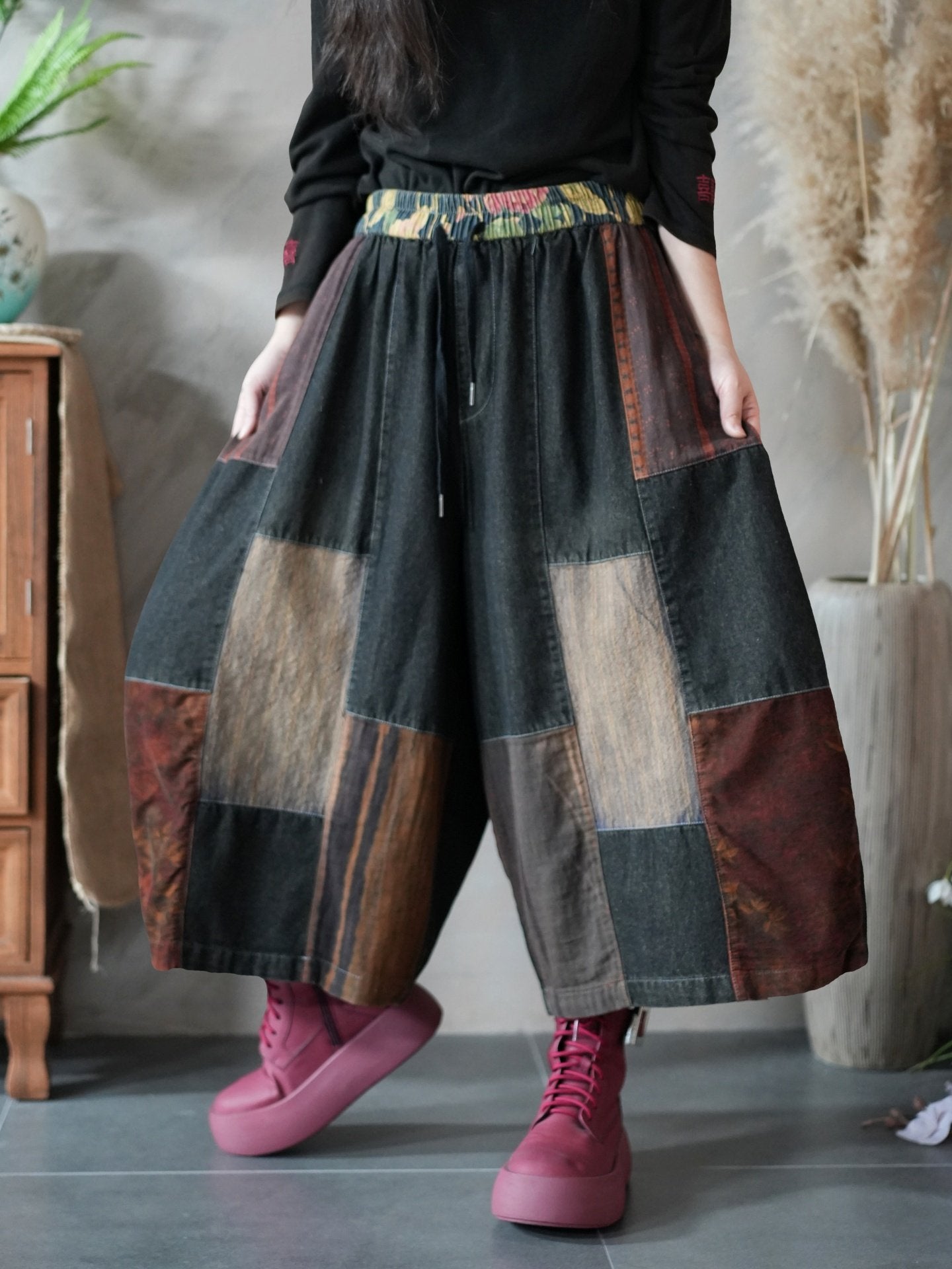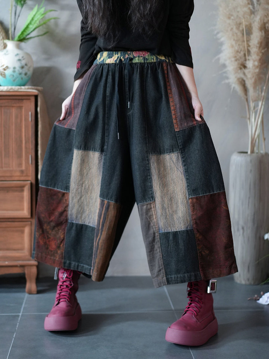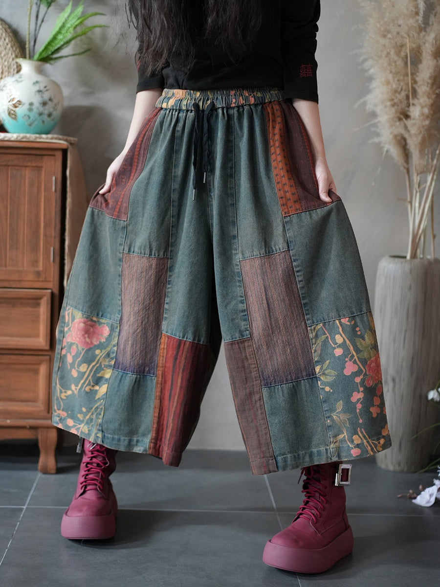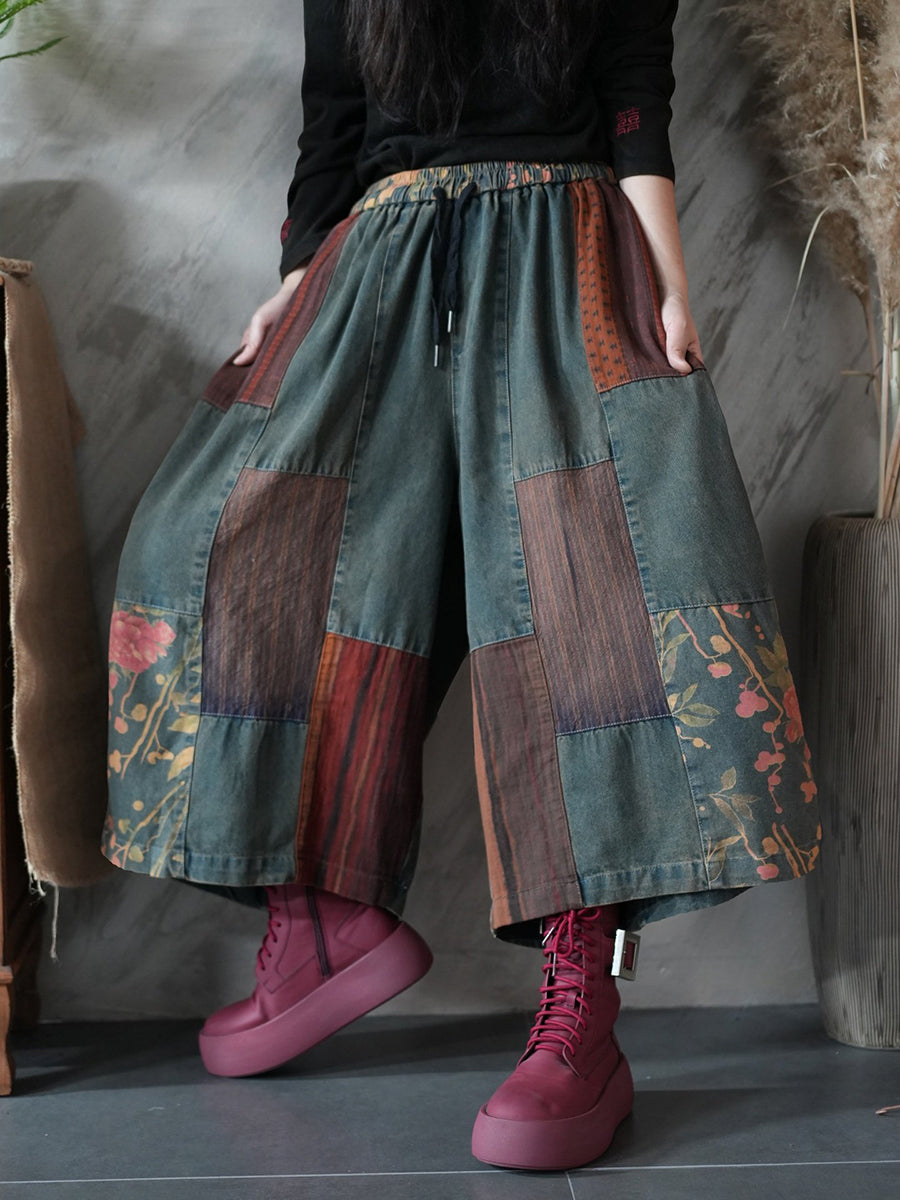 Women Spring Vintage Patchwork Wide-leg Pants