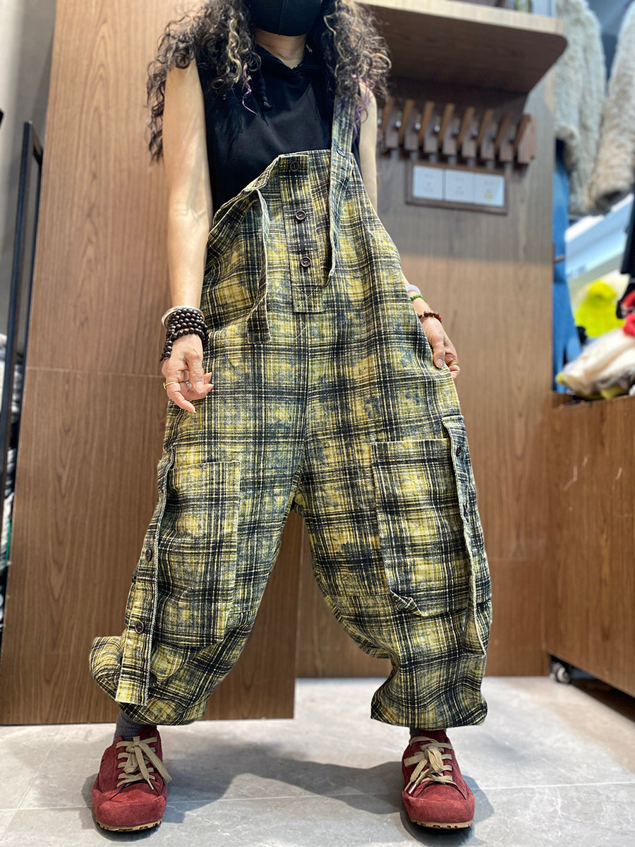 Women Spring Vintage Plaid Loose Jumpsuits