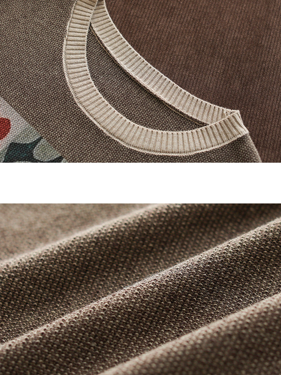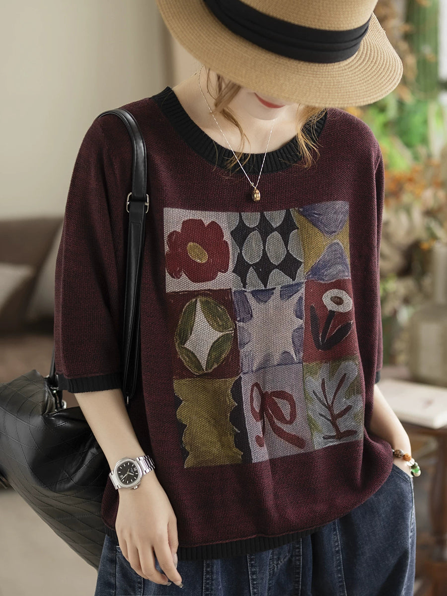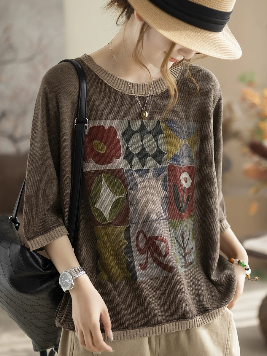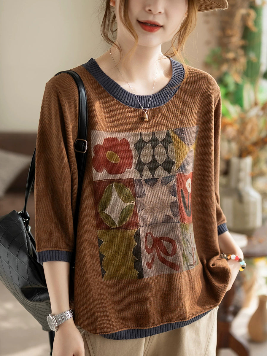 Women Spring Artsy Cotton O-neck Knitted Blouse