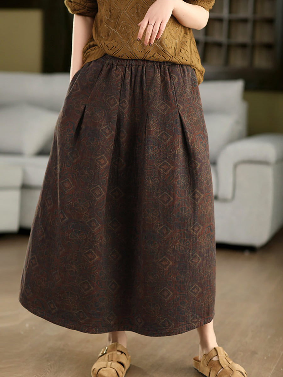 Women Summer Artsy Flower 100%Cotton Skirt