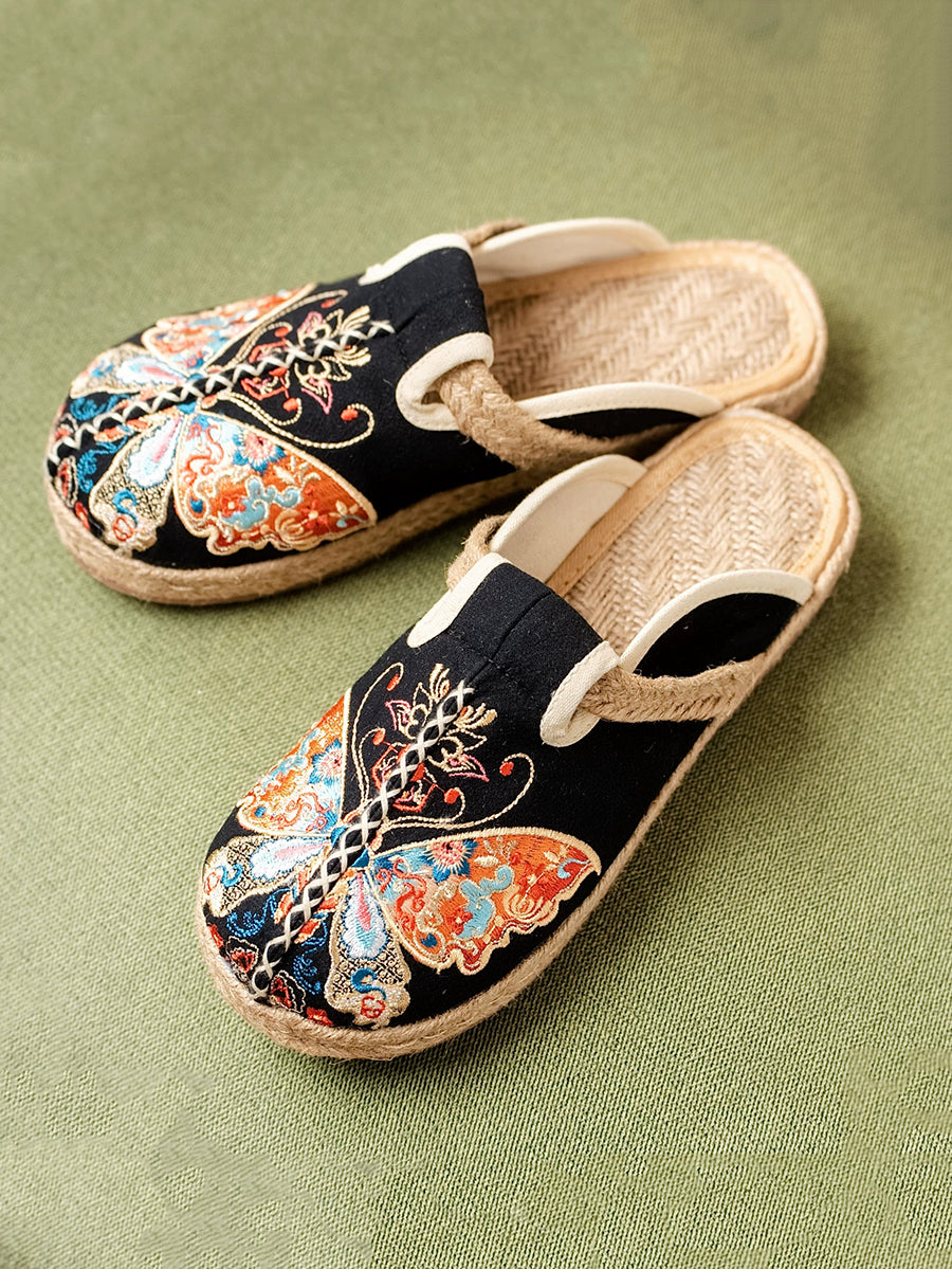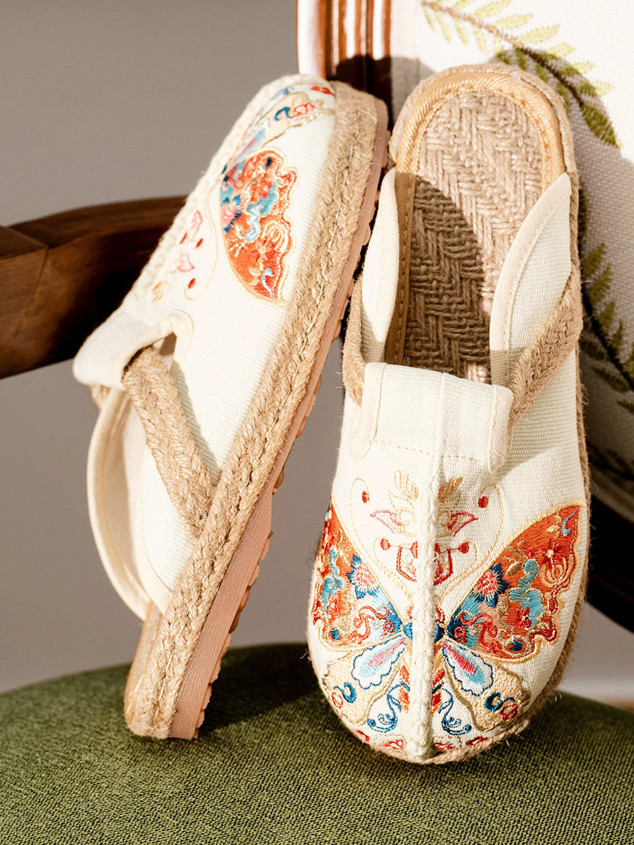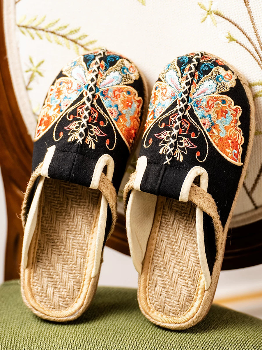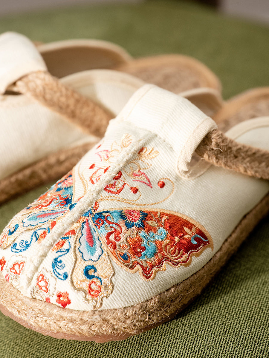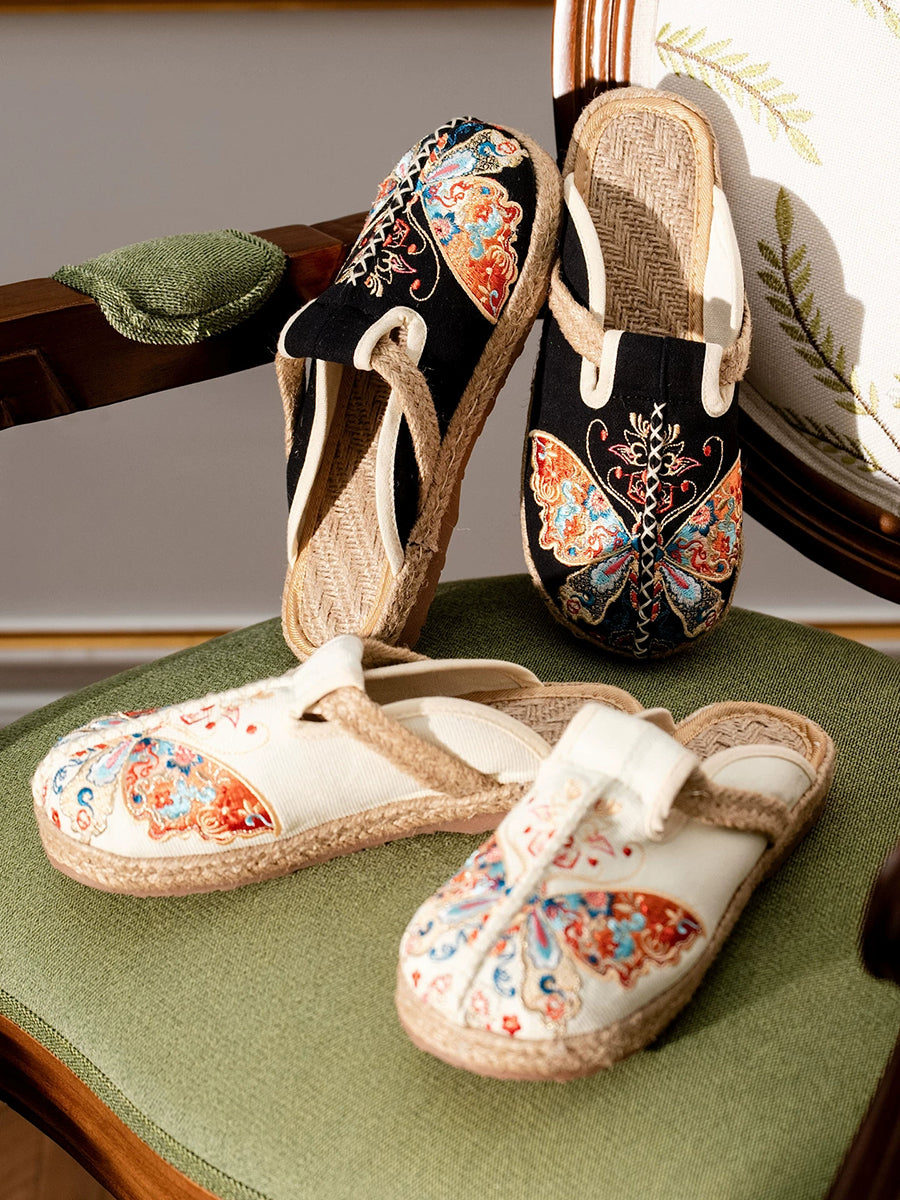 Women Summer Butterfly Embroidery Canvas Slippers