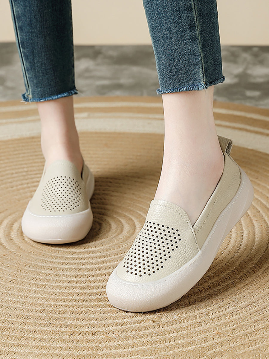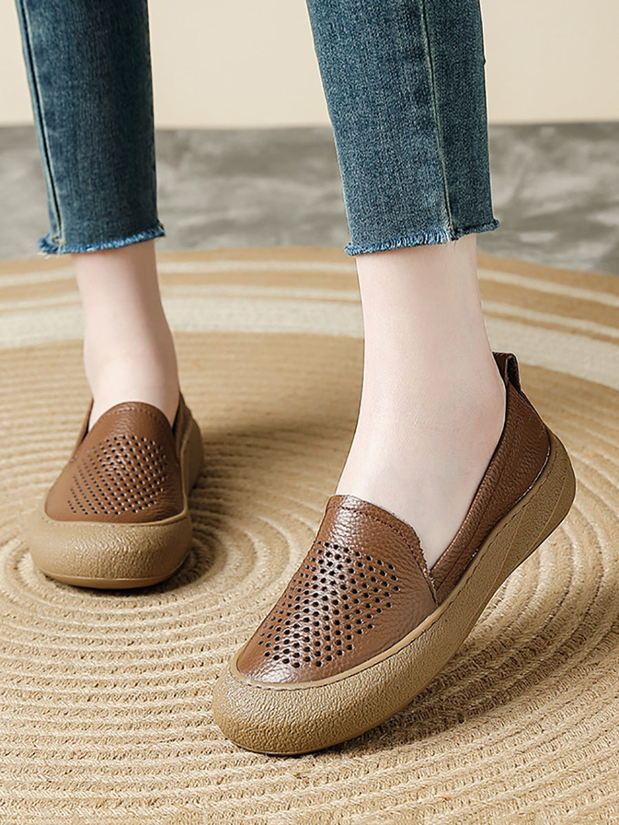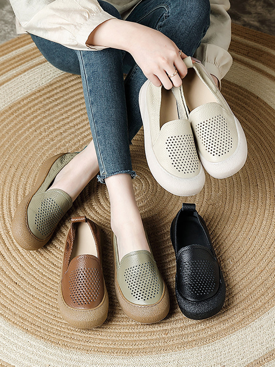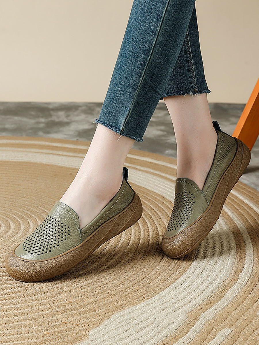 Women Summer Casual Genuine Leather Flat Shoes