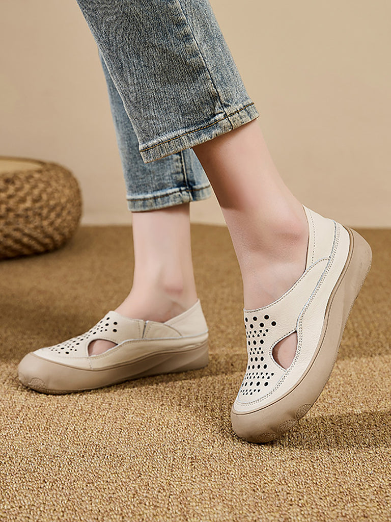 Women Summer Casual Pure Color Hollow Out Flat Shoes