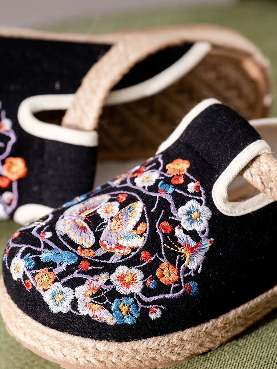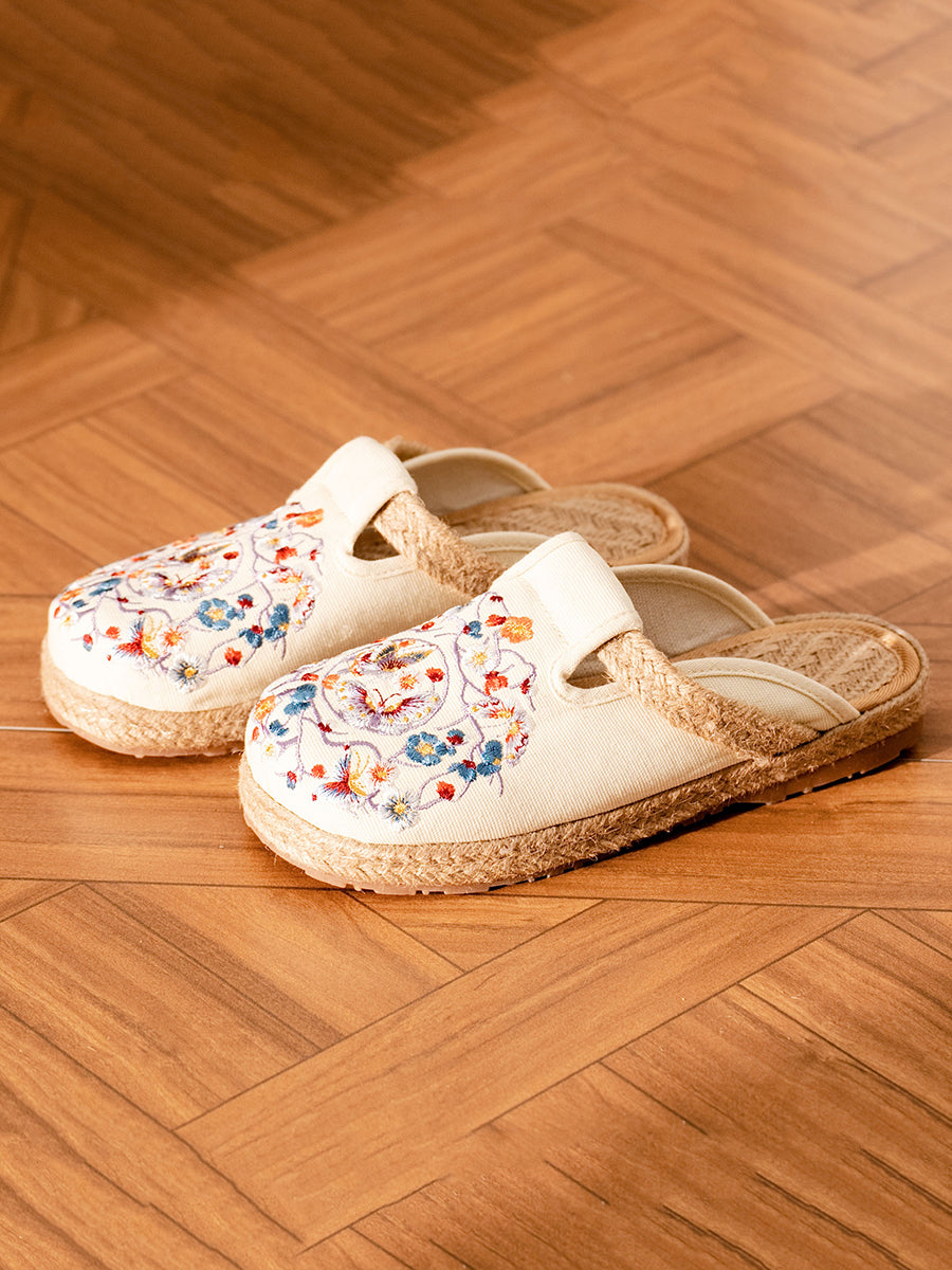Women Summer Ethnic Butterfly Embroidery Canvas Slippers