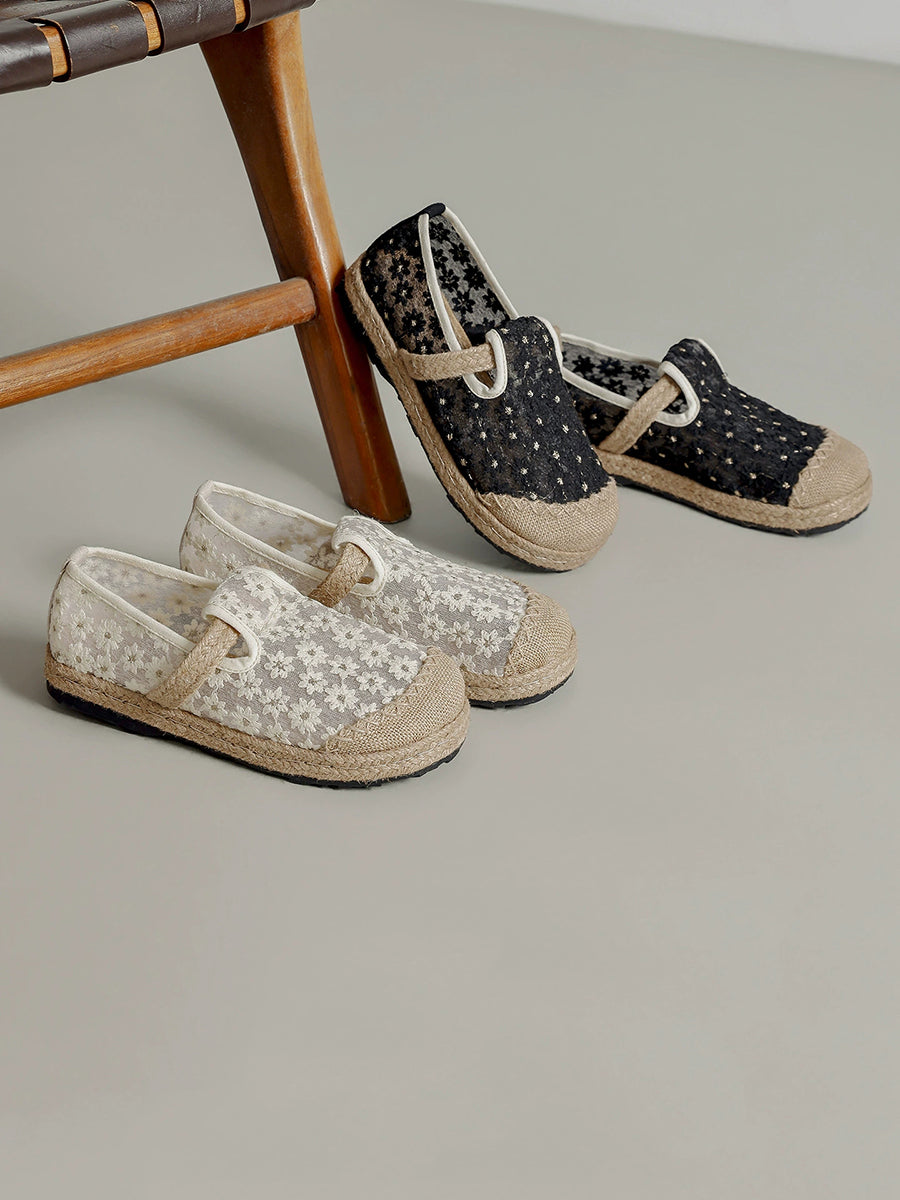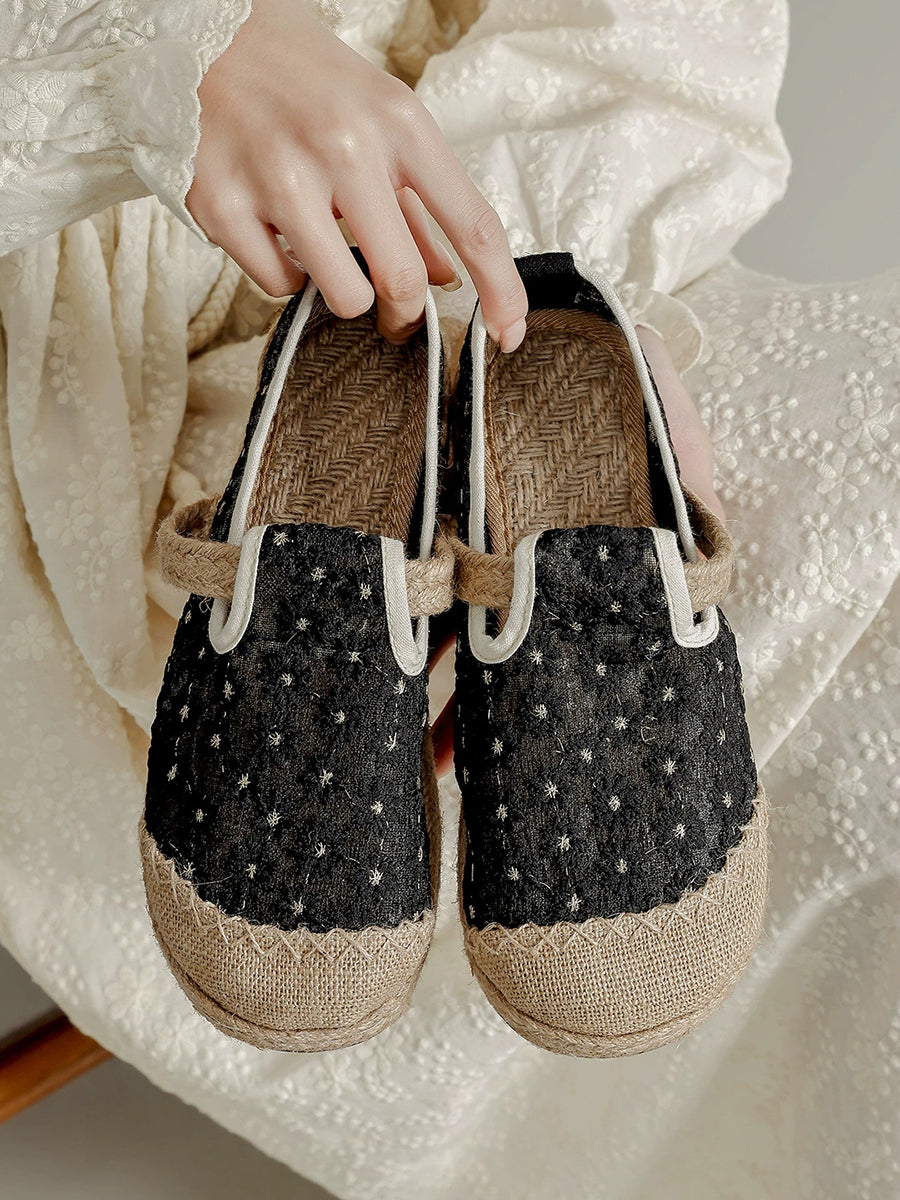 Women Summer Ethnic Flower Embroidery Flat Shoes