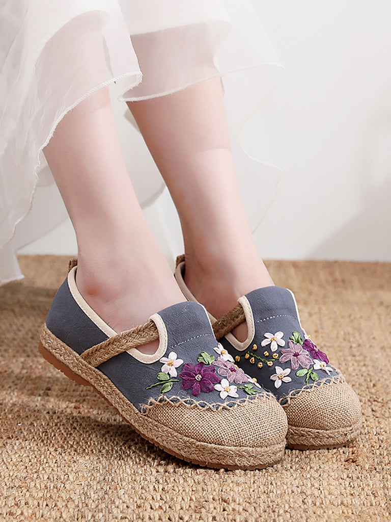 Women Summer Ethnic Ribbon Flower Cloth Flat Shoes