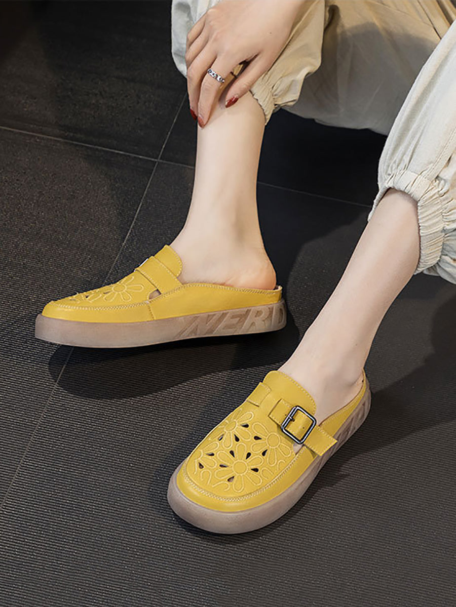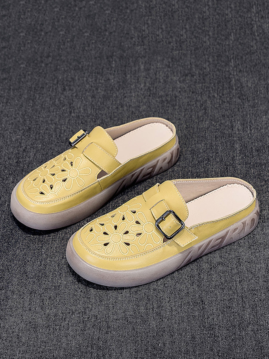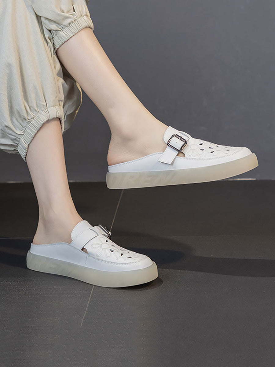 Women Summer Genuine Leather Flat Slippers