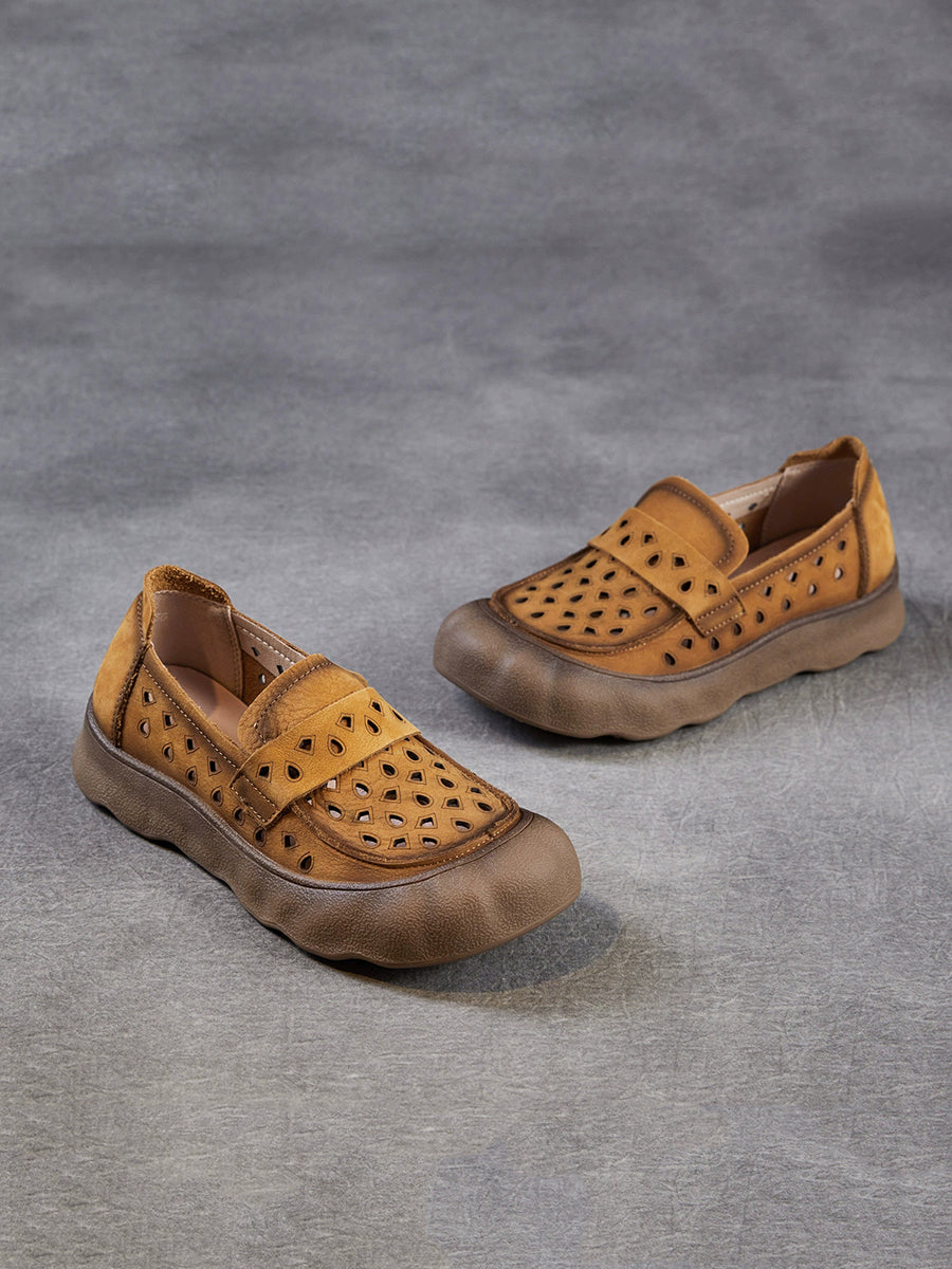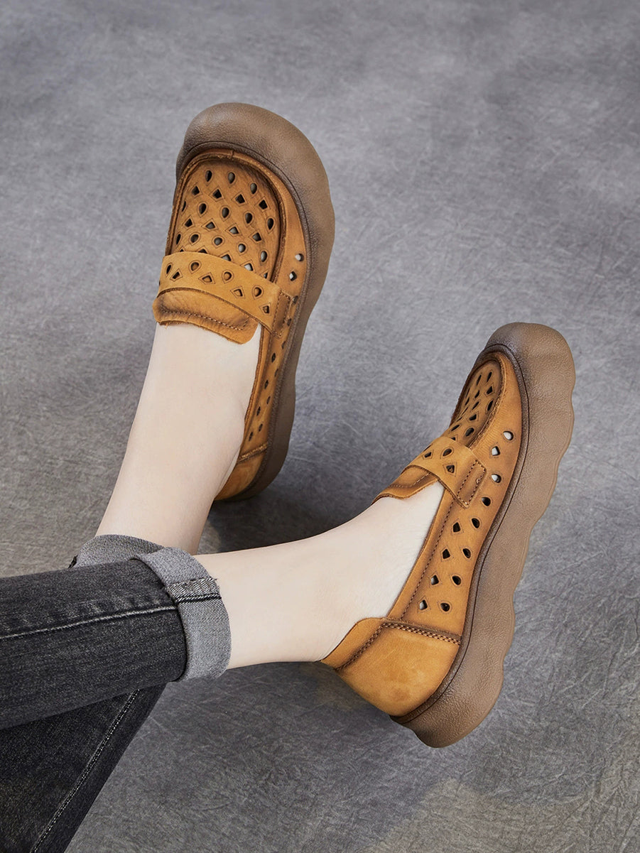 Women Summer Genuine Leather Hollow Out Flat Shoes