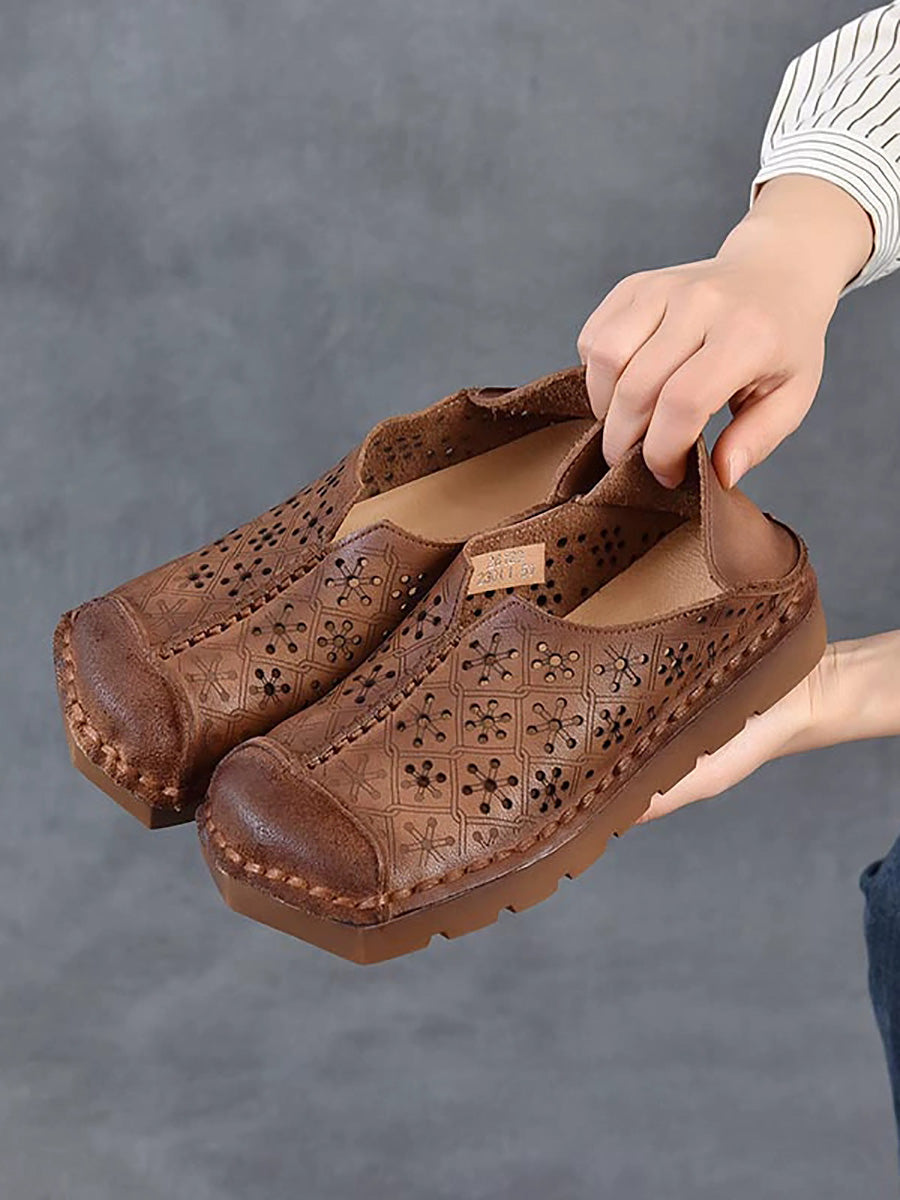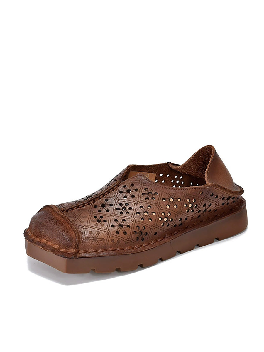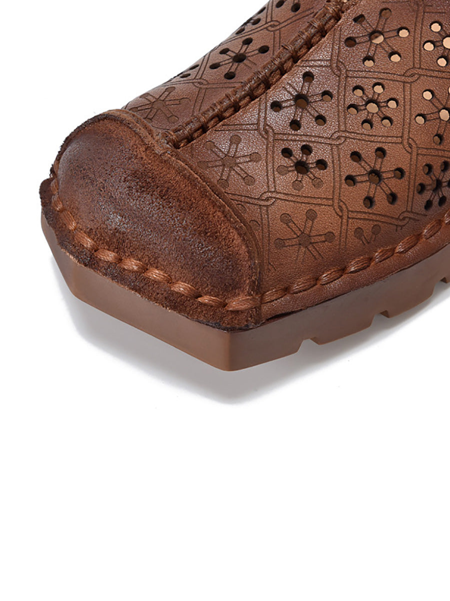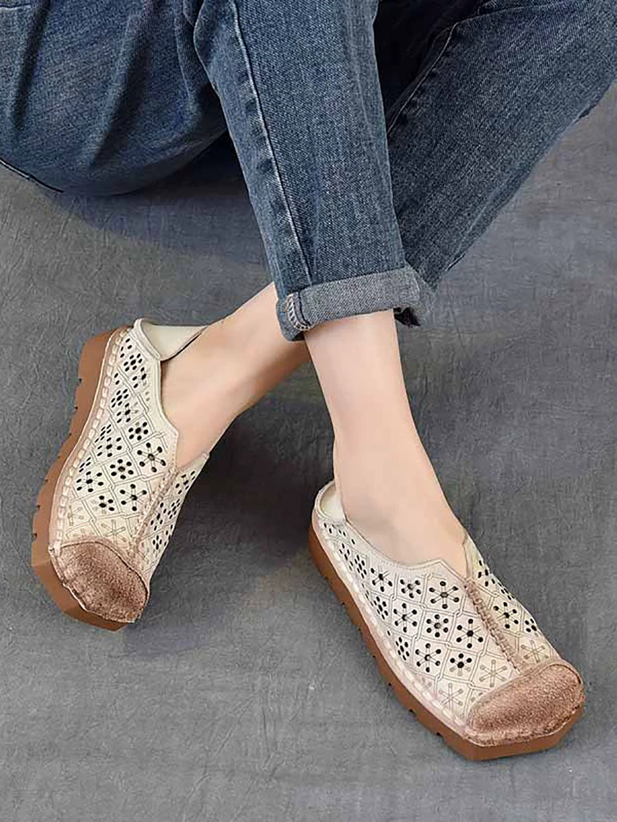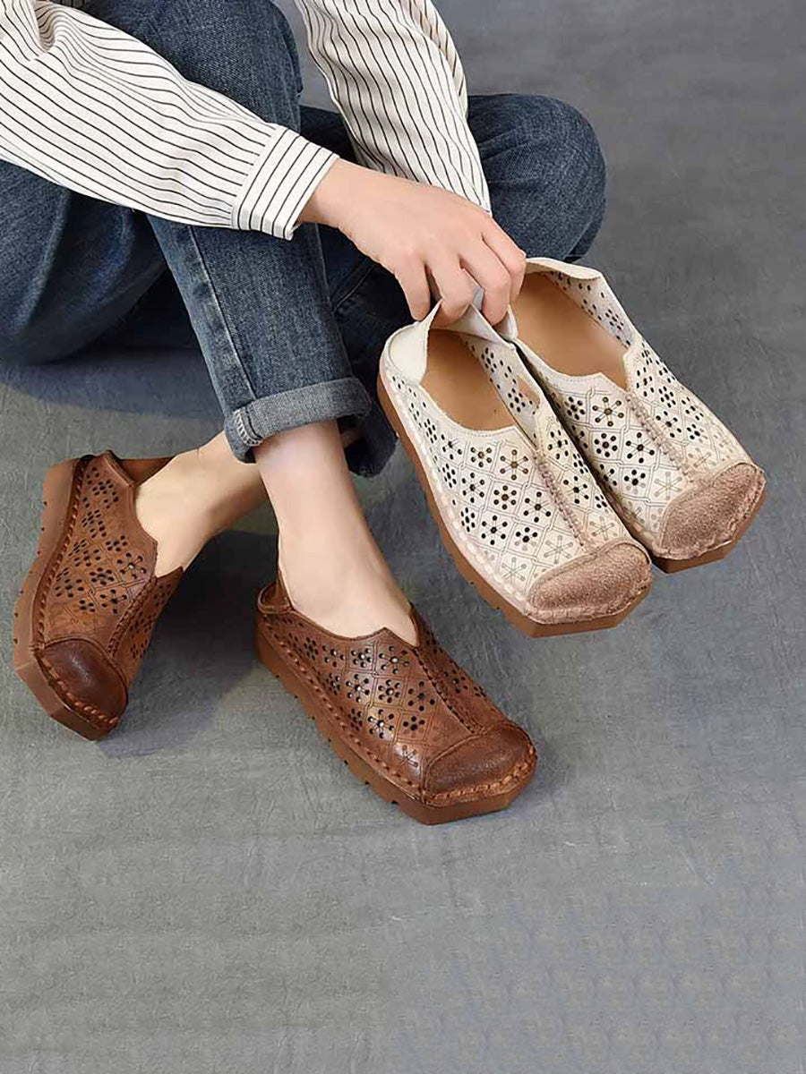 Women Summer Genuine Leather Spliced Hollow Out Shoes