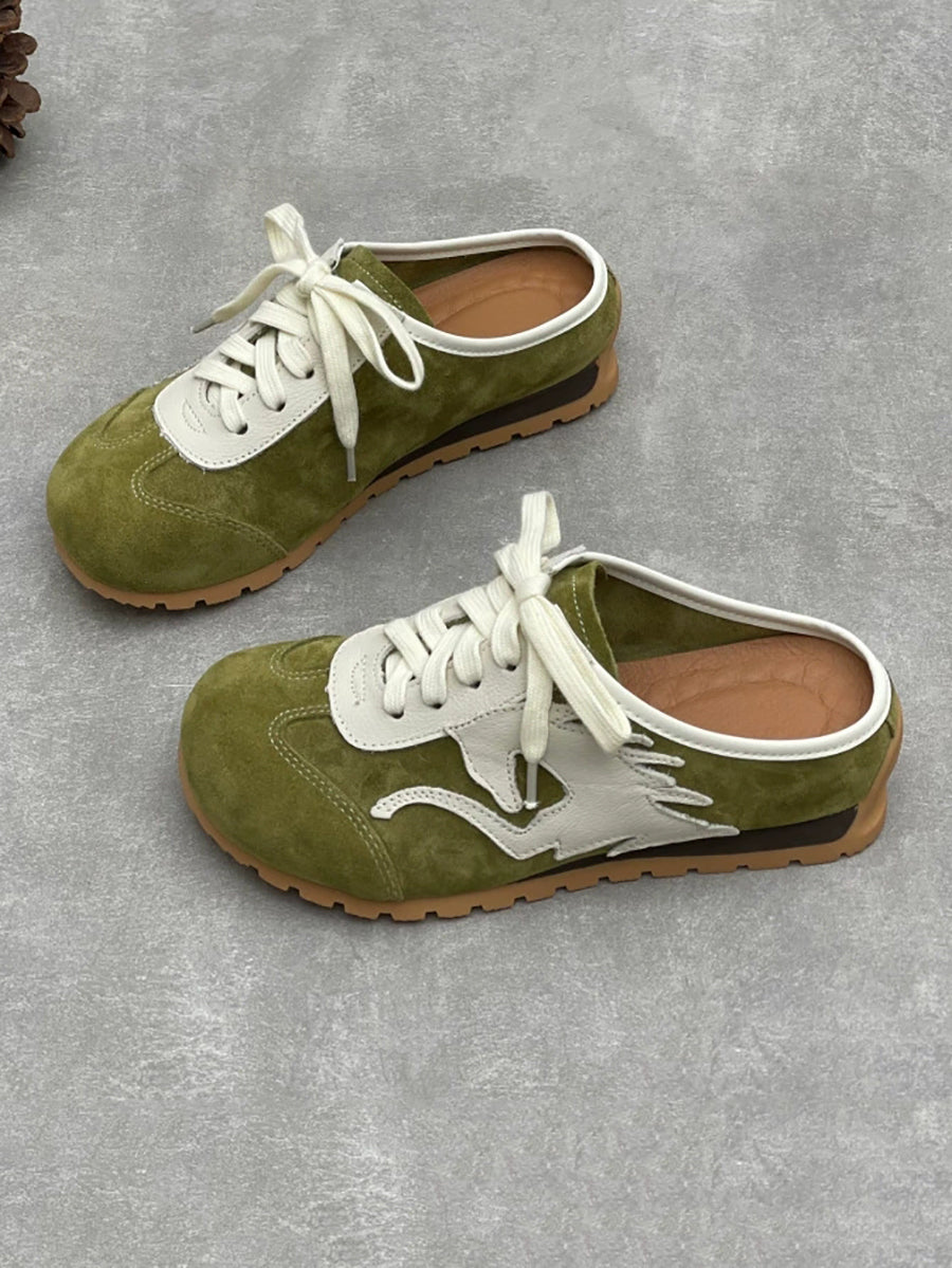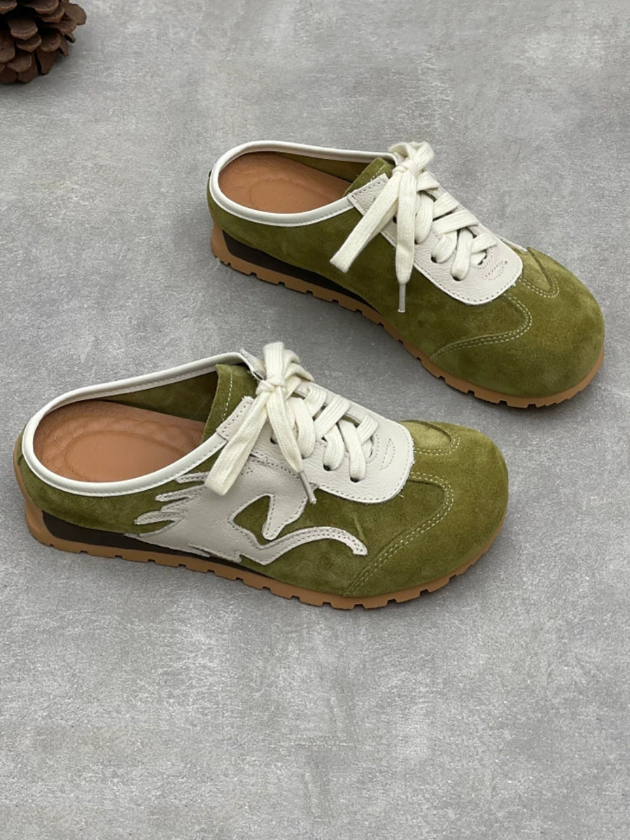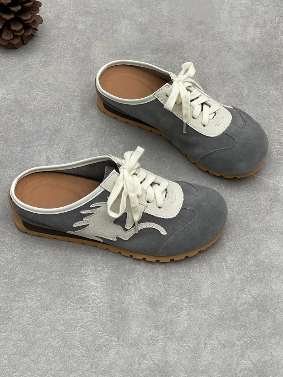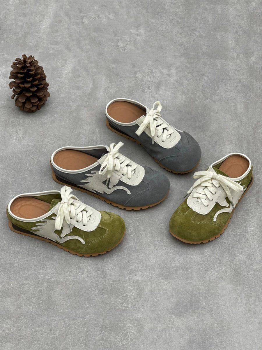 Women Summer Genuine Leather Spliced Slippers
