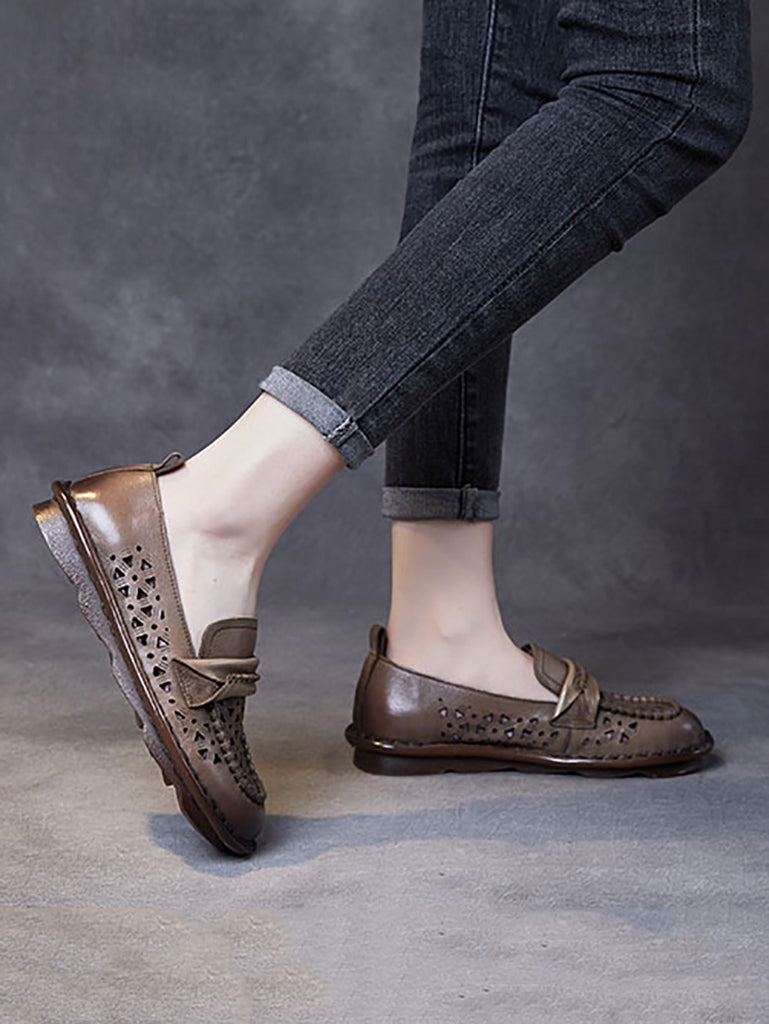 Women Summer Genuine Leather Stitching Low Heel Shoes