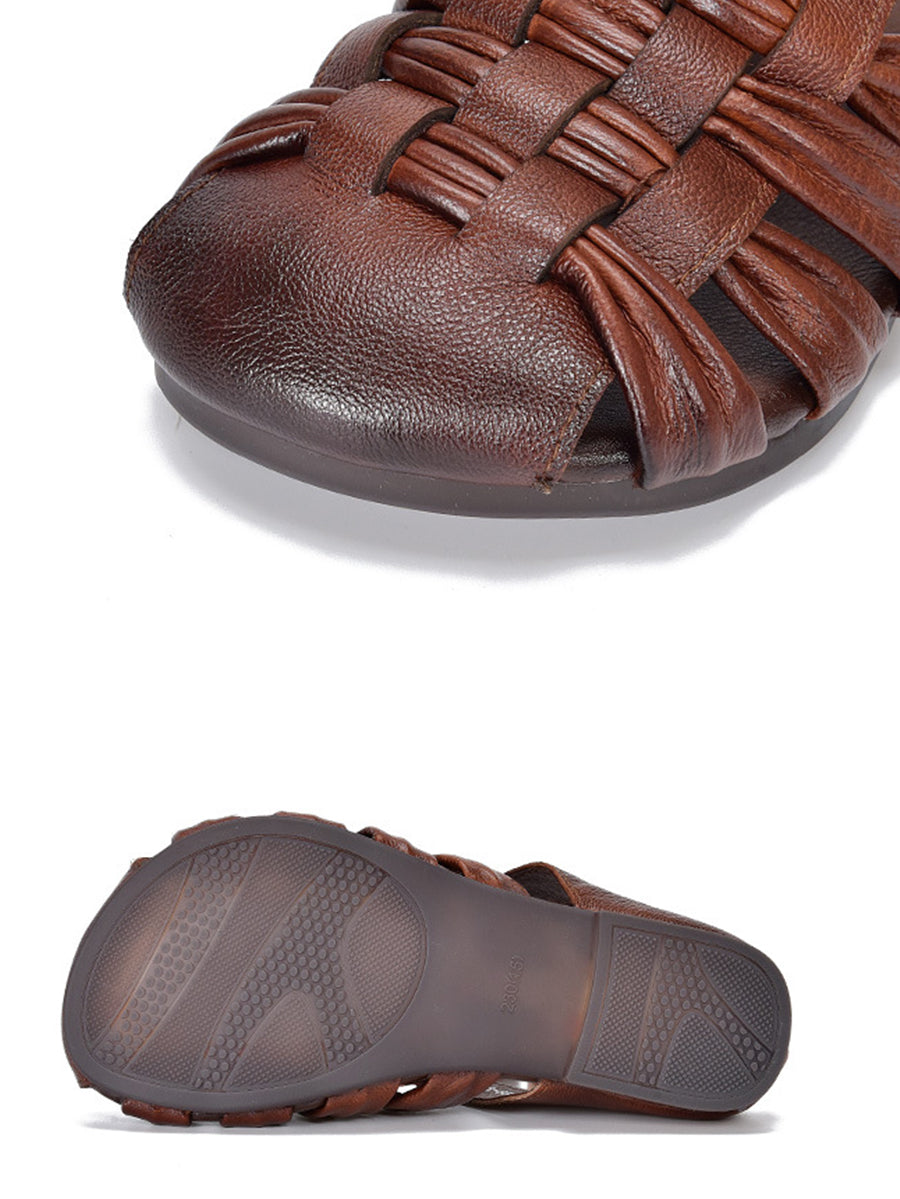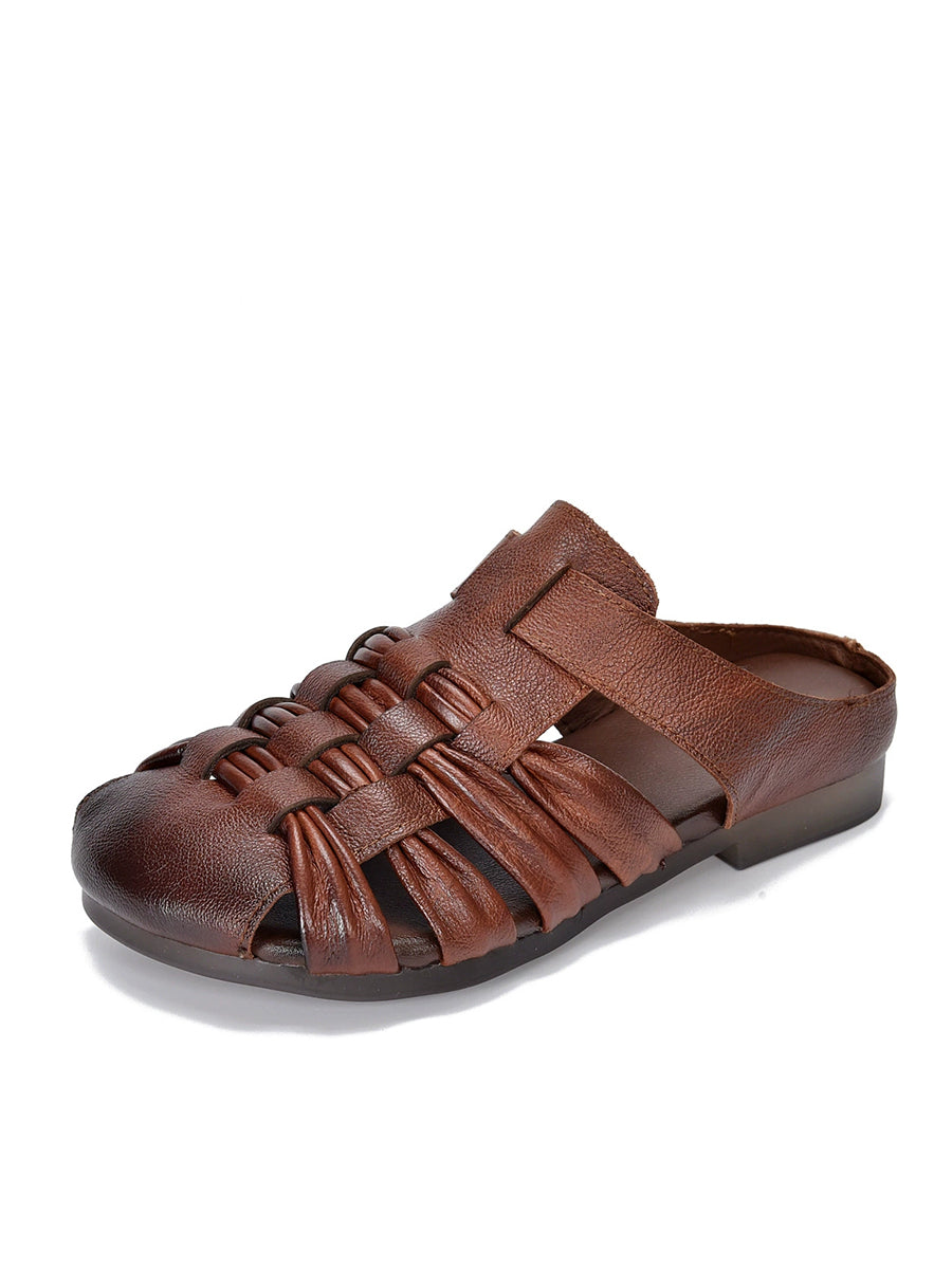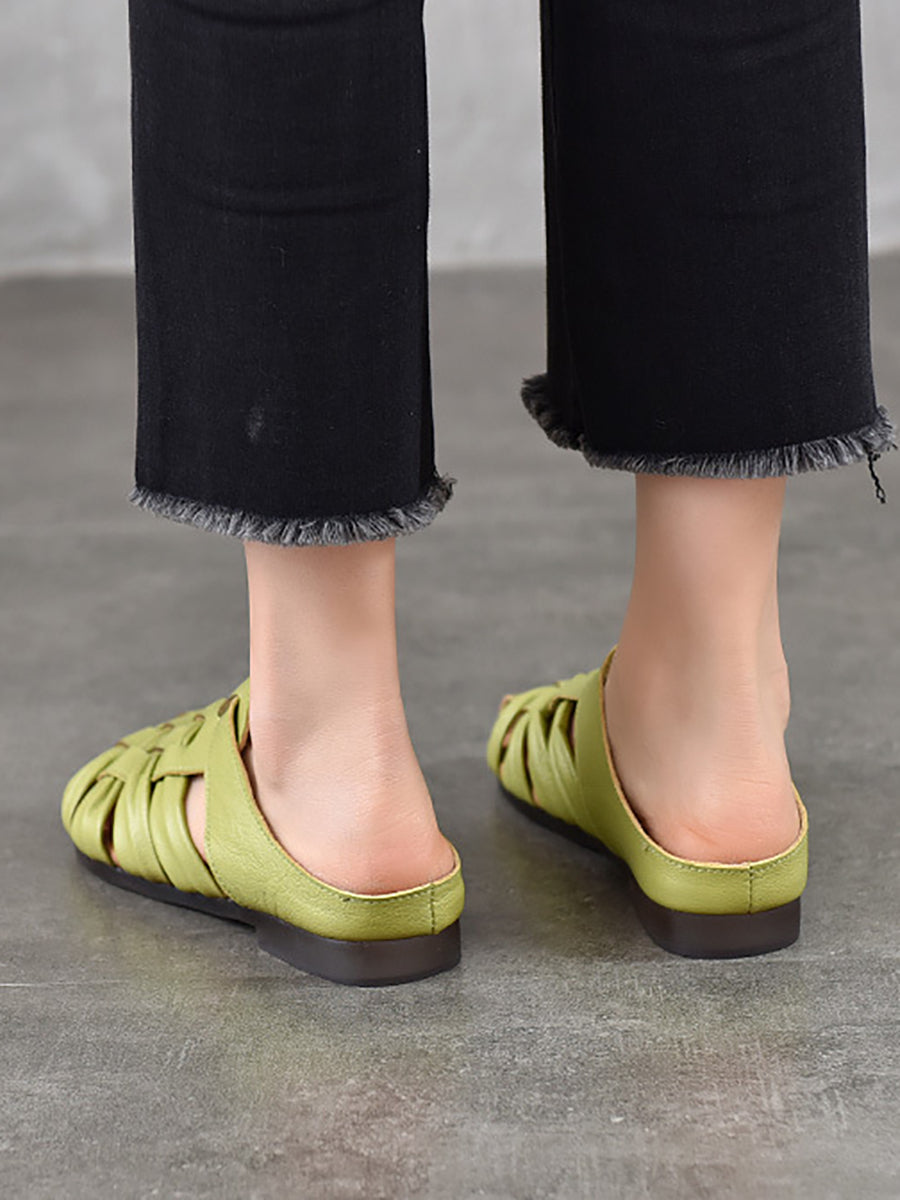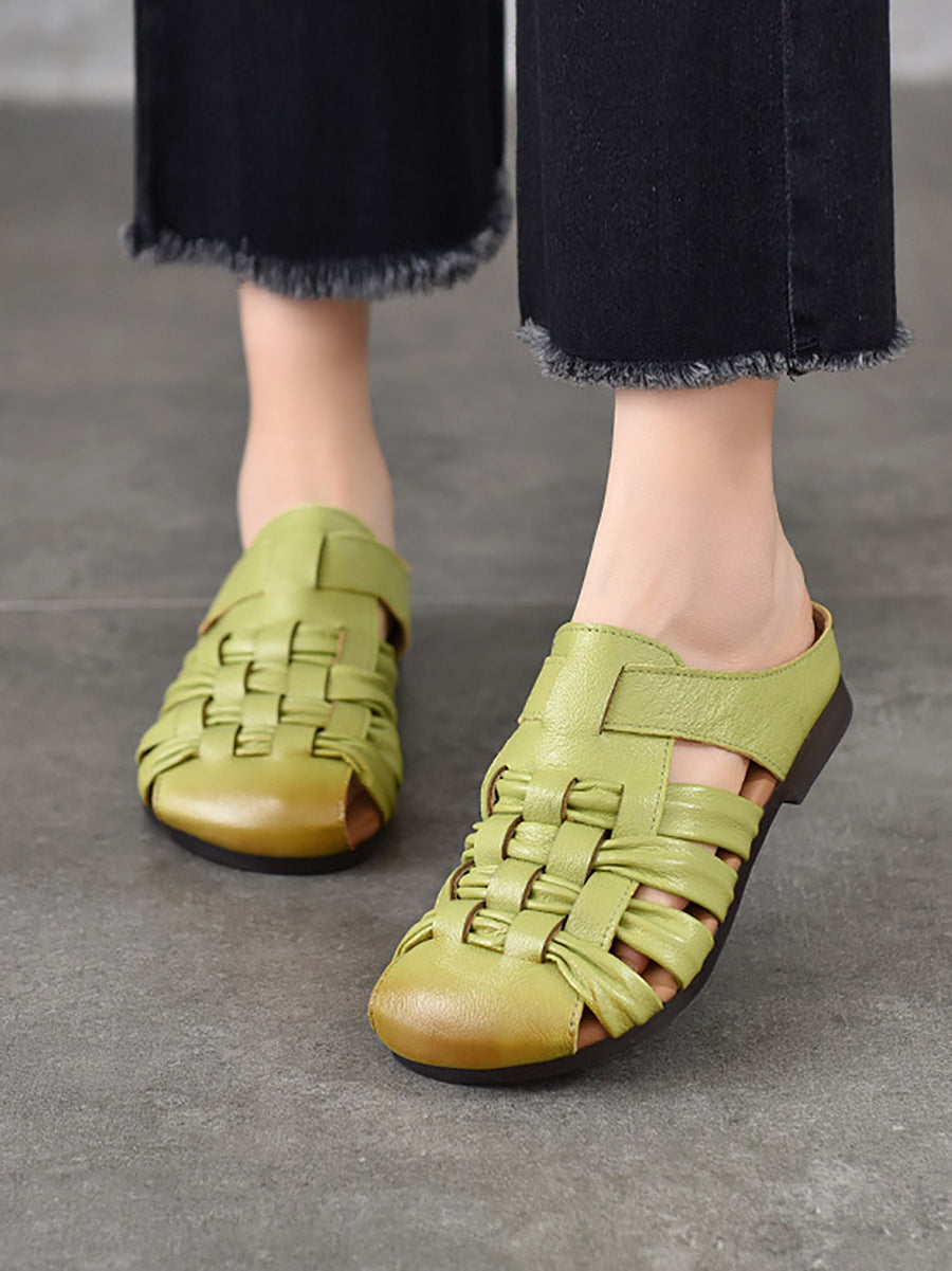 Women Summer Genuine Leather Weave Slippers