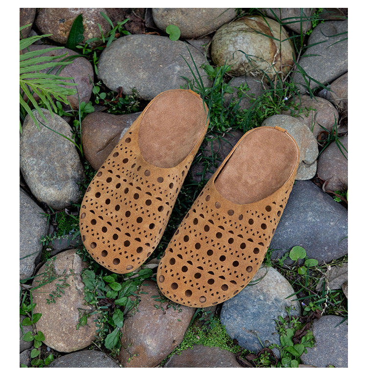 Women Summer Hollow Out Genuine Leather Slippers