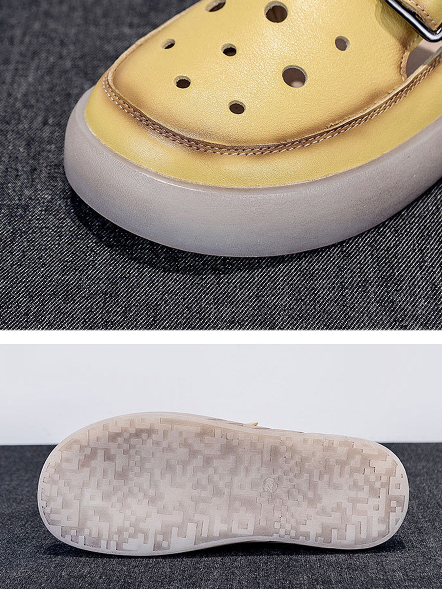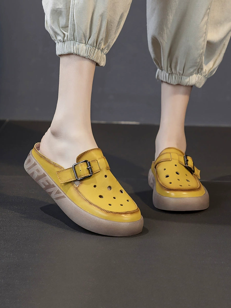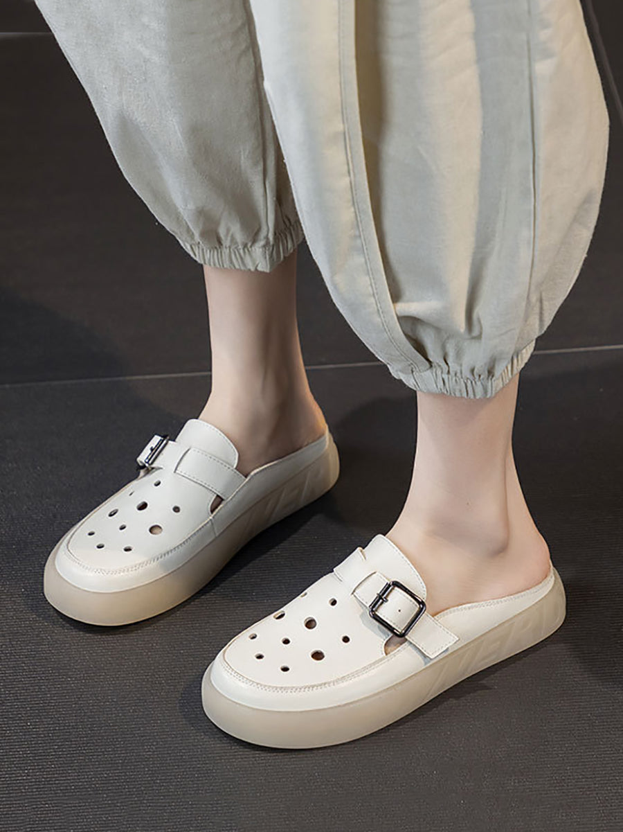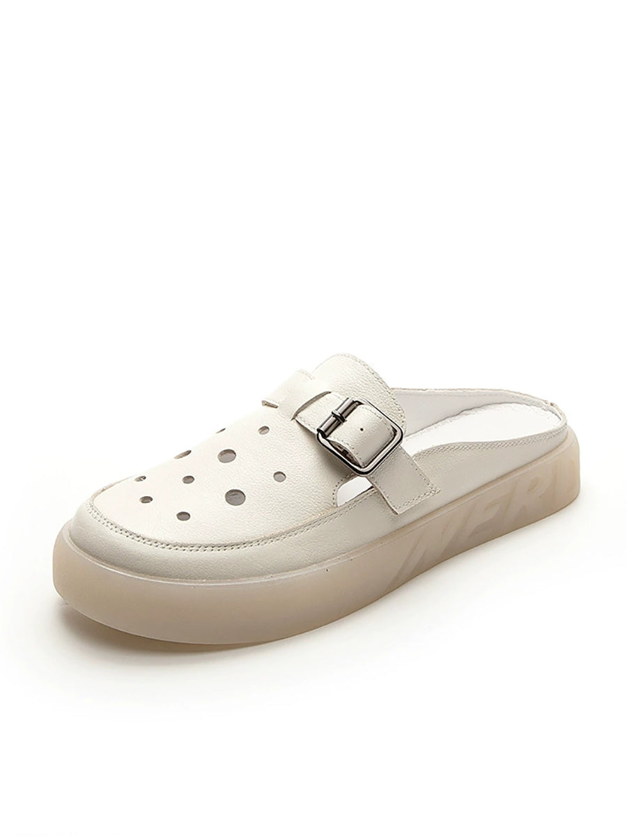 Women Summer Hollow Out Leahter Flat Slippers