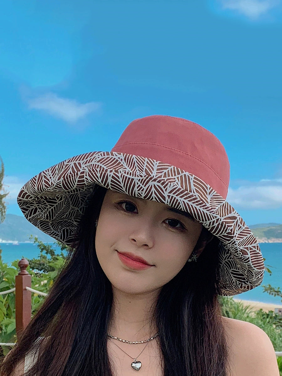 Women Summer Leaf Dual-side Wearing Sunproof Hat