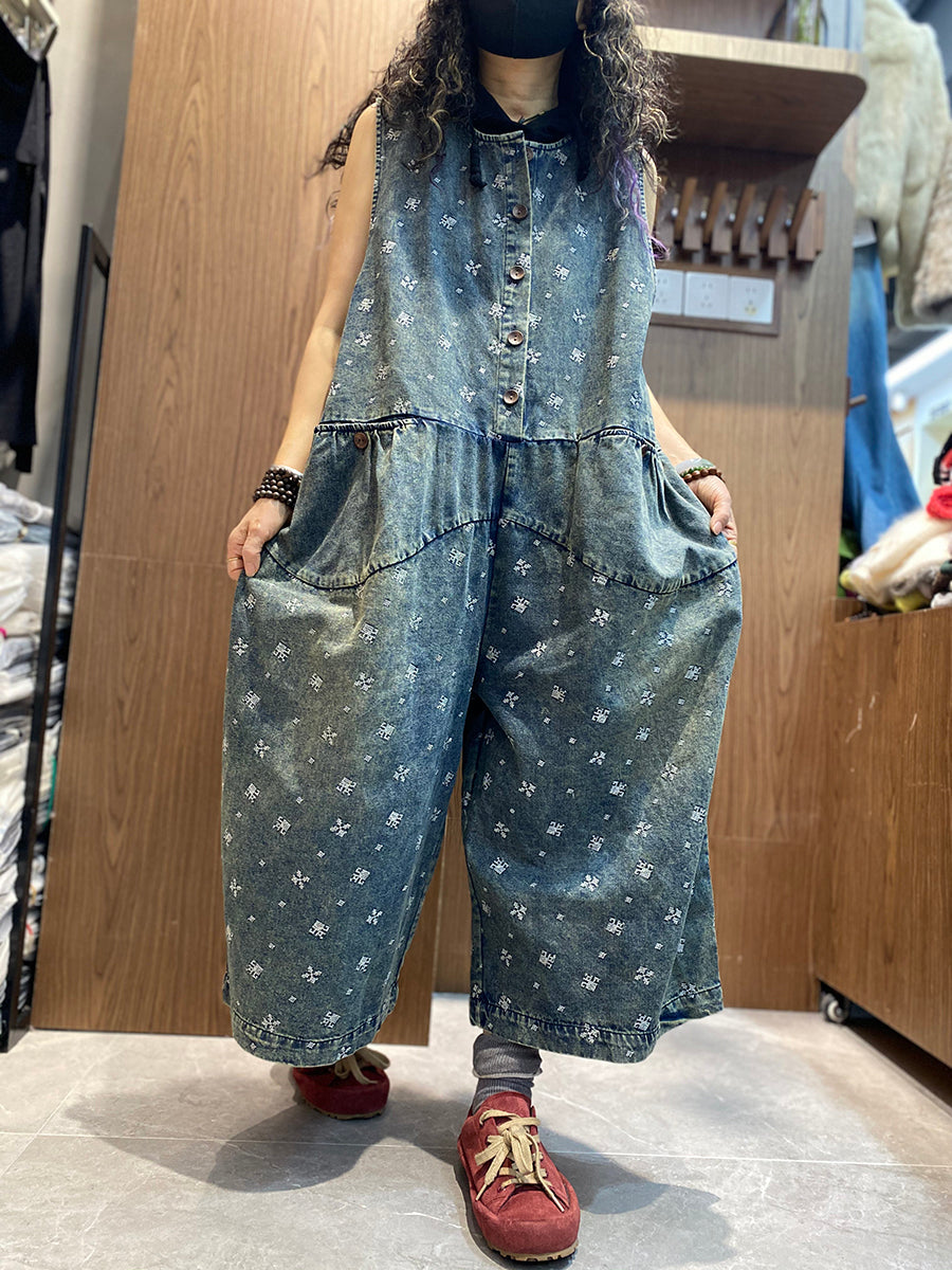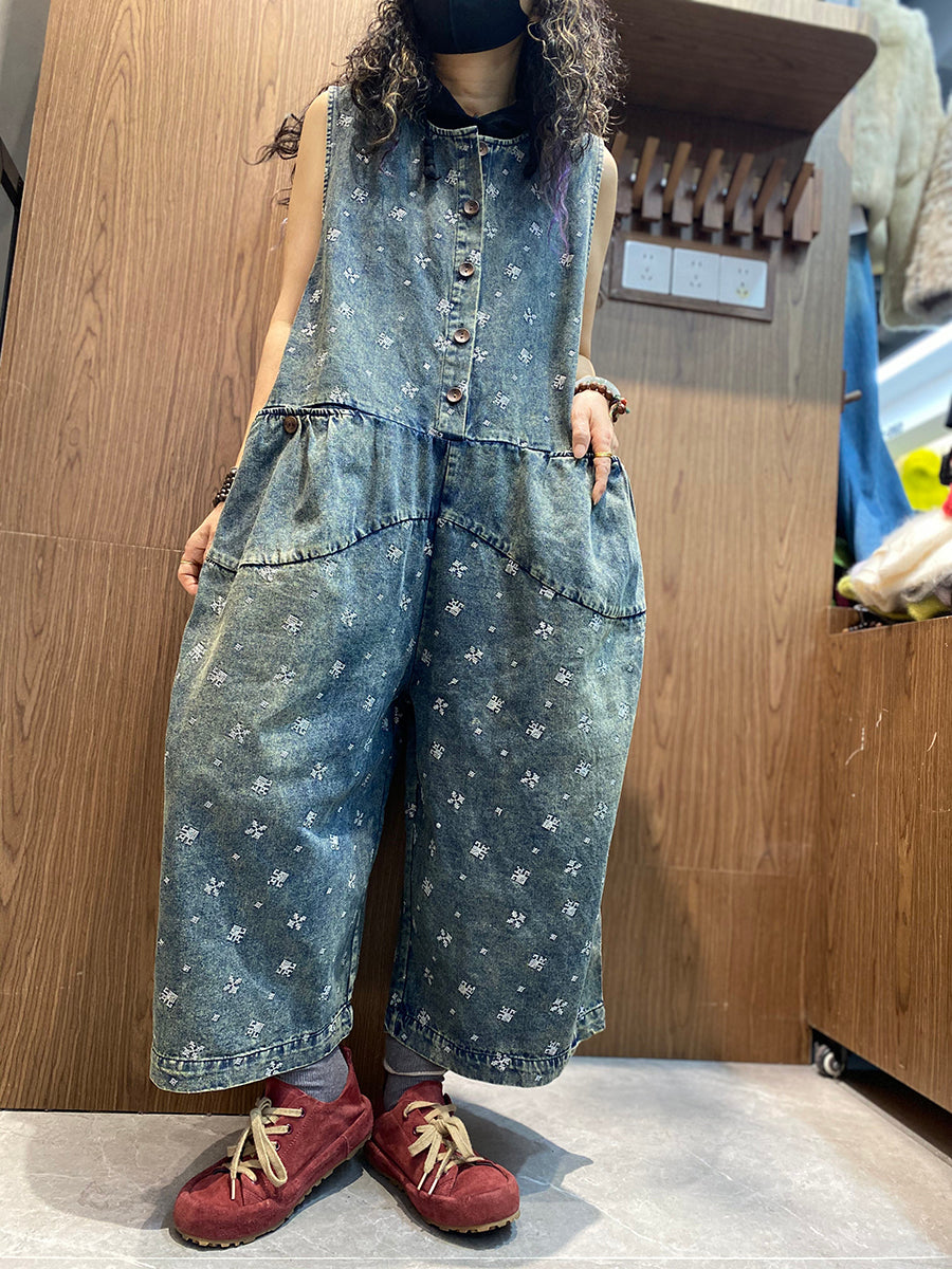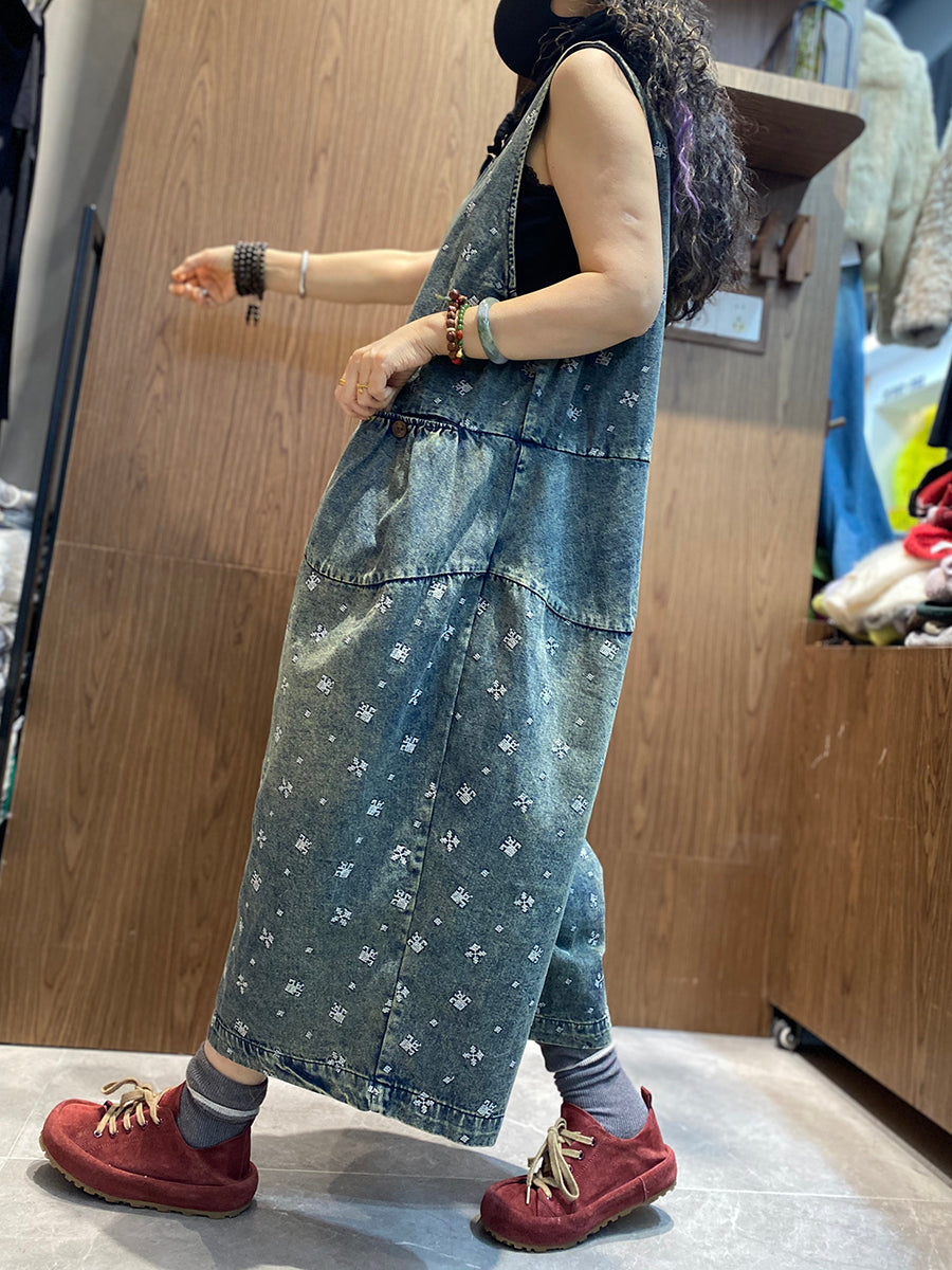 Women Spring Vintage Embroidery Denim Jumpsuits