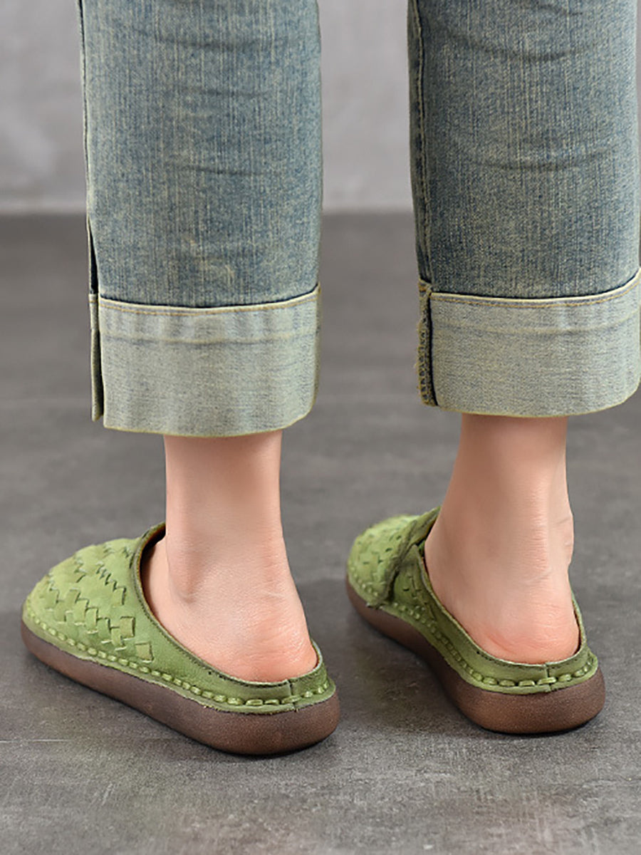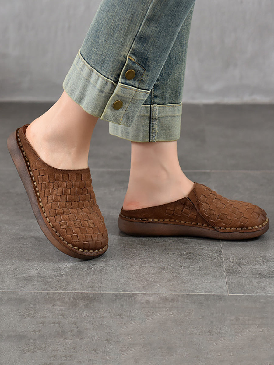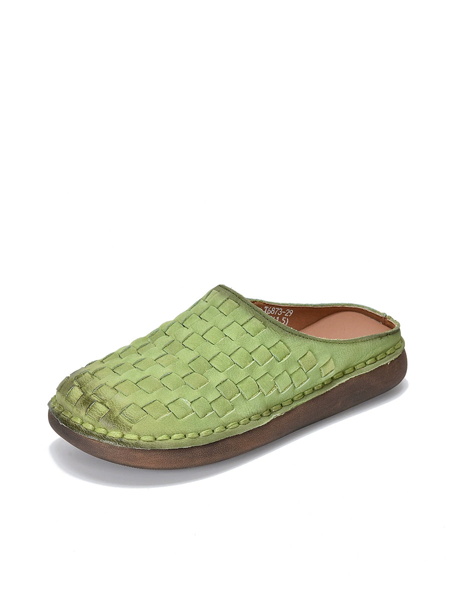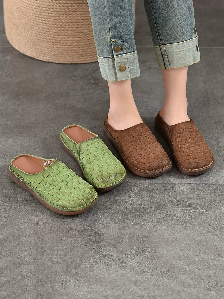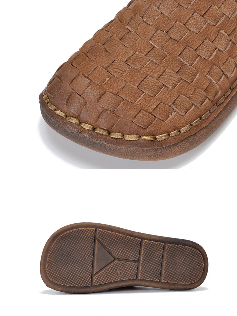Women Summer Vintage Leather Weaving Slippers