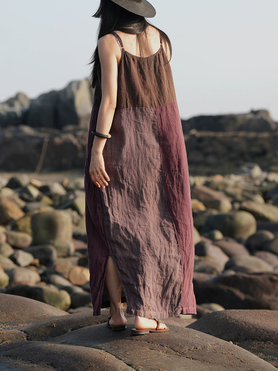 Plus Size Women Summer Vintage Patchwork 100%Linen Vest Dress