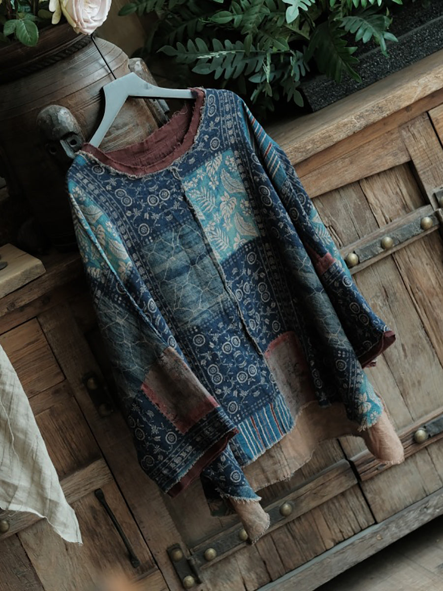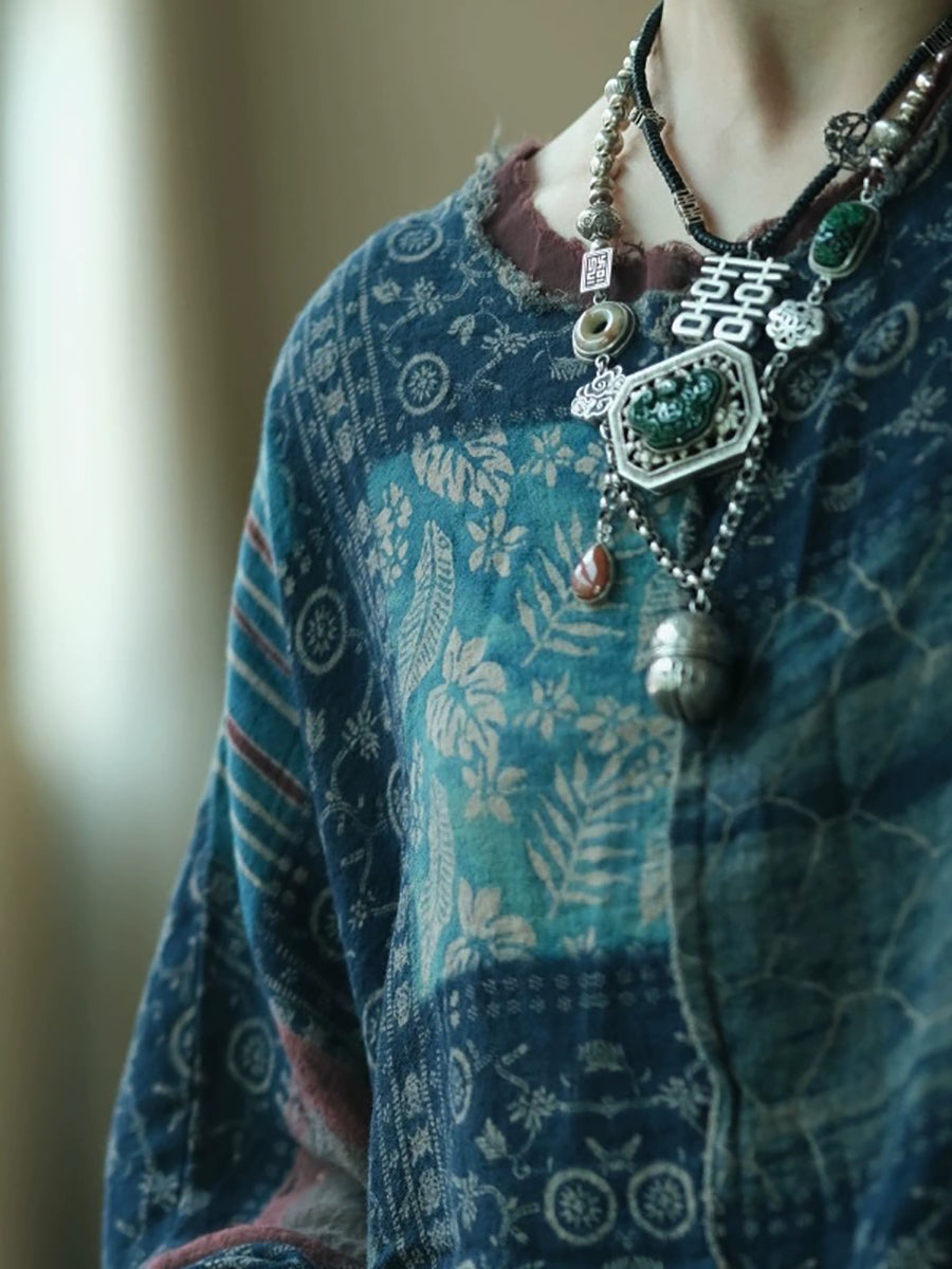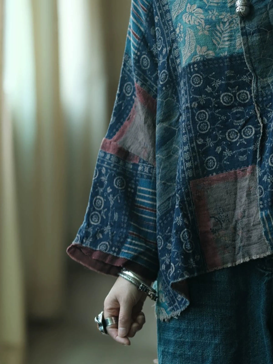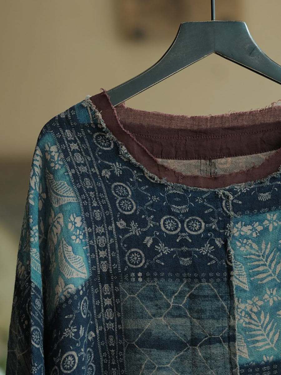 Plus Size Women Summer Vintage Patchwork O-Neck Cotton Shirt