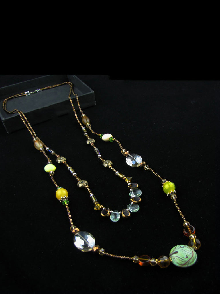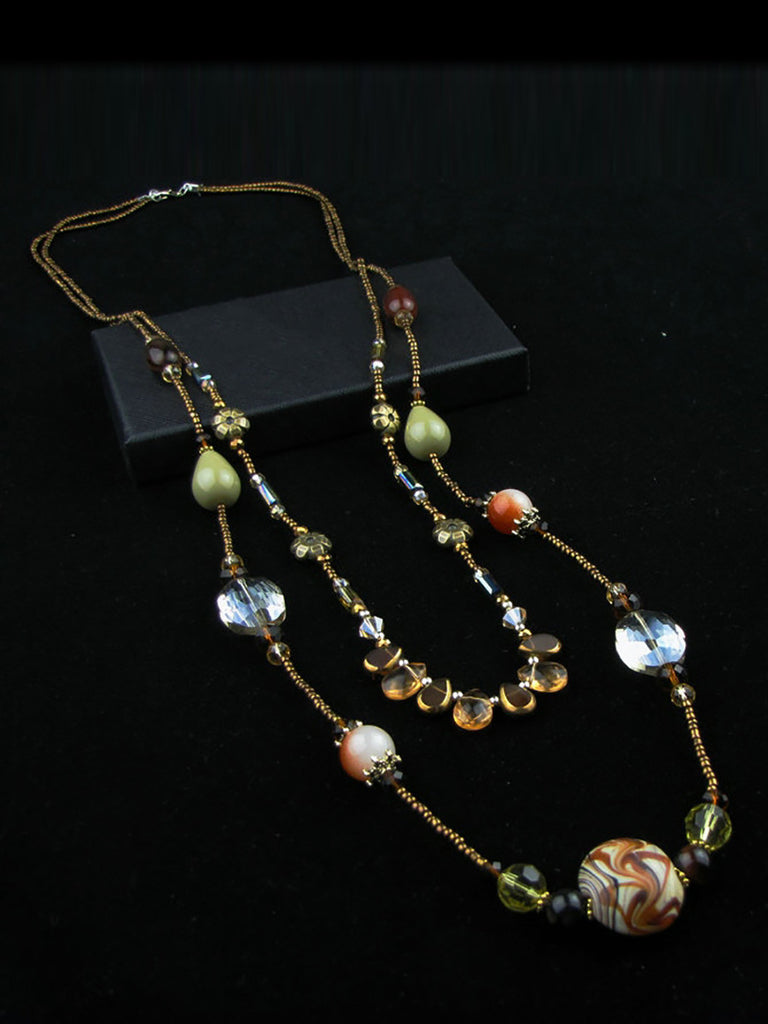 Women Vintage Crystal Bead Acrylic Pandent Necklace