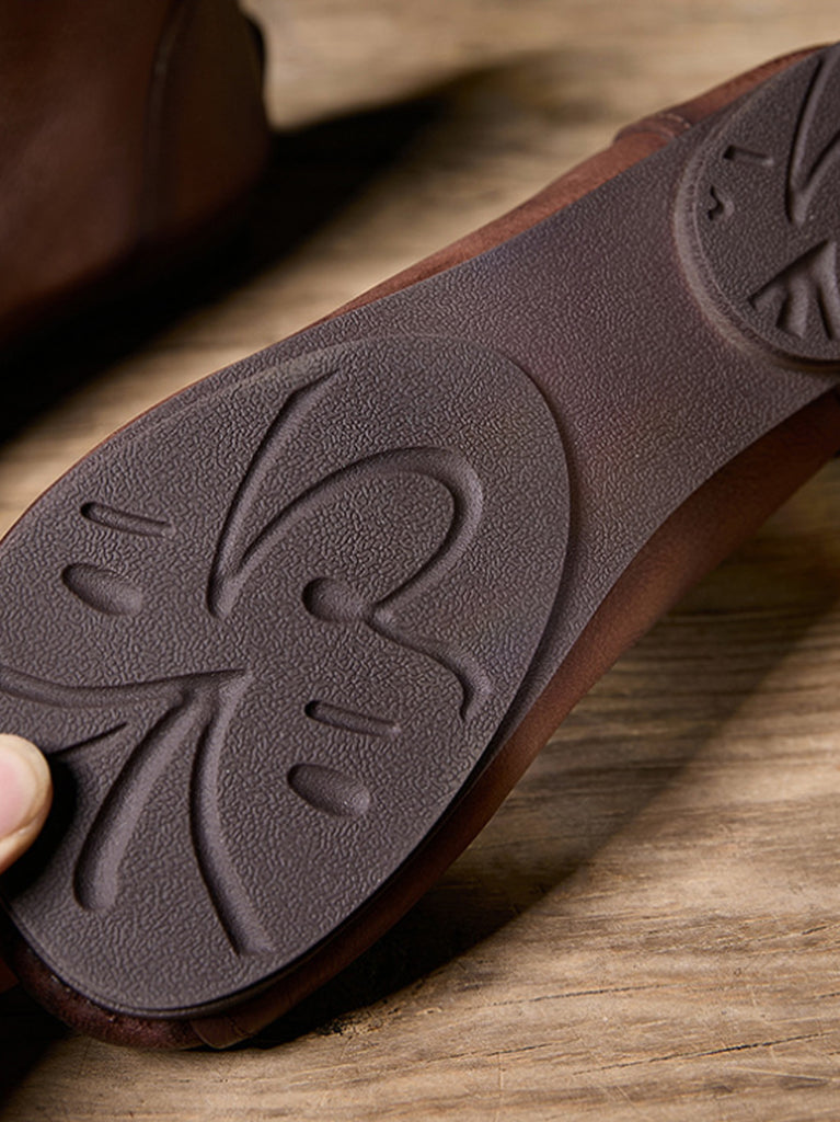 Women Vintage Genuine Leather Low Heel Ankle Boots