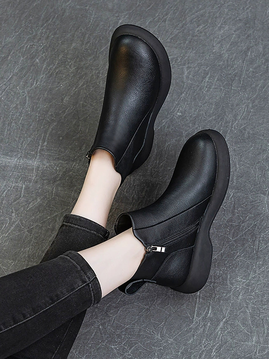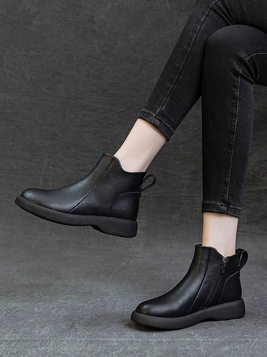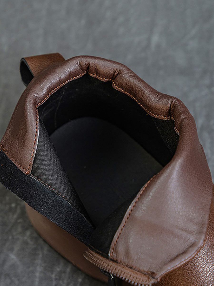 Women Vintage Genuine Leather Low Heel Boots