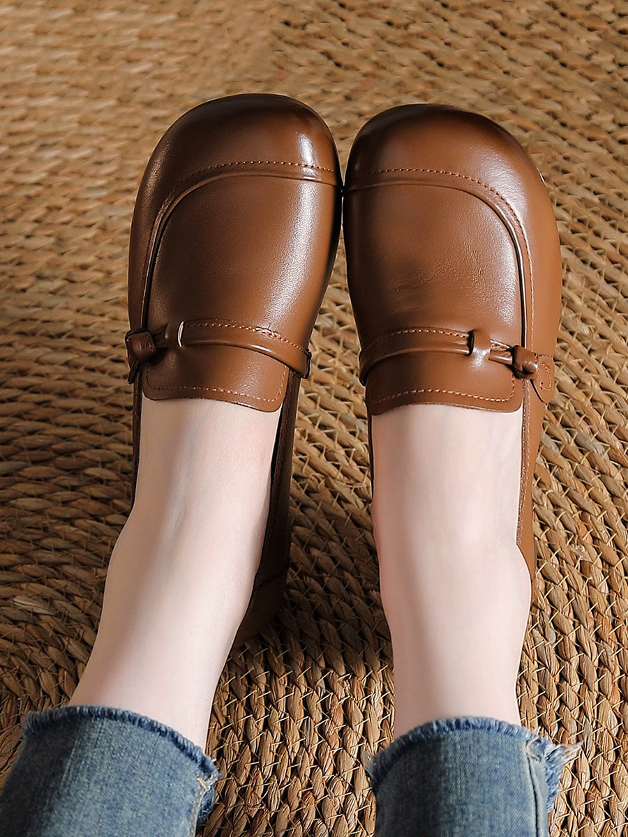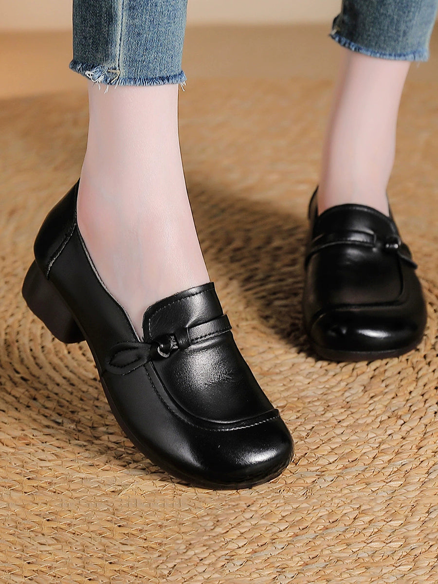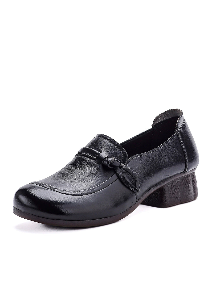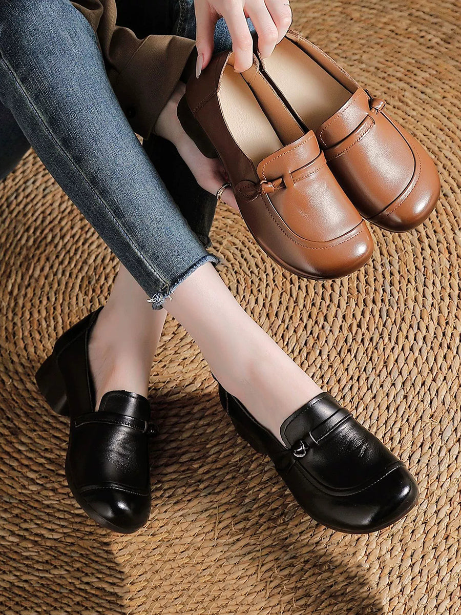 Women Vintage Genuine Leather Mid-Heel Shoes