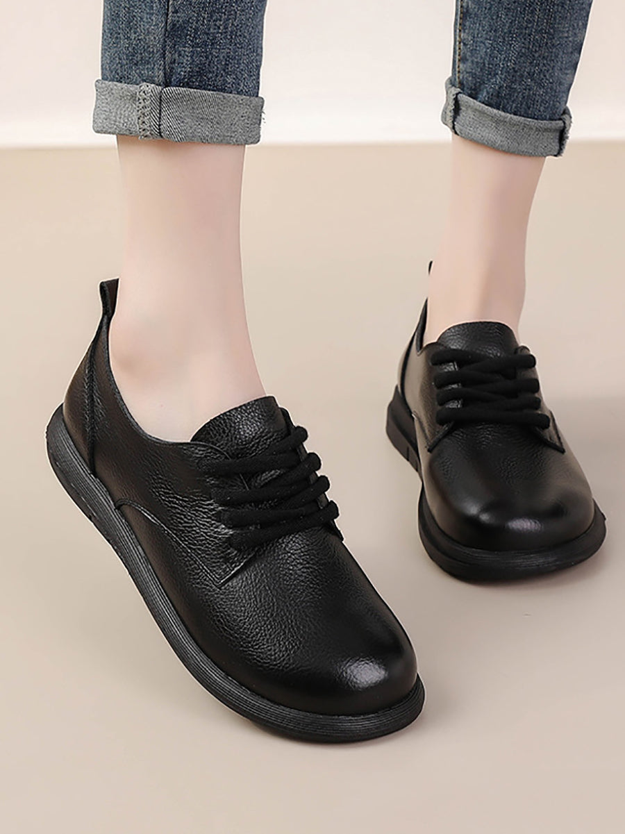 Women Vintage Genuine Leather Spliced Flat Shoes