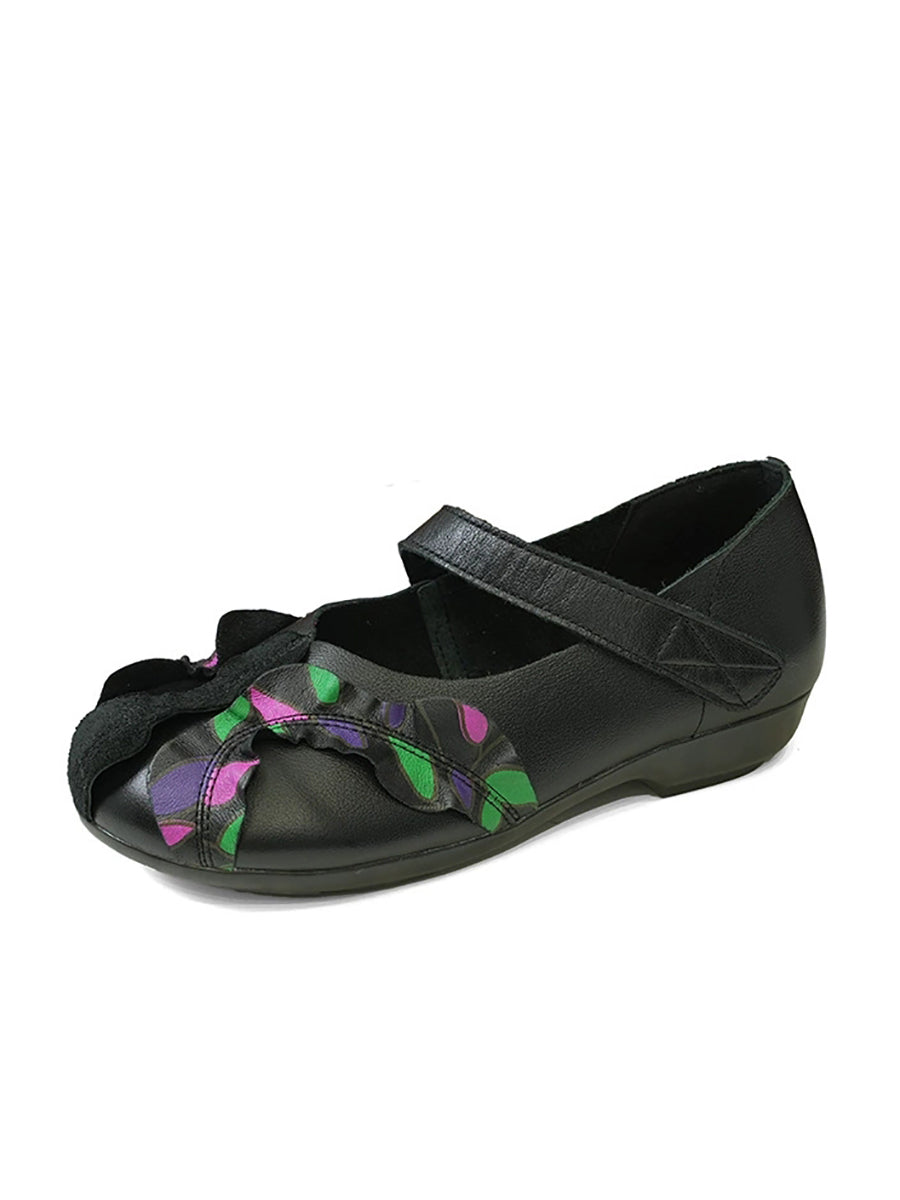 Women Vintage Genuine Leather Spliced Low Heel Shoes
